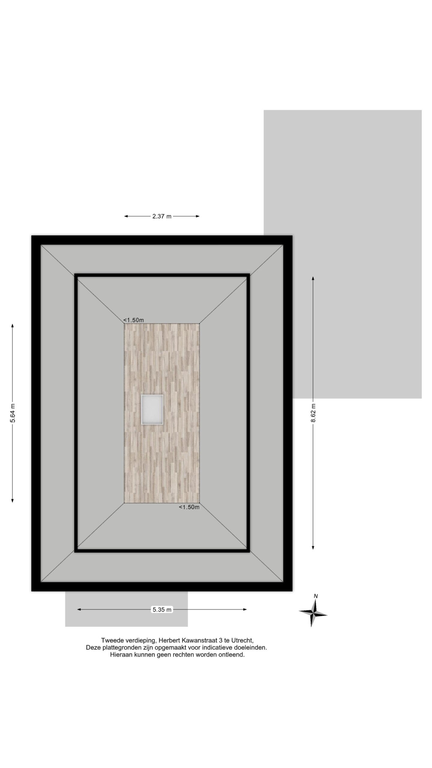 Via een vlizotrap is de grote zolder bereikbaar. Deze praktische ruimte biedt volop bergruimte en kan uitstekend worden gebruikt voor het opbergen van seizoensspullen en andere zaken die je niet dagelijks nodig hebt. Met een nokhoogte van ca. 2,10 m kan de ruimte op dit moment al worden benut voor bijvoorbeeld yoga of krachttraining, maar ook kan deze eenvoudig tot volwaardige tweede verdieping gemaakt worden. De ruime overloop op de eerste verdieping biedt voldoende ruimte om een vaste trap naar deze verdieping te realiseren.