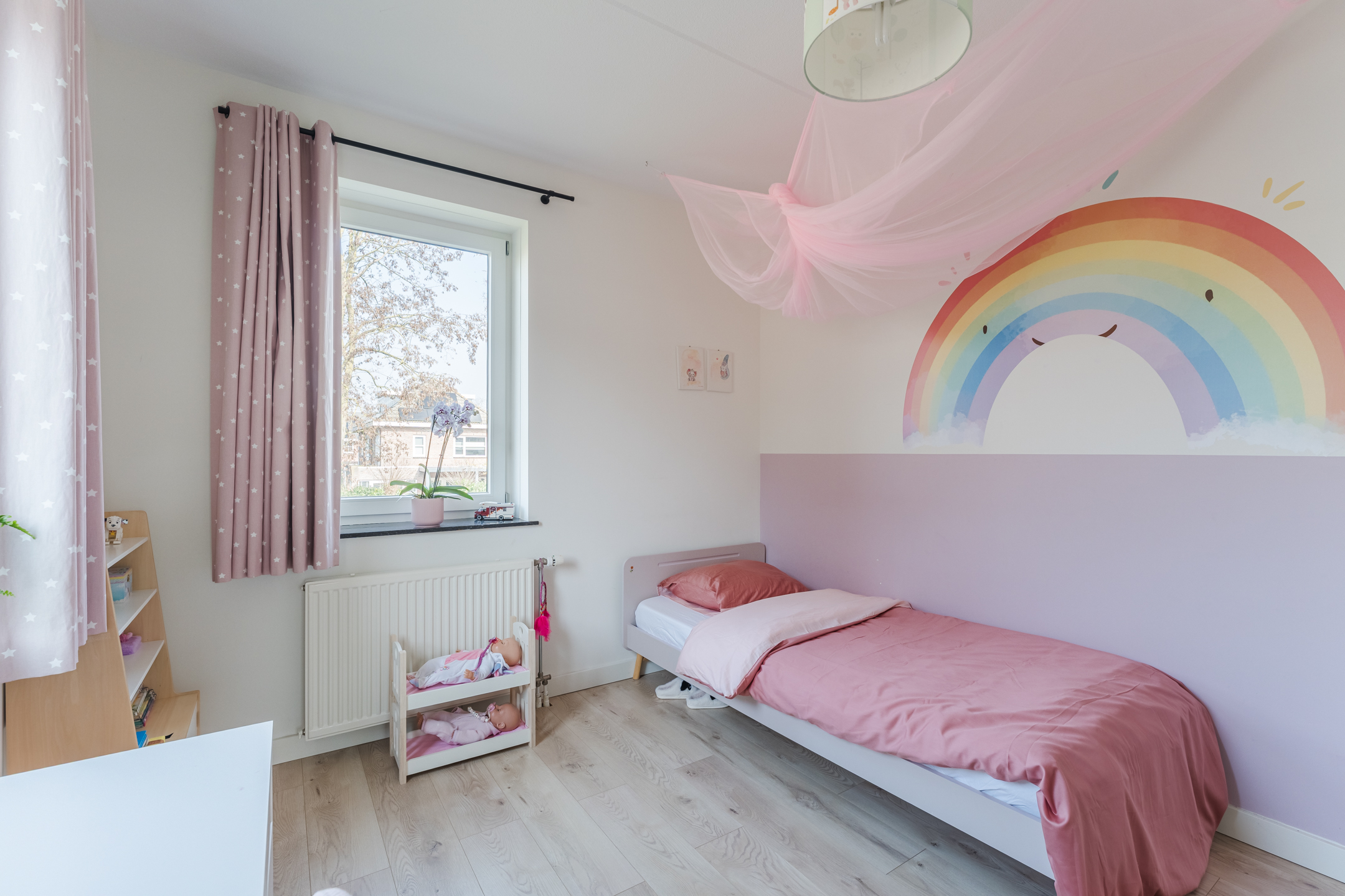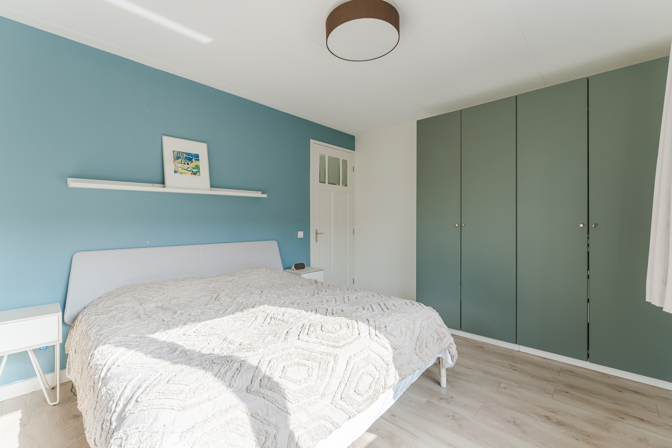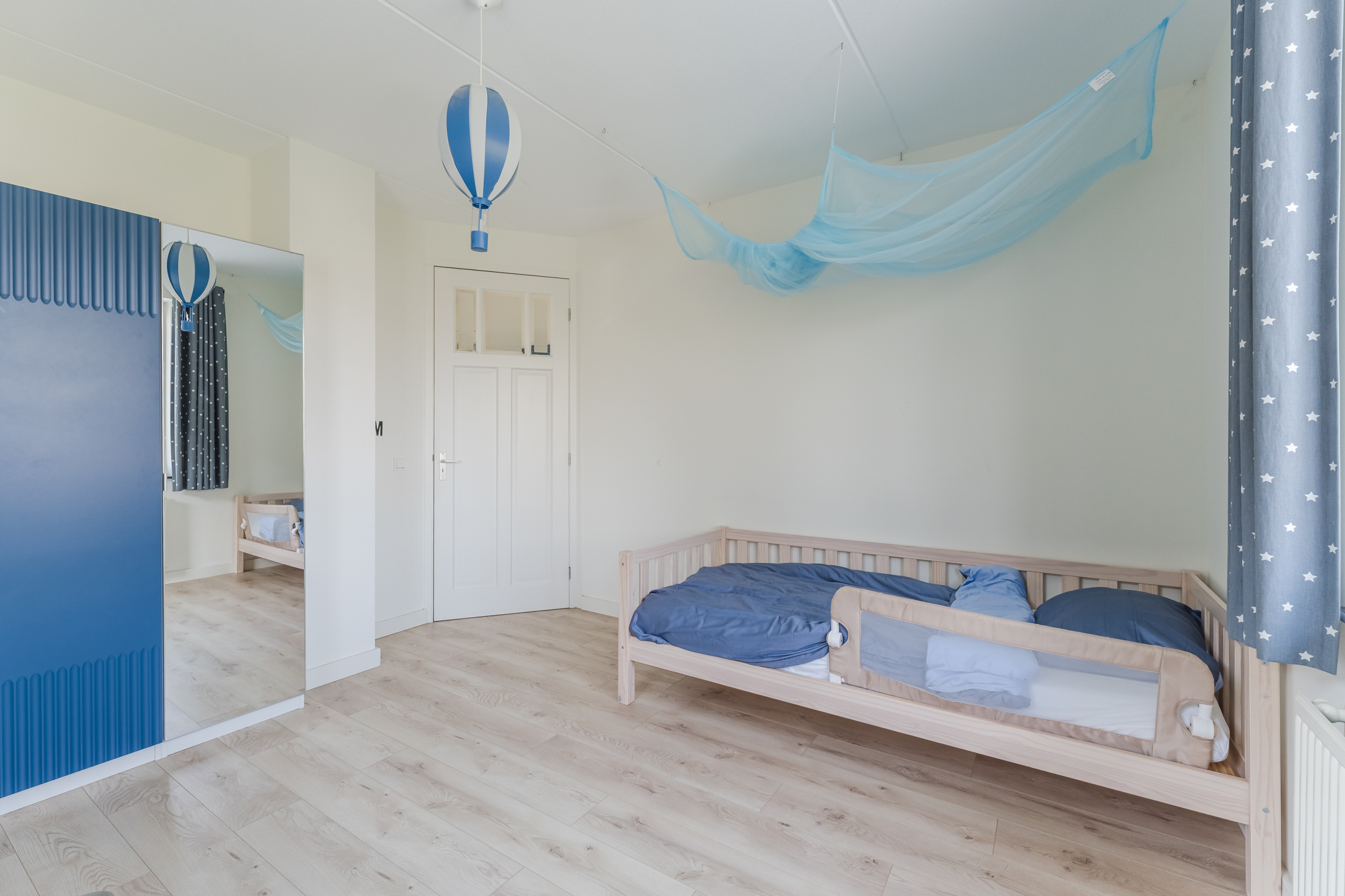 Aan de voorzijde bevinden zich twee slaapkamers (ca. 14 m2 en 9 m2). Aan de achterzijde bevinden zich eveneens twee slaapkamers (ca. 12 m2 en 15 m2). De kamers liggen allen op een hoek met ramen aan twee zijden, waardoor er vanuit twee zijden lichtinval is. De kamers kenmerken zich door de hoge plafonds en de fraaie hardhouten paneeldeuren met modern RVS beslag. Alle kozijnen zijn uitgevoerd in hardhout en voorzien van draaikiepramen en horren, wat zorgt voor extra comfort en ventilatiemogelijkheden.