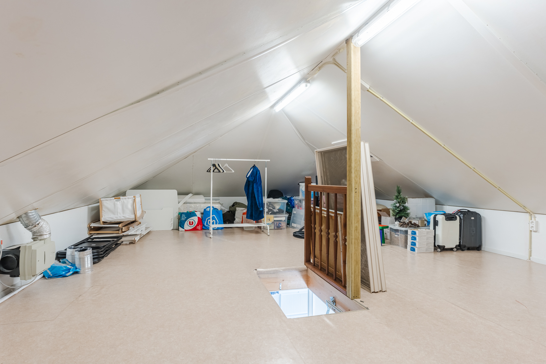 • Grote zolder met tal van mogelijkheden voor opslag en bijvoorbeeld yoga of krachttraining; mogelijkheden om een volwaardige tweede verdieping te realiseren;
