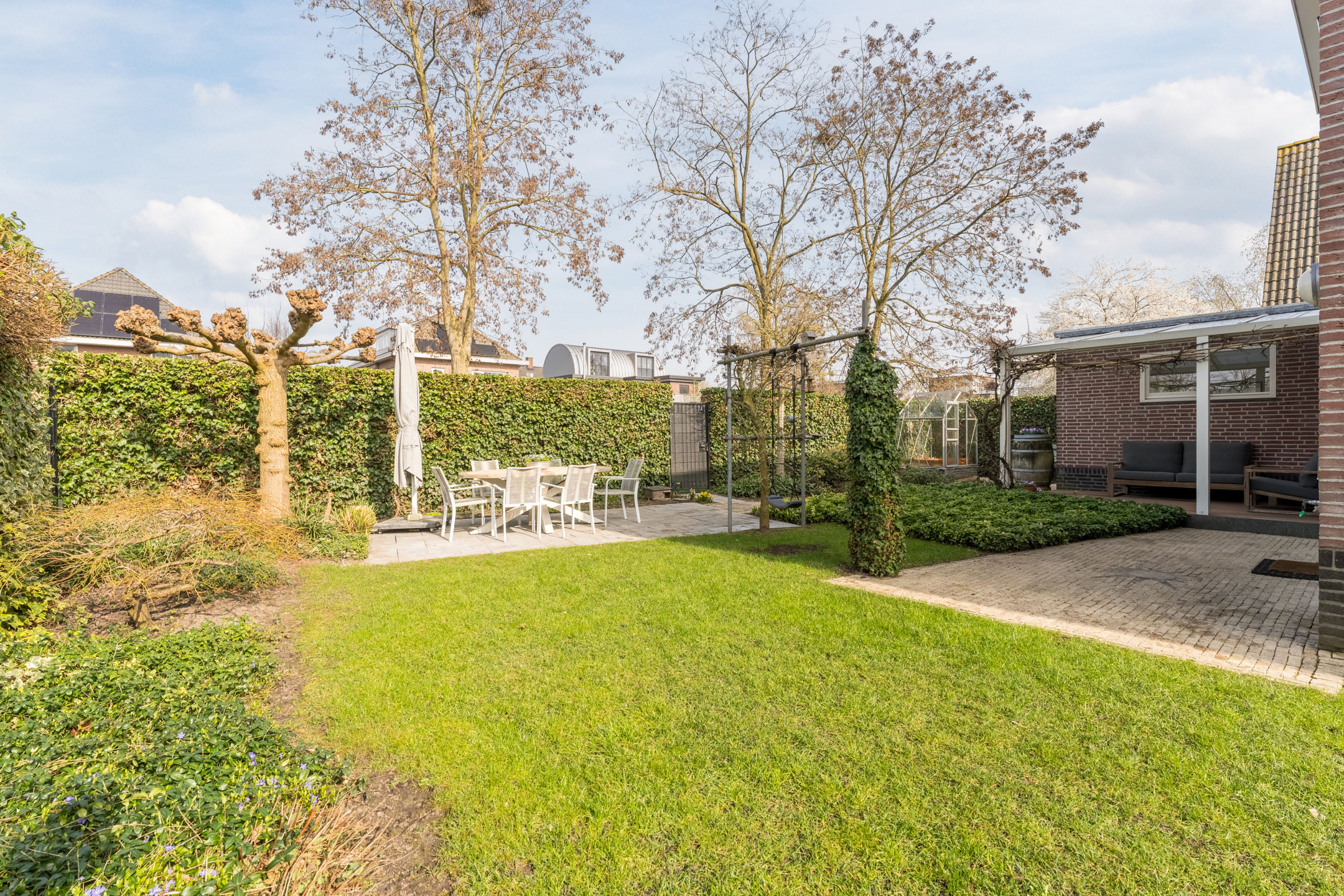 • Ruime en rustige tuin met veel privacy, speelmogelijkheden voor de kinderen en een kas om eigen groenten in te verbouwen.