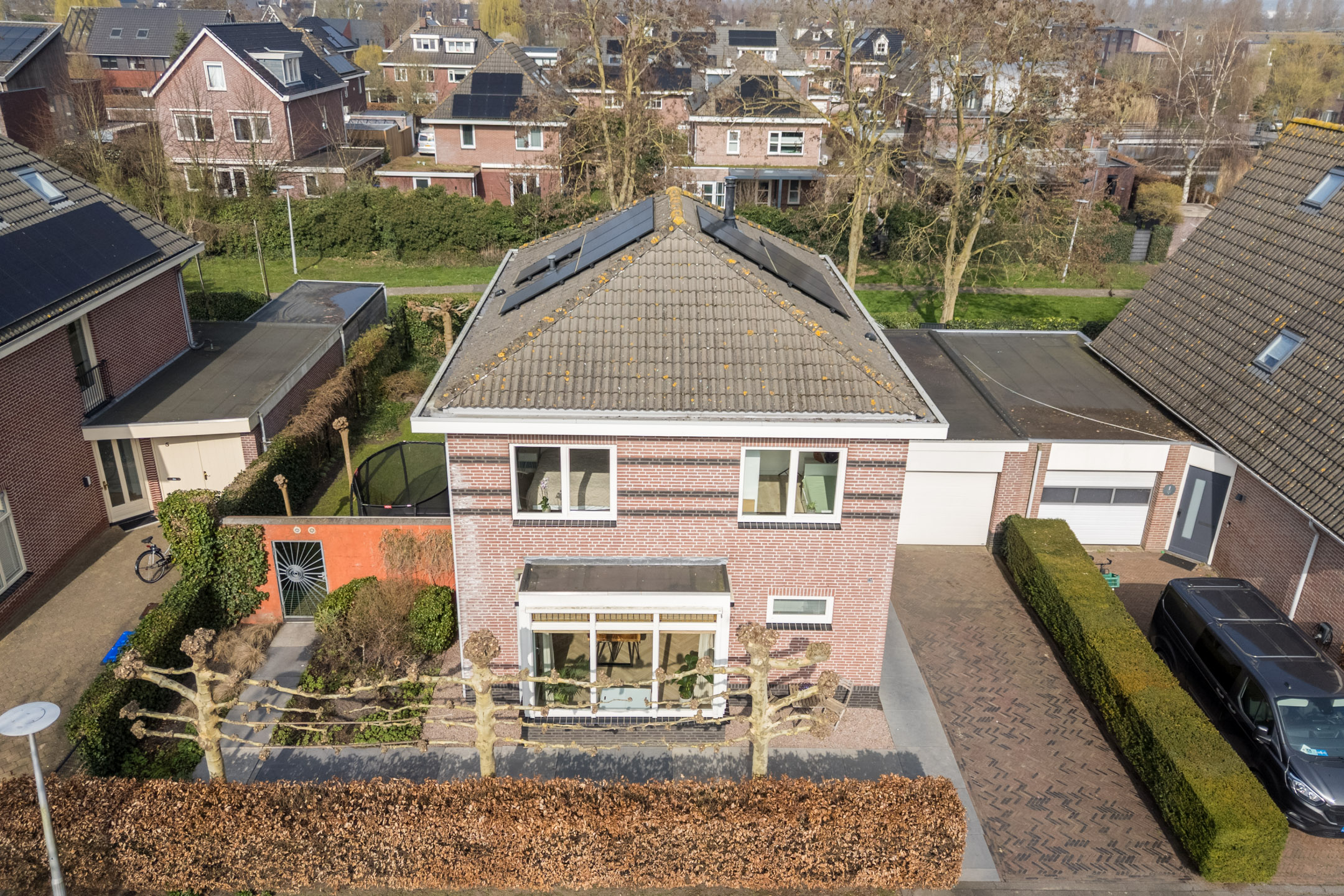 Kenmerkend voor deze woning is de combinatie van rust, ruimte, licht en een hoogwaardige afwerking. Deze vrijstaande woning op eigen grond beschikt op de begane grond over een riante entree met op maat gemaakte garderobekast, een heerlijke woonkeuken met sfeervolle erker en bijkeuken, en een tuingerichte, ruime woonkamer met twee fraaie op maat gemaakte inbouwkasten. De eerste verdieping is praktisch ingedeeld met o.a. maar liefst vier multifunctionele (slaap)kamers op de hoeken van de woning. De woning beschikt verder over een riante zolder, met mogelijkheden om een volwaardige tweede verdieping te creëren. De woning is energiezuinig (A+), mede door de aanwezigheid van 10 zonnepanelen. Daarnaast is een deel van de voormalige garage omgebouwd tot een volwaardige kantoorruimte aan huis, waardoor wonen en werken hier op een bijzonder comfortabele manier samenkomen.