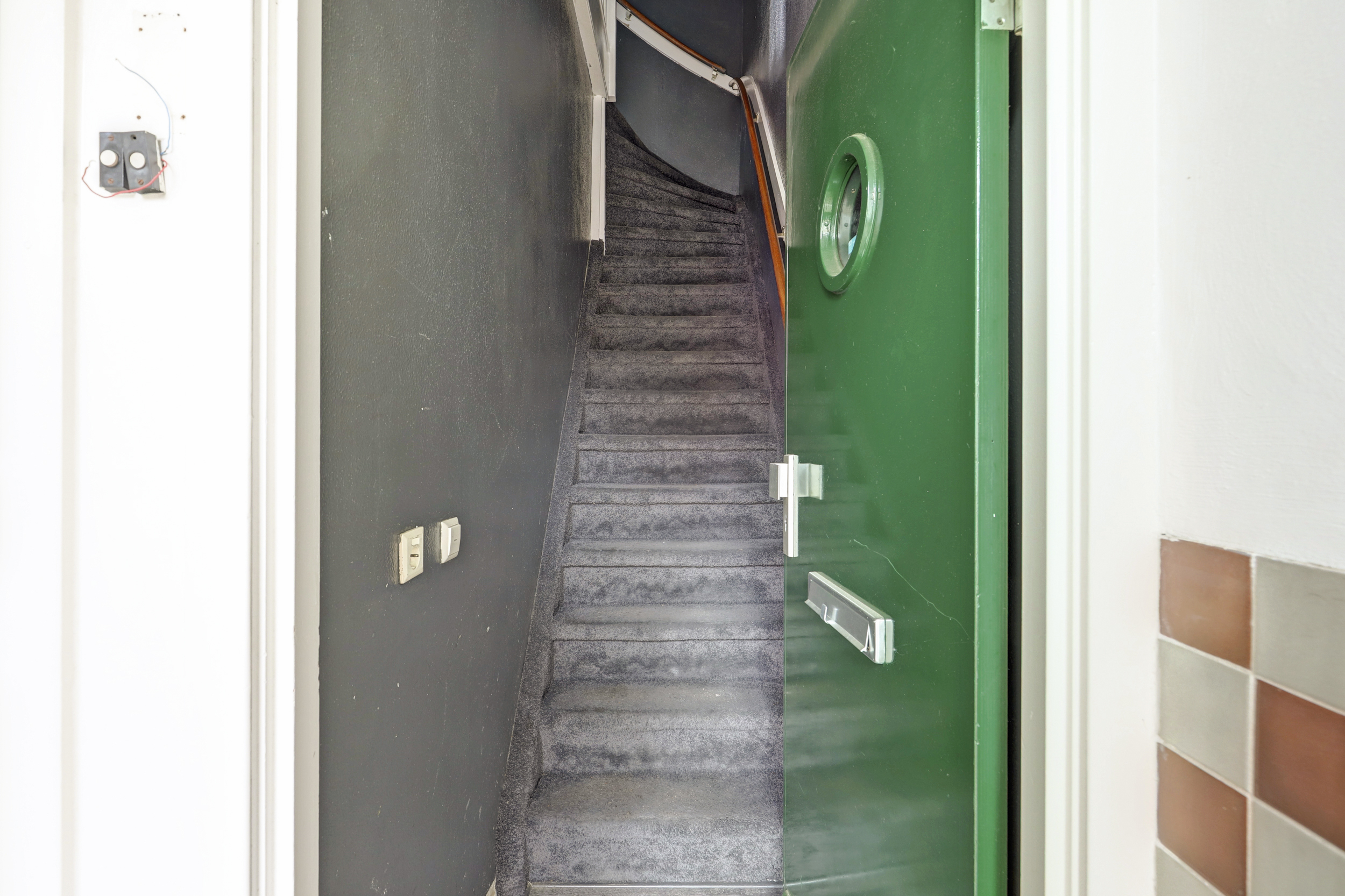Vanaf het straatniveau is middels een trap de ondergelegen berging te bereiken. De berging is ca. 5 m2 en beschikt over daglicht en elektra. Naast de trap bevindt zich een fietsenhelling, zodat je eenvoudig je fiets in de eigen berging kunt stallen.