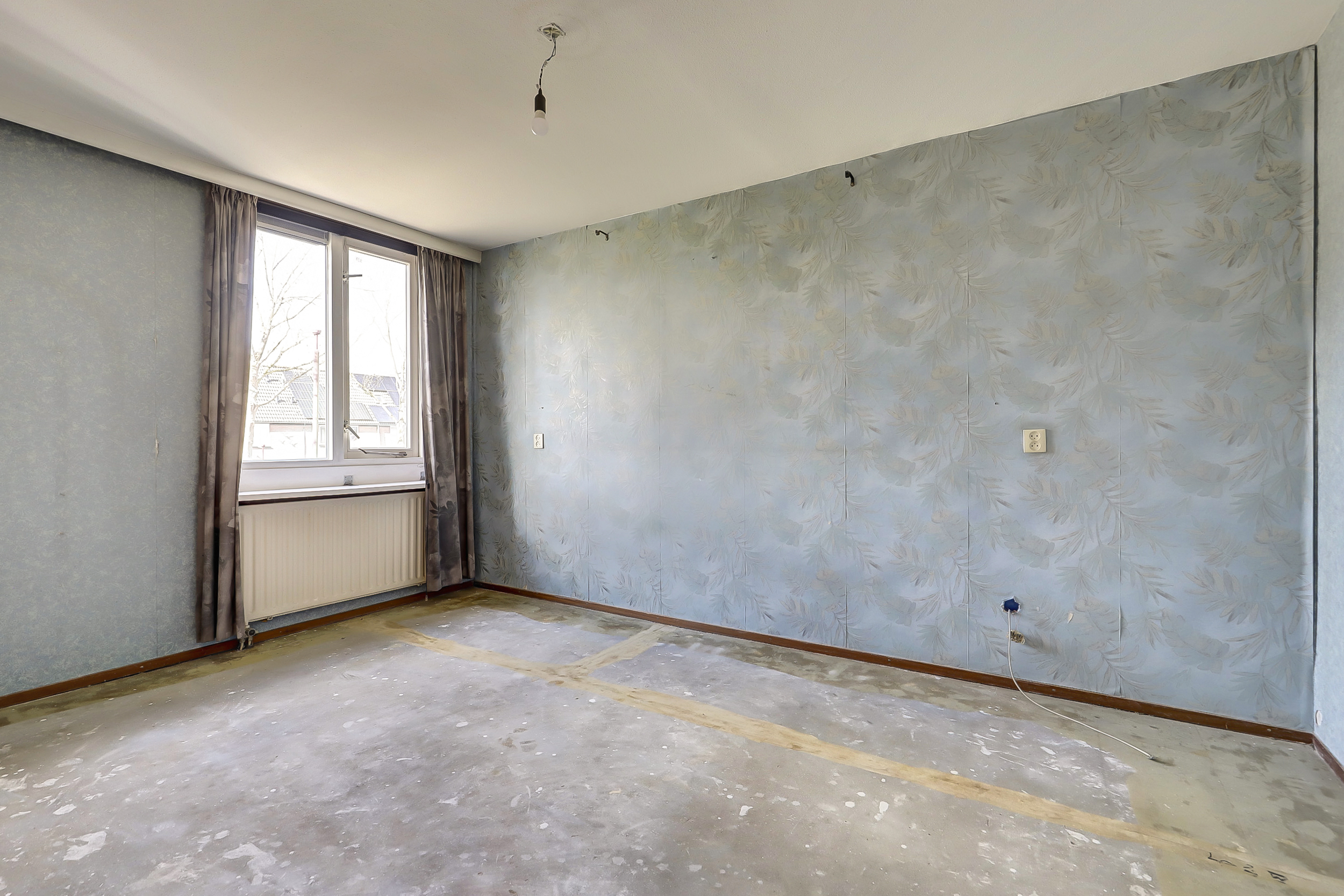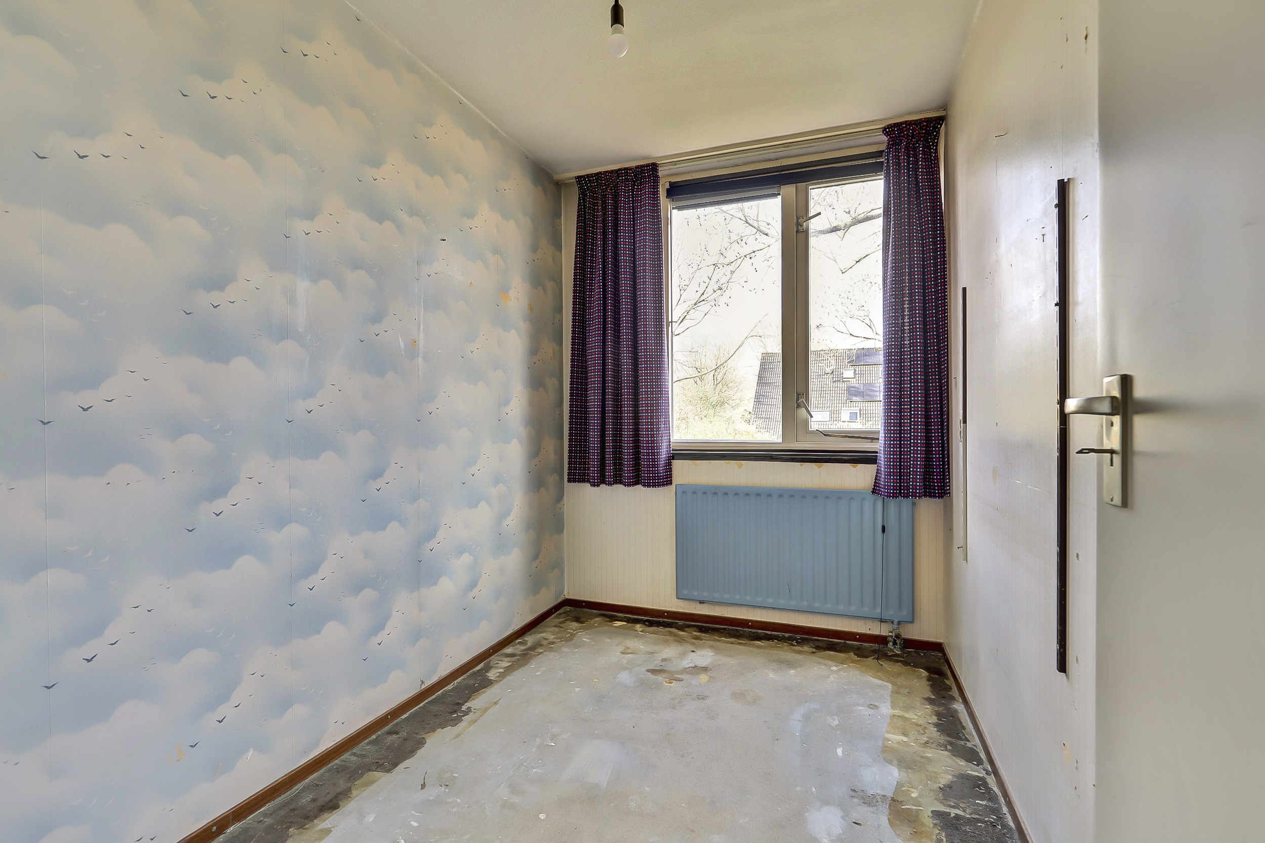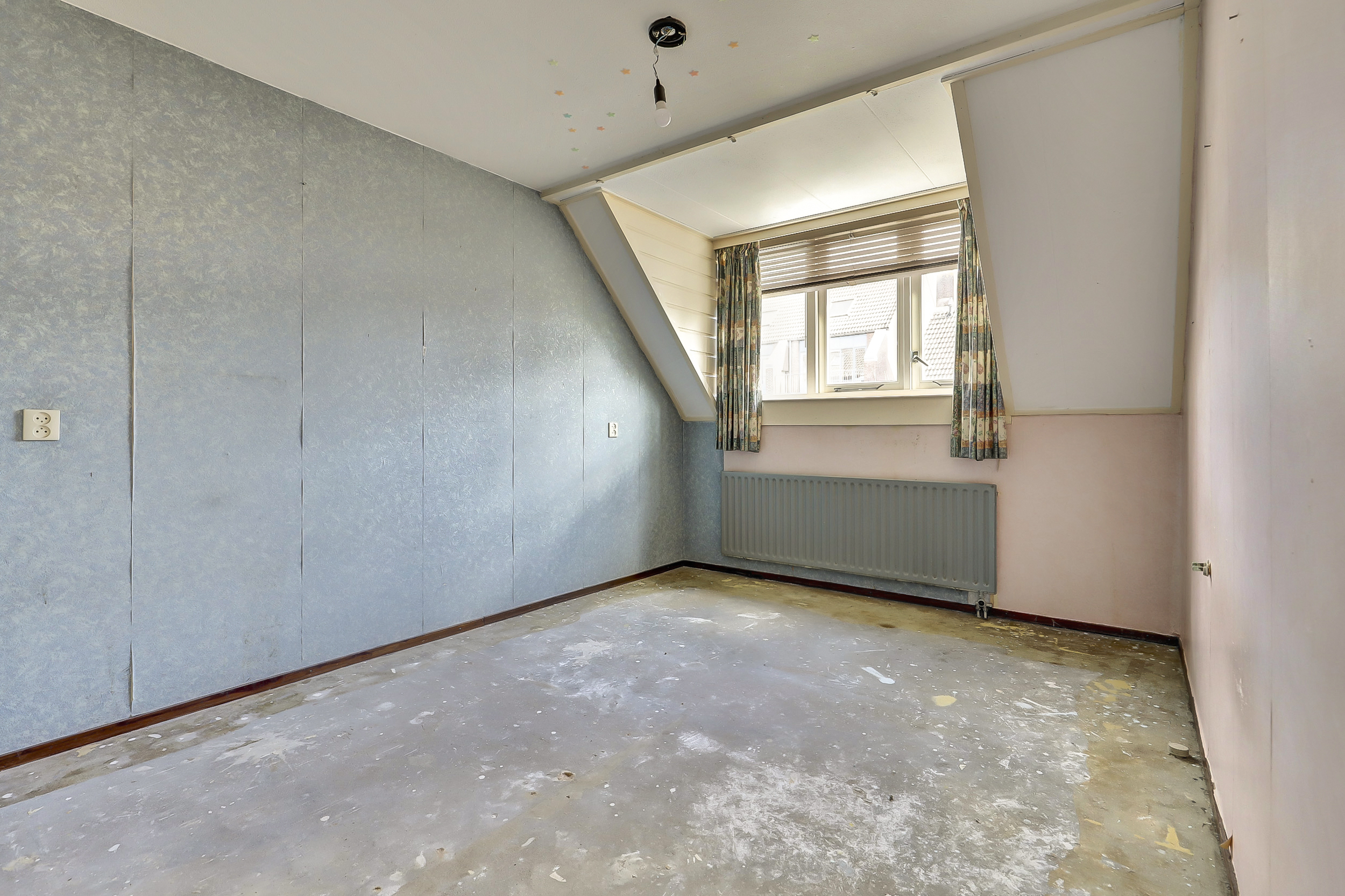 Vanaf de overloop op de eerste verdieping zijn er 3 slaapkamers en de badkamer bereikbaar. Aan de voorzijde bevinden zich twee slaapkamers (ca. 12 en 6 m²) met uitzicht op de straat. De badkamer is aan de achterzijde gesitueerd welke is voorzien van een toilet, wastafel en een bad. De naastgelegen slaapkamer is uitgerust met dakkapel en kijkt uit over de achtertuinen.