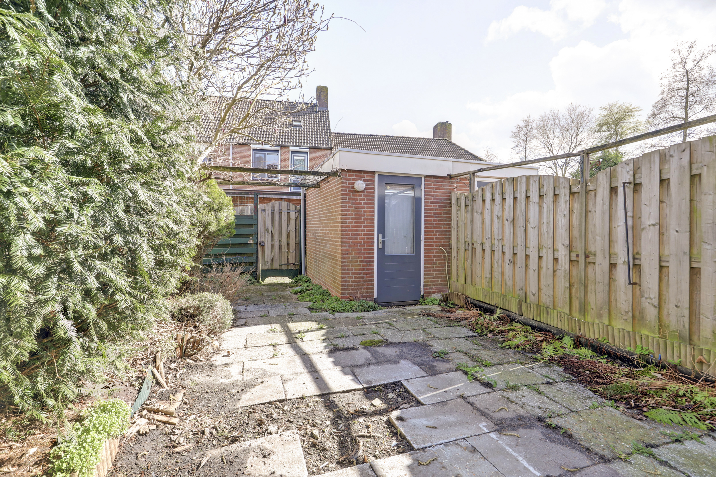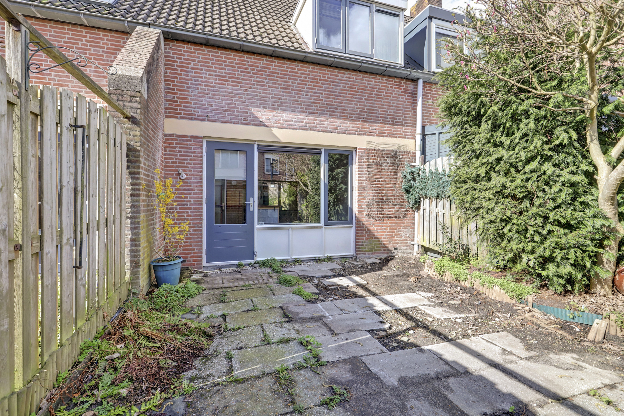 De diepe achtertuin ligt op het oosten en is bereikbaar vanuit de keuken. Achterin de tuin staat een berging van ca. 6 m². De tuin kent veel privacy door de vrije ligging aan de achterzijde. Het omliggende groen geeft een fijne uitstraling. De tuin is tevens bereikbaar middels de achterom.