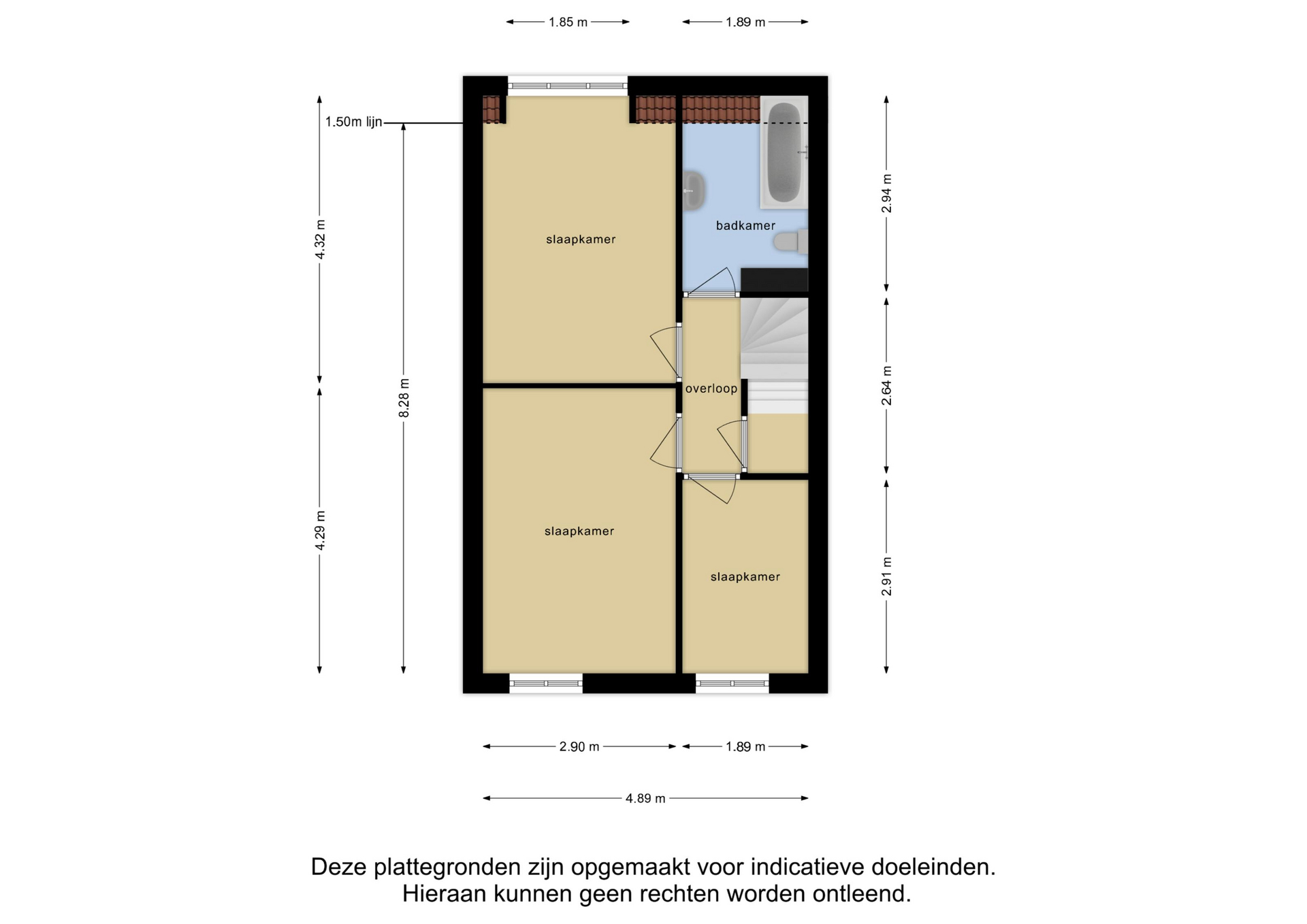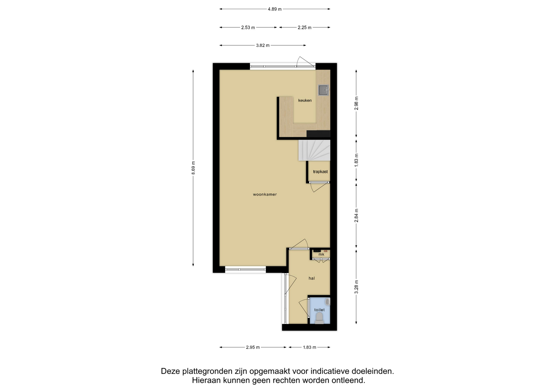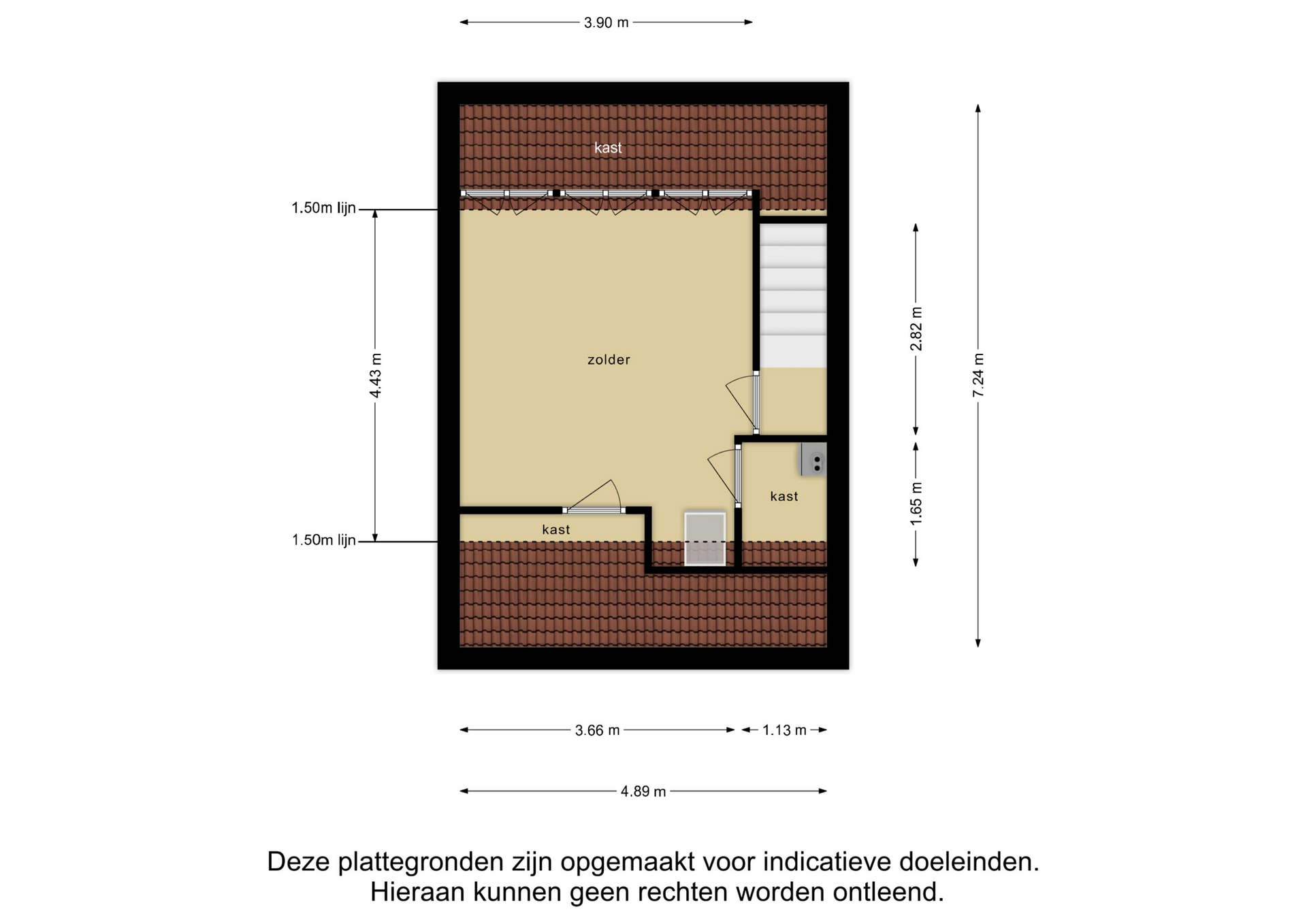 – Woonoppervlak ca. 89 m2 + 21 m2 zolder (overig inpandige ruimte);