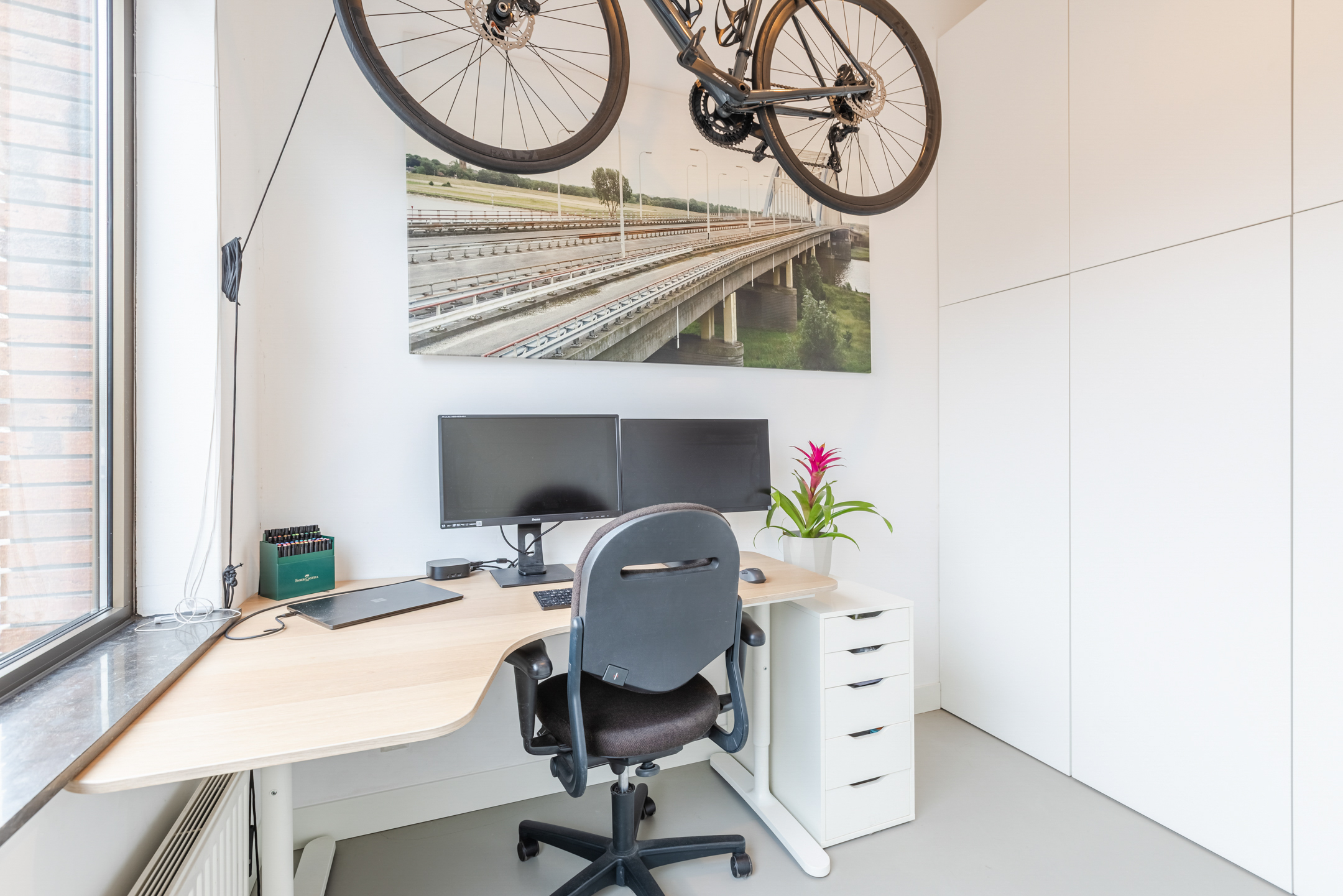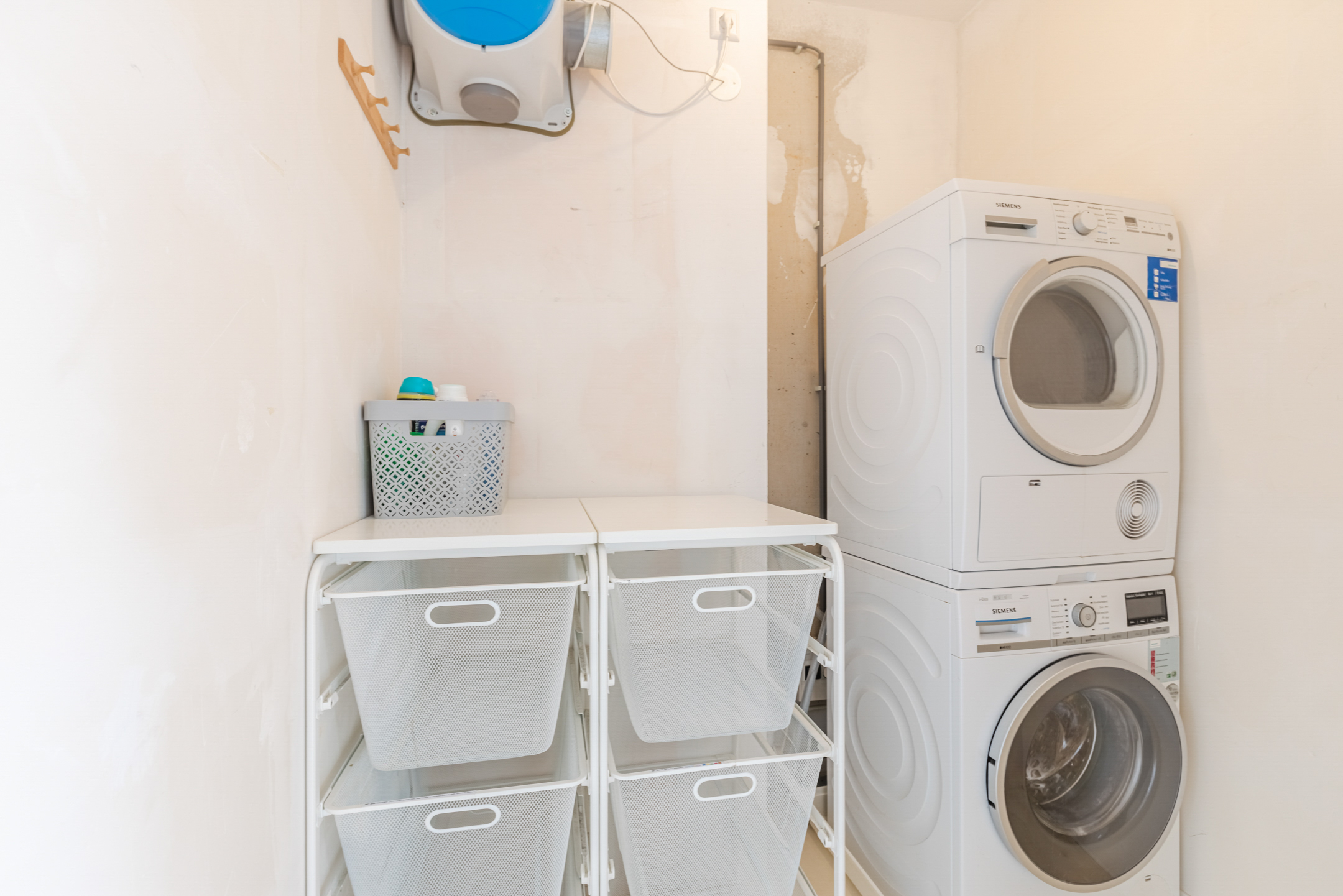 Ook bevindt zich op deze verdieping een praktische bergkast, waar zich de opstelplaats voor de wasmachine en droger bevindt. Indien gewenst zou je hier nog een tweede douche- en/of wastafelvoorziening kunnen realiseren. Ideaal natuurlijk als studio voor inwonende tieners, voor logees of voor oudere kinderen die een fijne eigen plek in huis wensen.