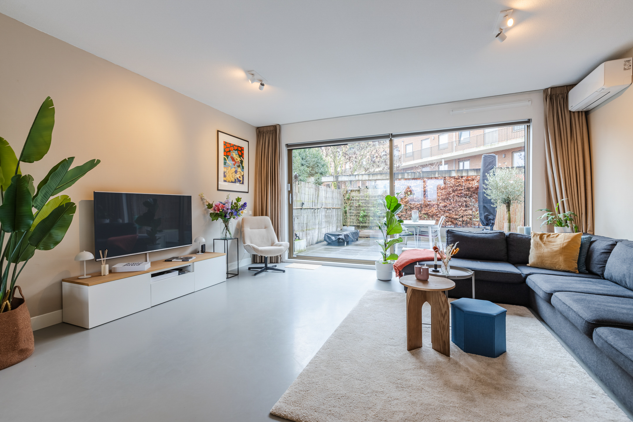 De woonkamer bevindt zich aan de achterzijde van de woning en kenmerkt zich door de fijne lichtinval (dankzij de grote aluminium schuifpui) en het open karakter. Hier is meer dan voldoende ruimte om een gezellige zit-/ en eethoek te creëren.
