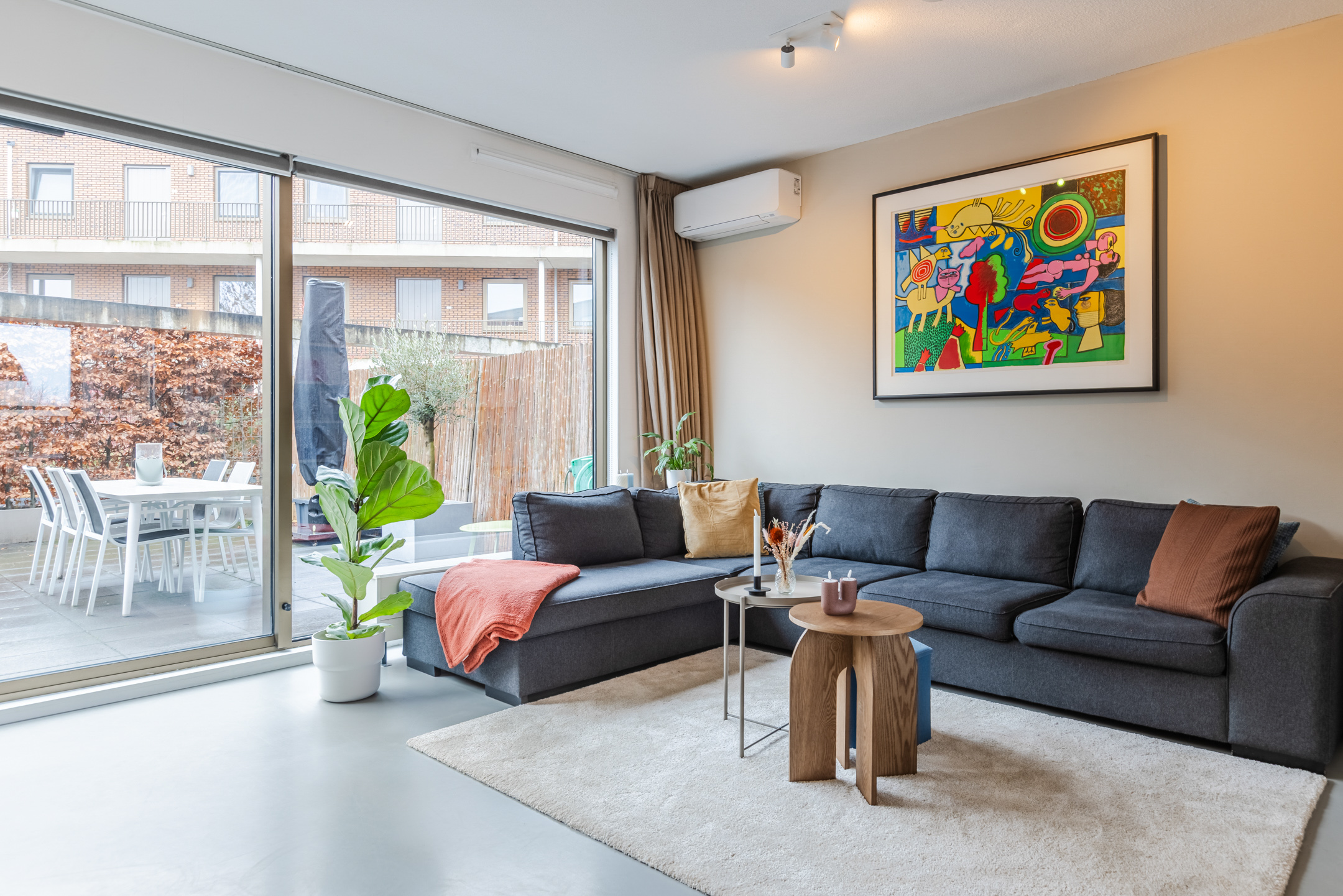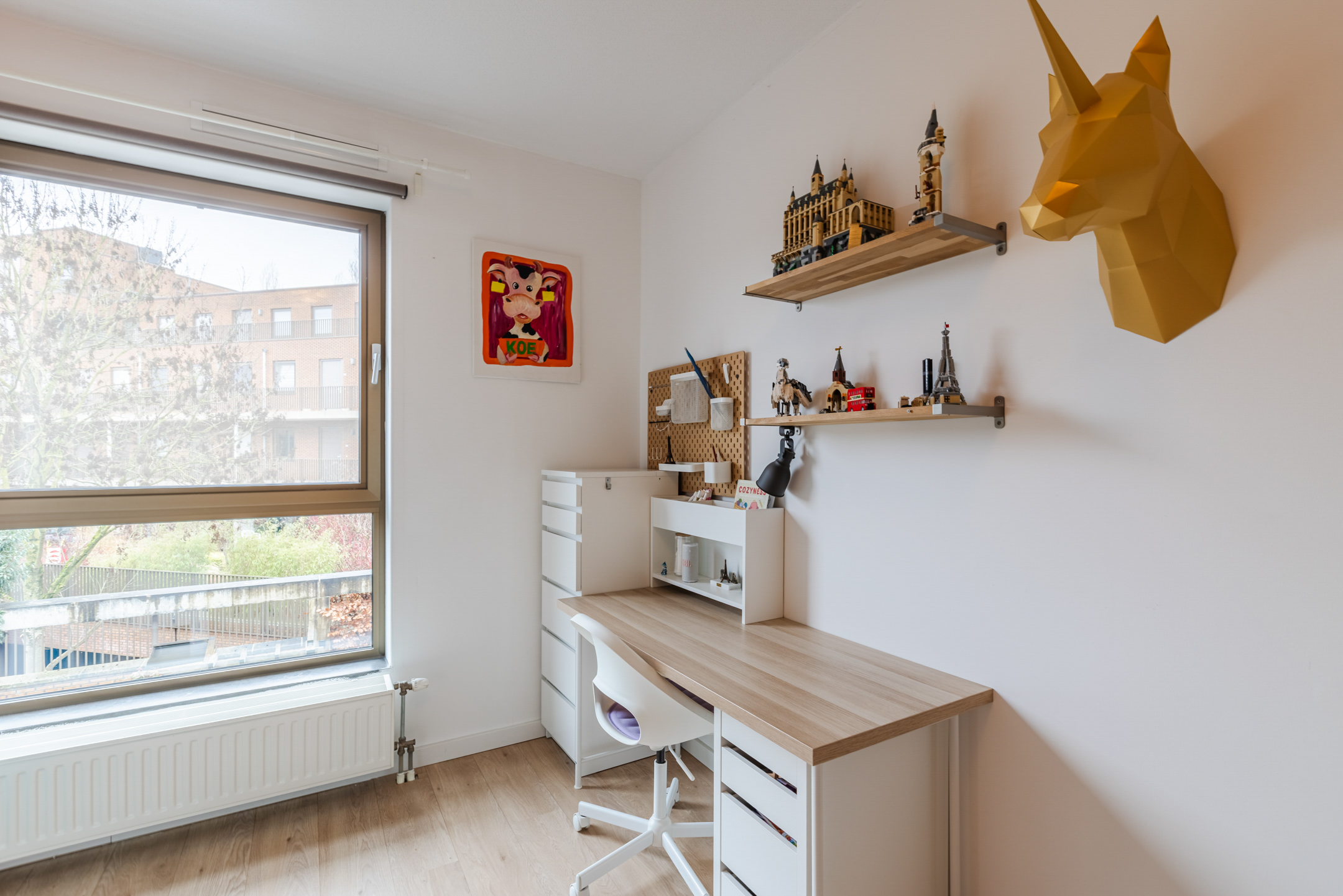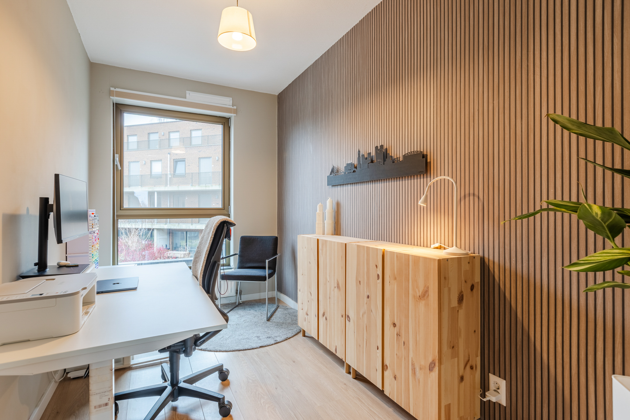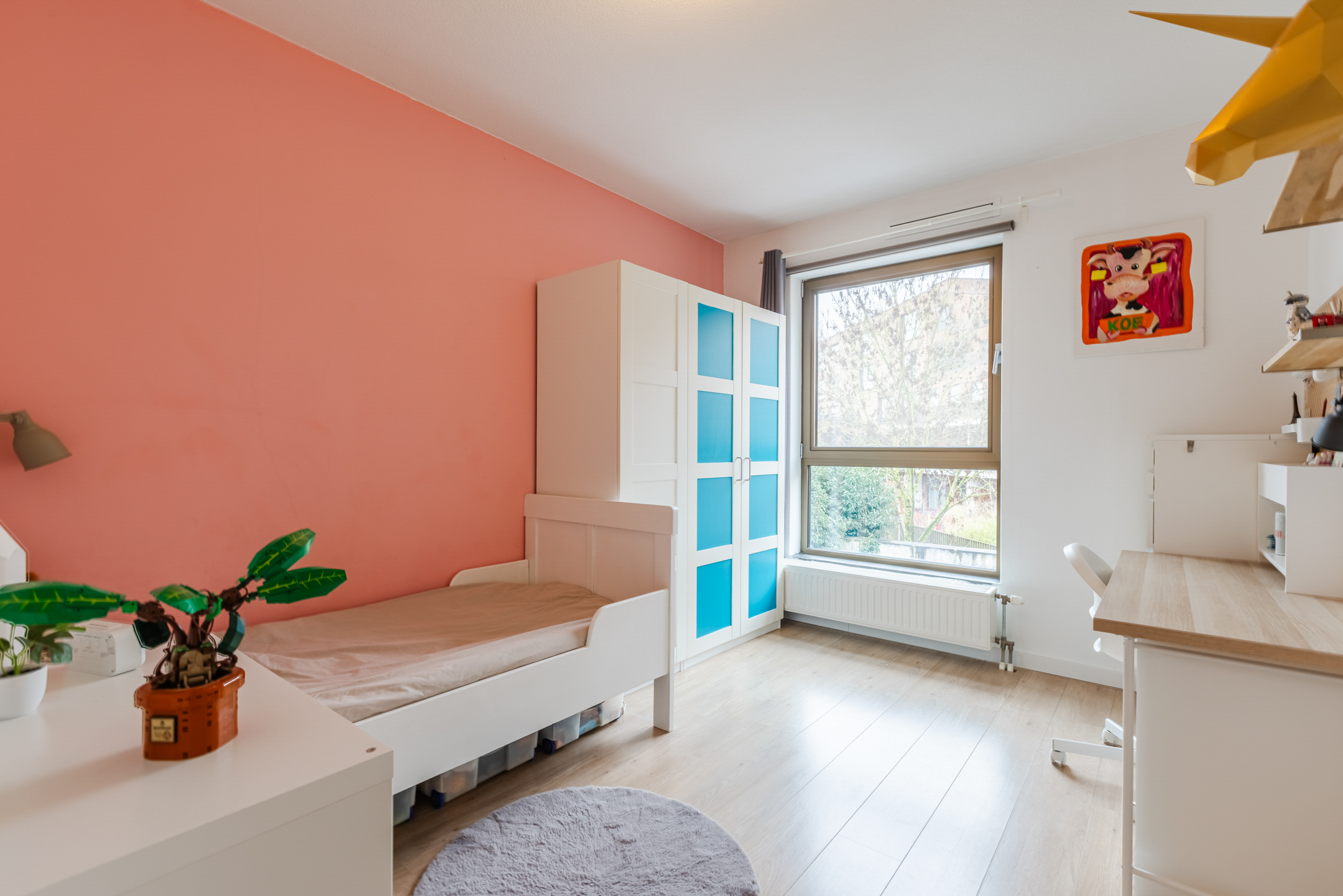 A distinctive feature of this very spacious four-level (!) family home is its unique layout, with the living room and kitchen located on the first floor, a sunny backyard, and a generous south-facing rooftop terrace offering plenty of privacy. This is combined with a move-in-ready finish and an energy-efficient character, thanks in part to 10 solar panels, shutters at the rear, and district heating. On the ground floor, you will find a lovely study/home office — ideal for those working from home. The large windows throughout the house are particularly striking, providing abundant natural light and panoramic views of the beautiful surroundings.
