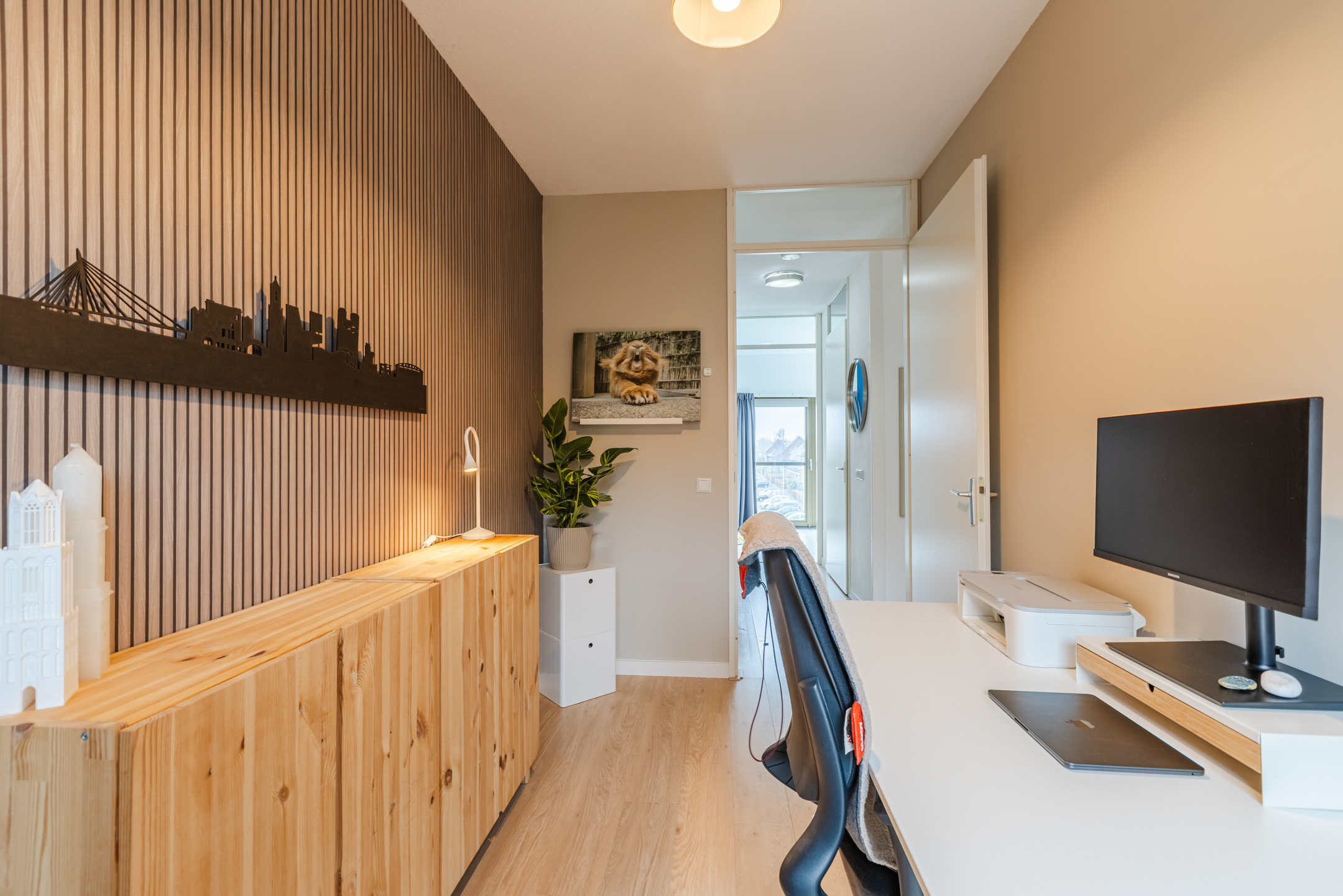 Kenmerkend voor deze 4-laags (!) zeer ruime eengezinswoning is de unieke indeling met de woonkamer en keuken op de eerste verdieping, de zonnige achtertuin én het riante dakterras op het zuiden met veel privacy, gecombineerd met een instapklare afwerking en een energiezuinig karakter dankzij onder andere 10 zonnepanelen, rolluiken aan de achterzijde en stadsverwarming. Op de begane grond vind je een mooie studeerkamer/werkkamer voor alle thuiswerkende mensen onder ons. Ideaal! Sprekend zijn de grote raampartijen in de woning die voor lekker veel daglicht zorgen en een panorama uitzicht geven op de mooie omgeving.