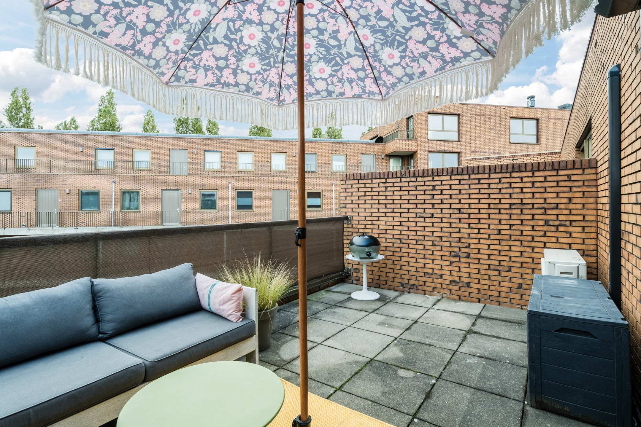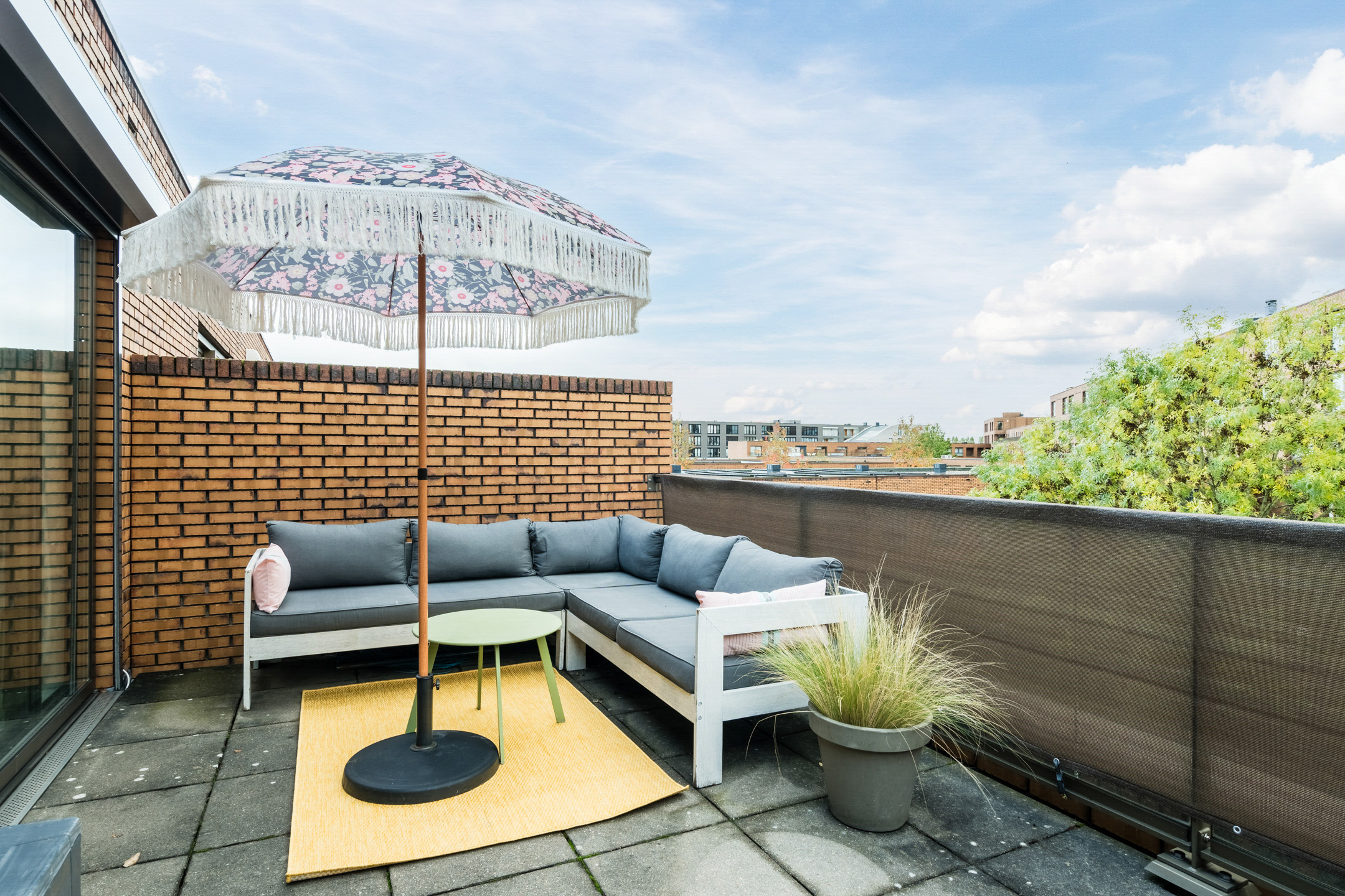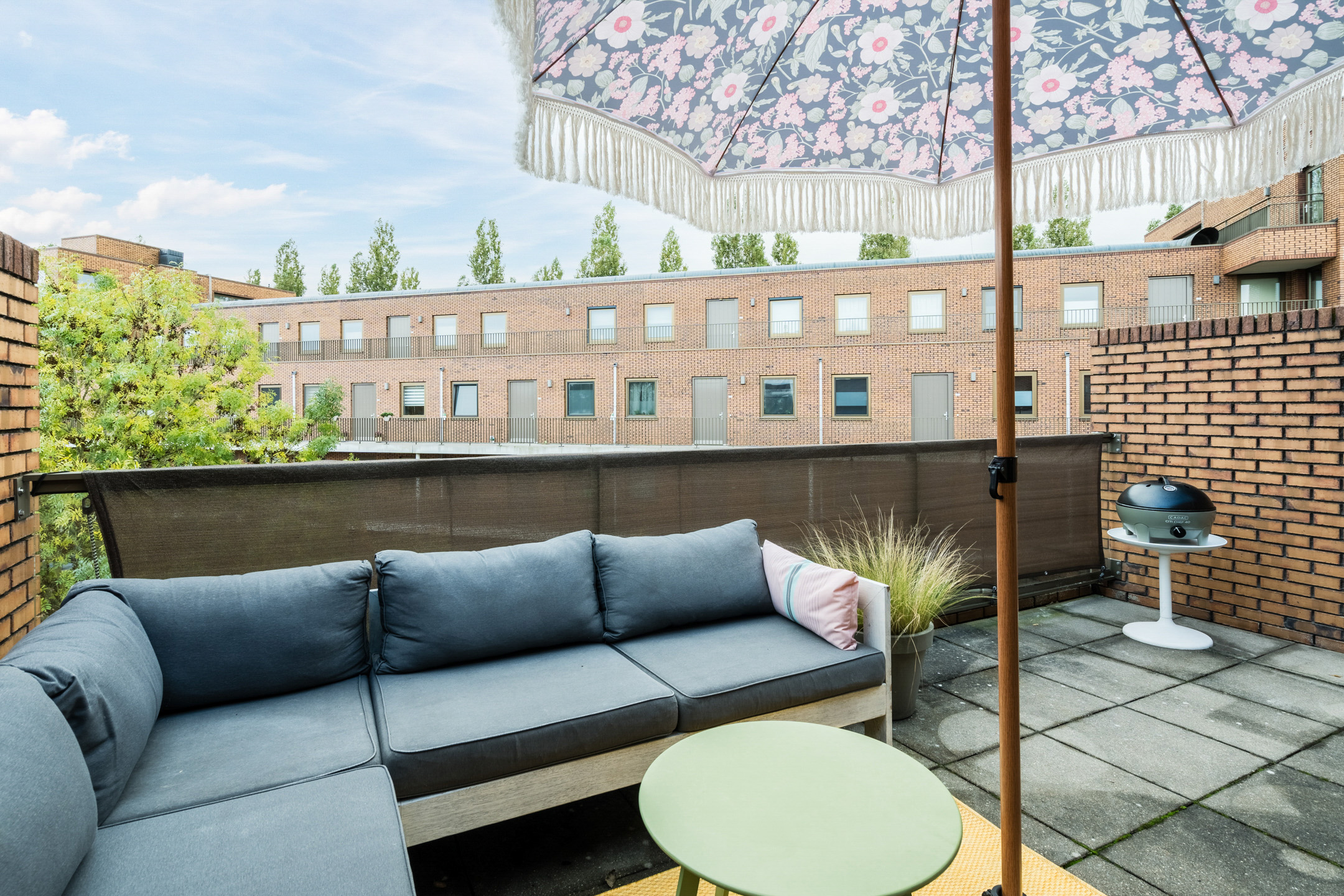 Vanuit de pantry aan de achterzijde heb je, middels een schuifpui, toegang tot het heerlijke dakterras op het zonnige zuiden, waar je in alle rust kunt genieten van het zonnetje.