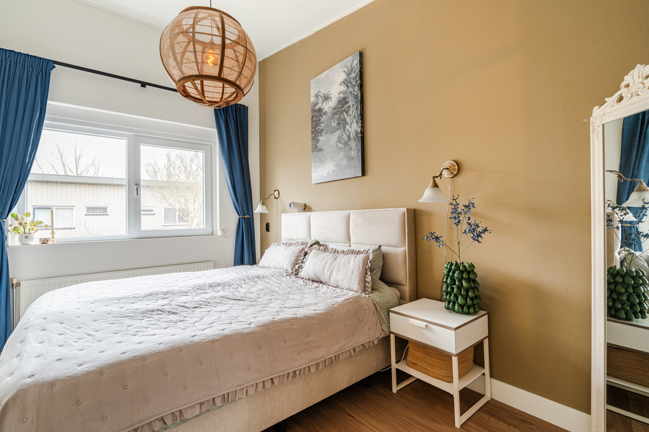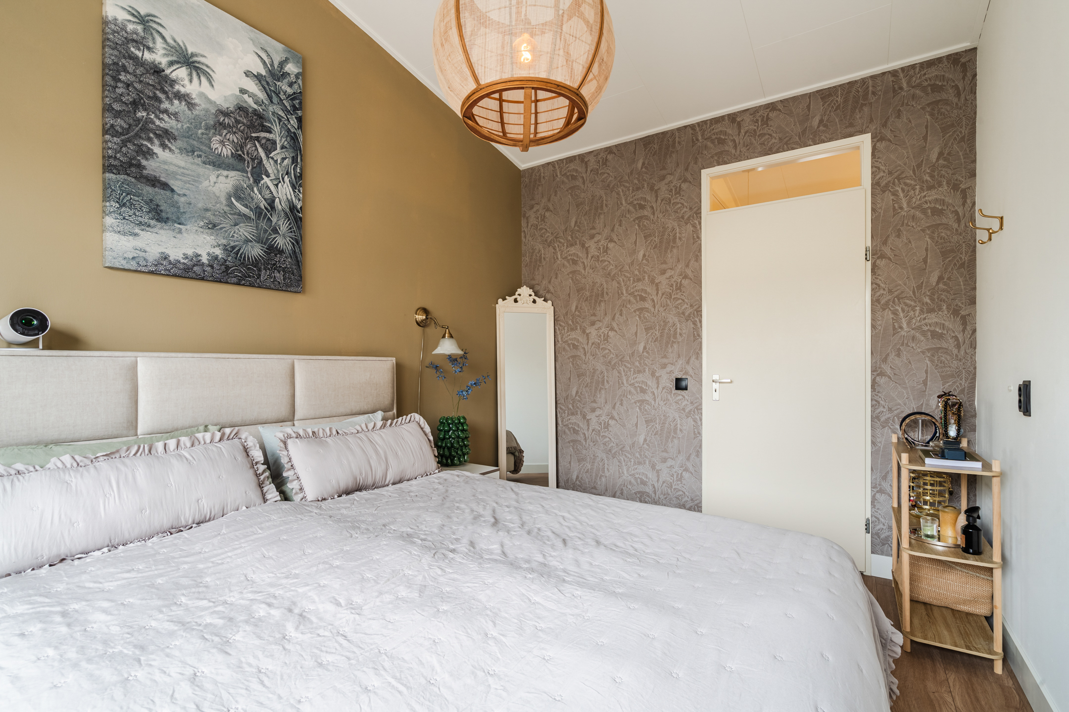 Aan de voorzijde bevindt zich de grootste kamer, die direct in het oog springt door de indrukwekkende plafondhoogte van bijna 3,5 meter. Deze extra hoogte zorgt voor een bijzonder ruimtelijk en luchtig gevoel en geeft de kamer een unieke uitstraling. Momenteel is deze kamer in gebruik als comfortabele master bedroom, maar ook hier zijn diverse indelingen denkbaar.