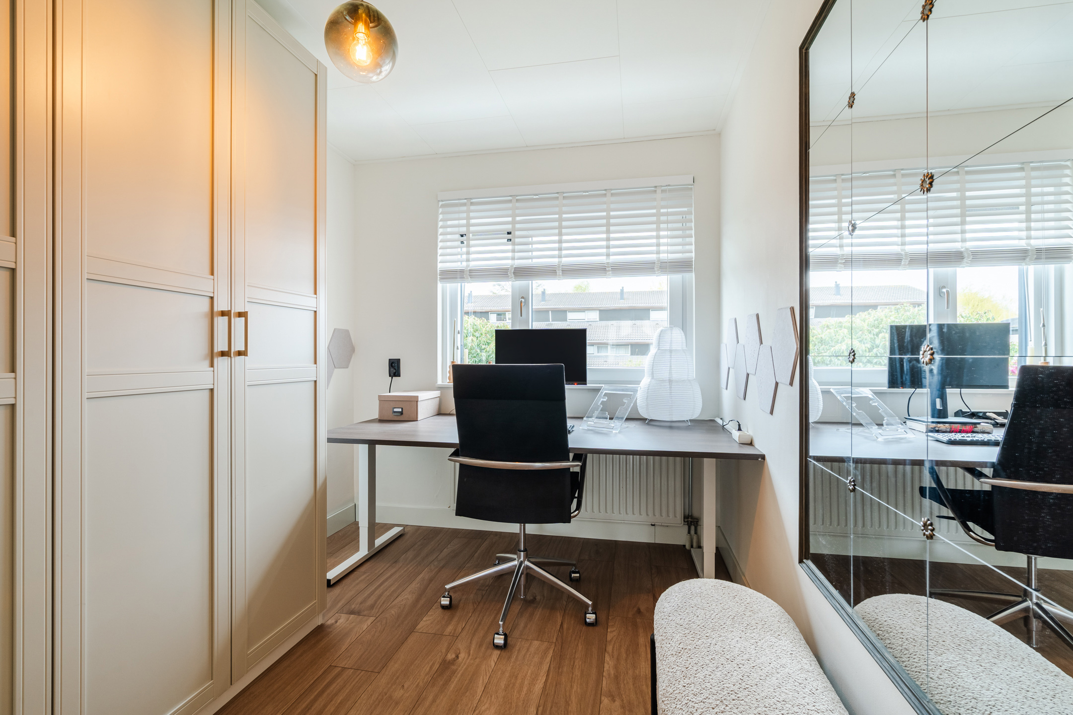 Aan de achterzijde van de woning liggen twee fijne (slaap)kamers, beide met een prettig uitzicht over de groene, gezellige achtertuinen. Deze kamers zijn uitermate geschikt als kinderkamer, werkkamer of logeerkamer en bieden volop mogelijkheden om ze geheel naar eigen wens in te richten.