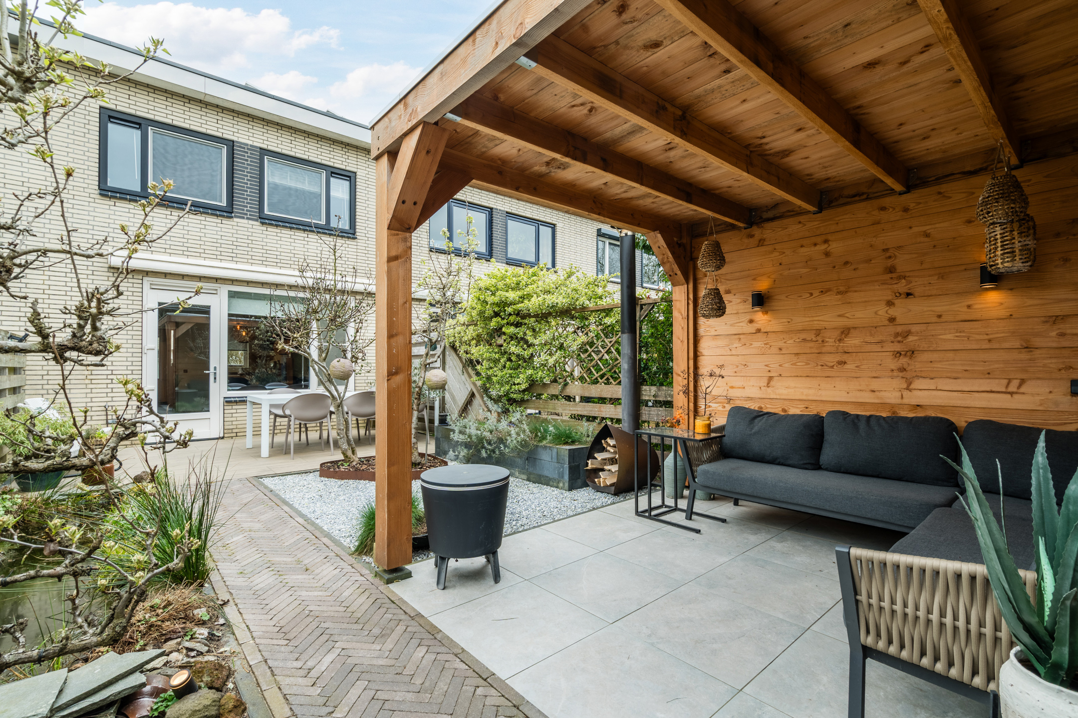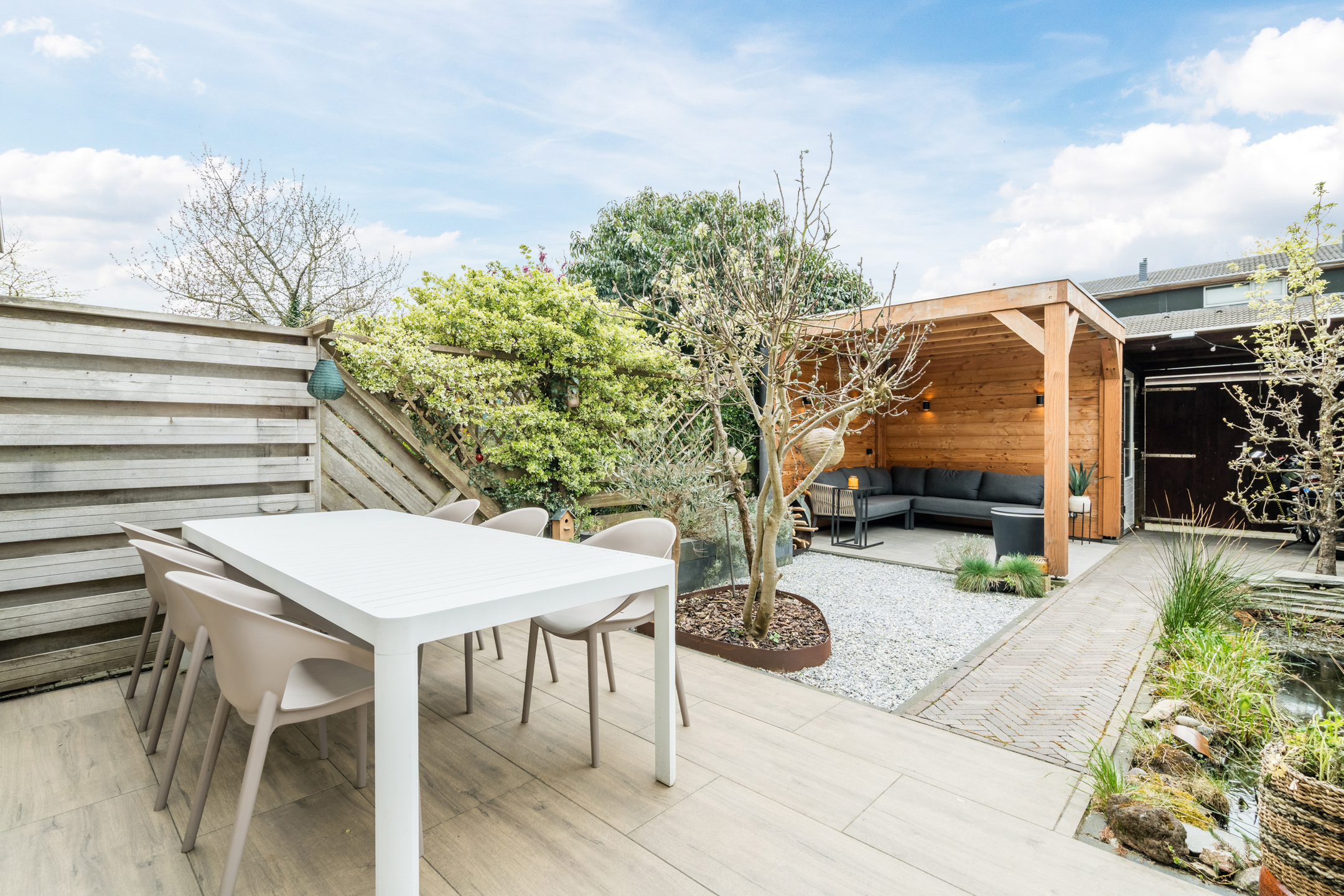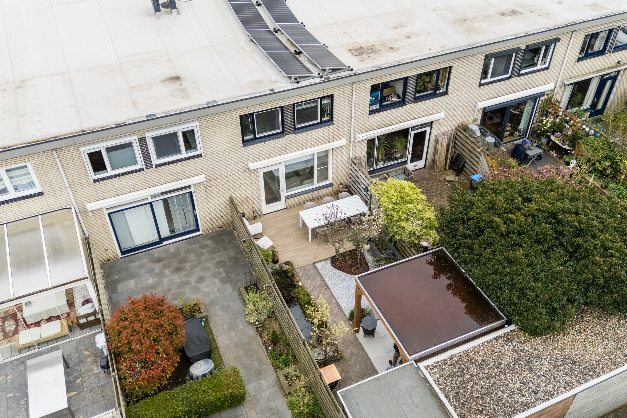 De gezellige en groene achtertuin is gelegen op het zonnige zuidwesten en volledig opnieuw aangelegd in 2024. Hierdoor geniet je de hele dag van de zon! De tuin is grotendeels voorzien van keramische sierbestrating, diverse terrassen om lekker van de zon te genieten, een houten en groene erfafscheiding en meerdere groene plantenborders. Tijdens de echt warme zomerdagen kun je lekker genieten van een plekje in de schaduw onder het elektrisch zonnescherm of onder de charmante overkapping.