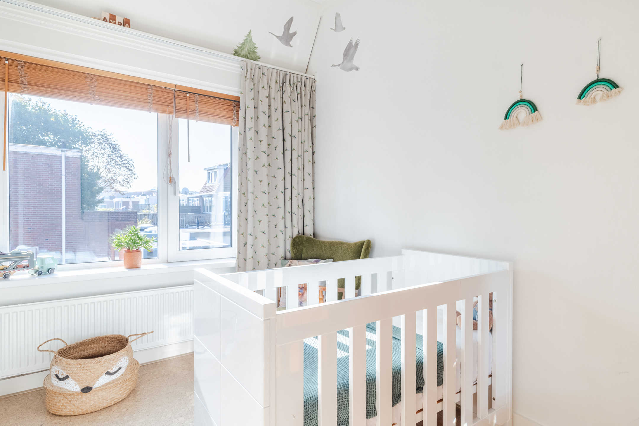 Op de eerste verdieping kom je via de overloop bij twee multifunctionele (slaap)kamers van ca. 9 en 13 m2. De slaapkamers hebben beide fijne hoge plafonds waardoor het aangename ruime kamers zijn. De kamer aan de voorzijde is voorzien van houten kozijnen met triple glas. De slaapkamer aan de achterzijde beschikt over HR beglazing en toegang tot extra bergruimte boven de overloop.