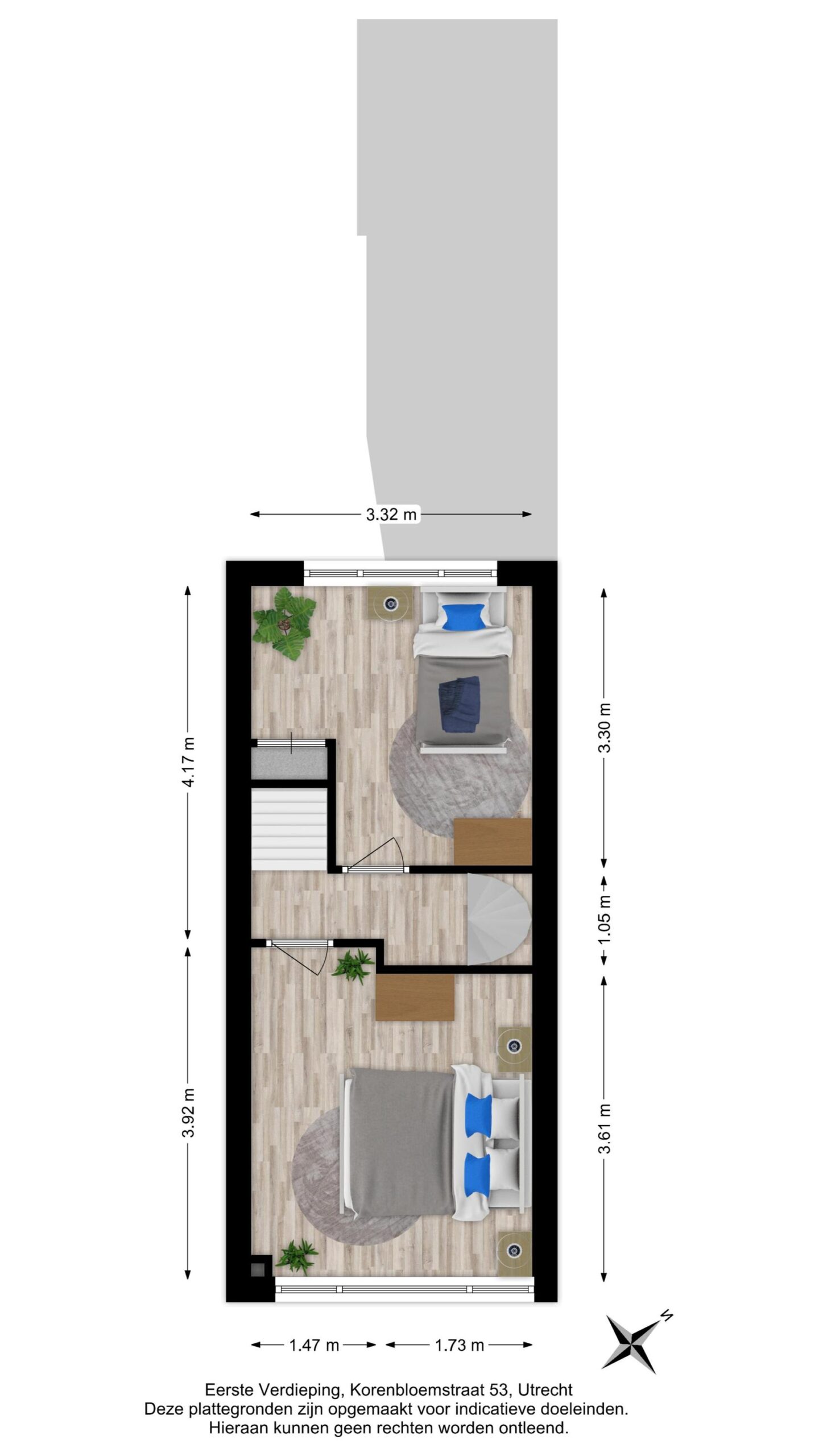 Deze verdieping is in 2021 gerealiseerd. Vanaf de overloop is middels een stalen wenteltrap de tweede verdieping te bereiken. De lichte overloop beschikt over een daglichtkoepel voor een prettige lichtinval. Deze efficiënt ingedeelde woonlaag biedt ruimte voor nog twee multifunctionele (slaap)kamers én een tweede badkamer. Aan de voorzijde is een slaapkamer gesitueerd met twee Velux dakramen. De vierde slaapkamer is uitgerust met een dakkapel met een kunststof kozijn. Deze slaapkamer heeft een fraai uitzicht over de groene achtertuin én het kleurrijke sedum/kruiden dak van de keuken en badkamer.