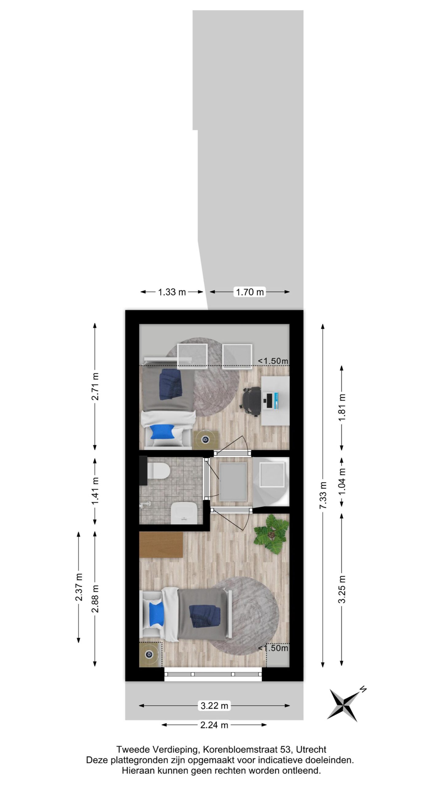 Op deze woonlaag is geen centrale verwarming aanwezig, deze woonlaag dient (indien gewenst) verwarmd te worden met bijv. een elektrische radiator. Deze verdieping is tijdens de realisatie volledig geïsoleerd.
