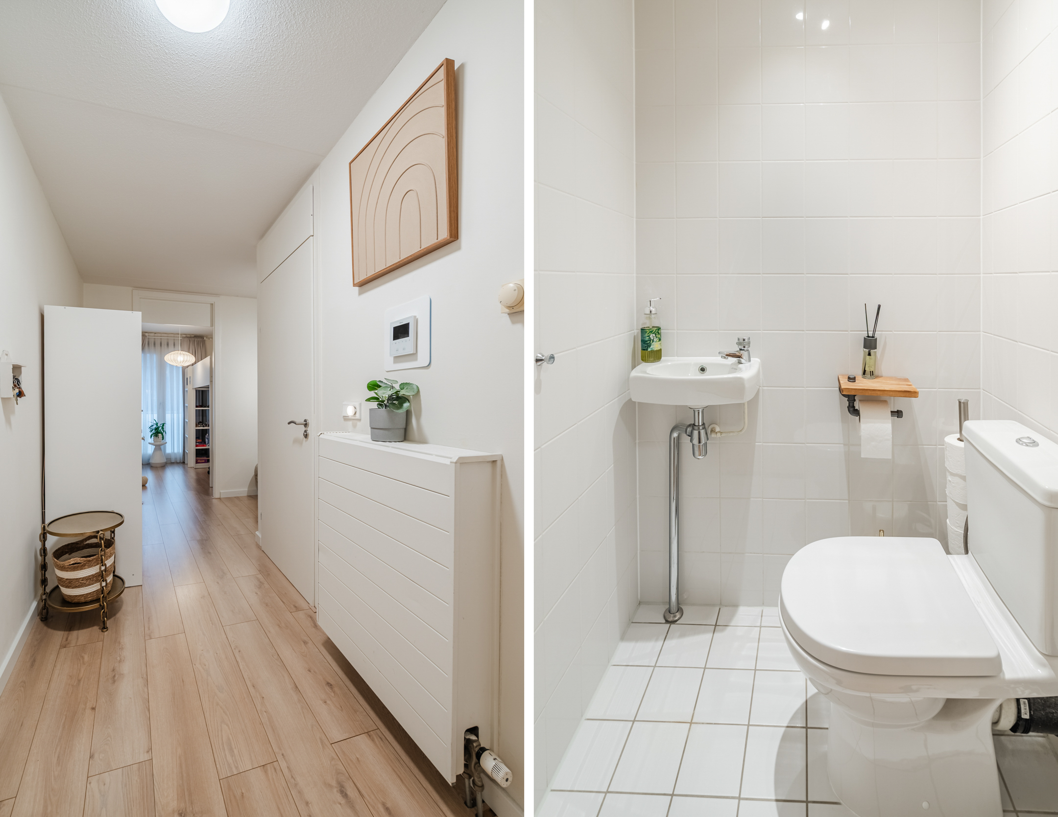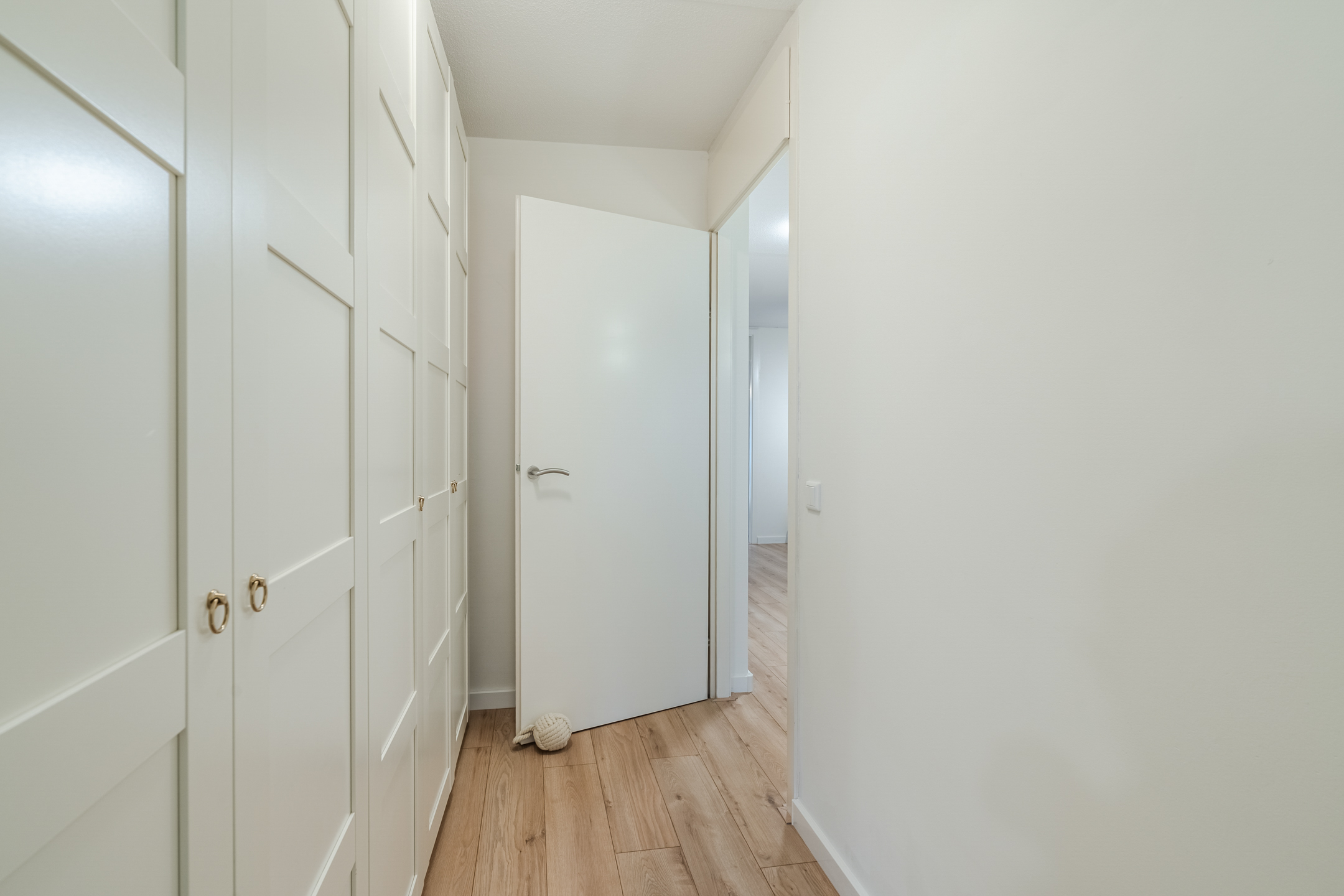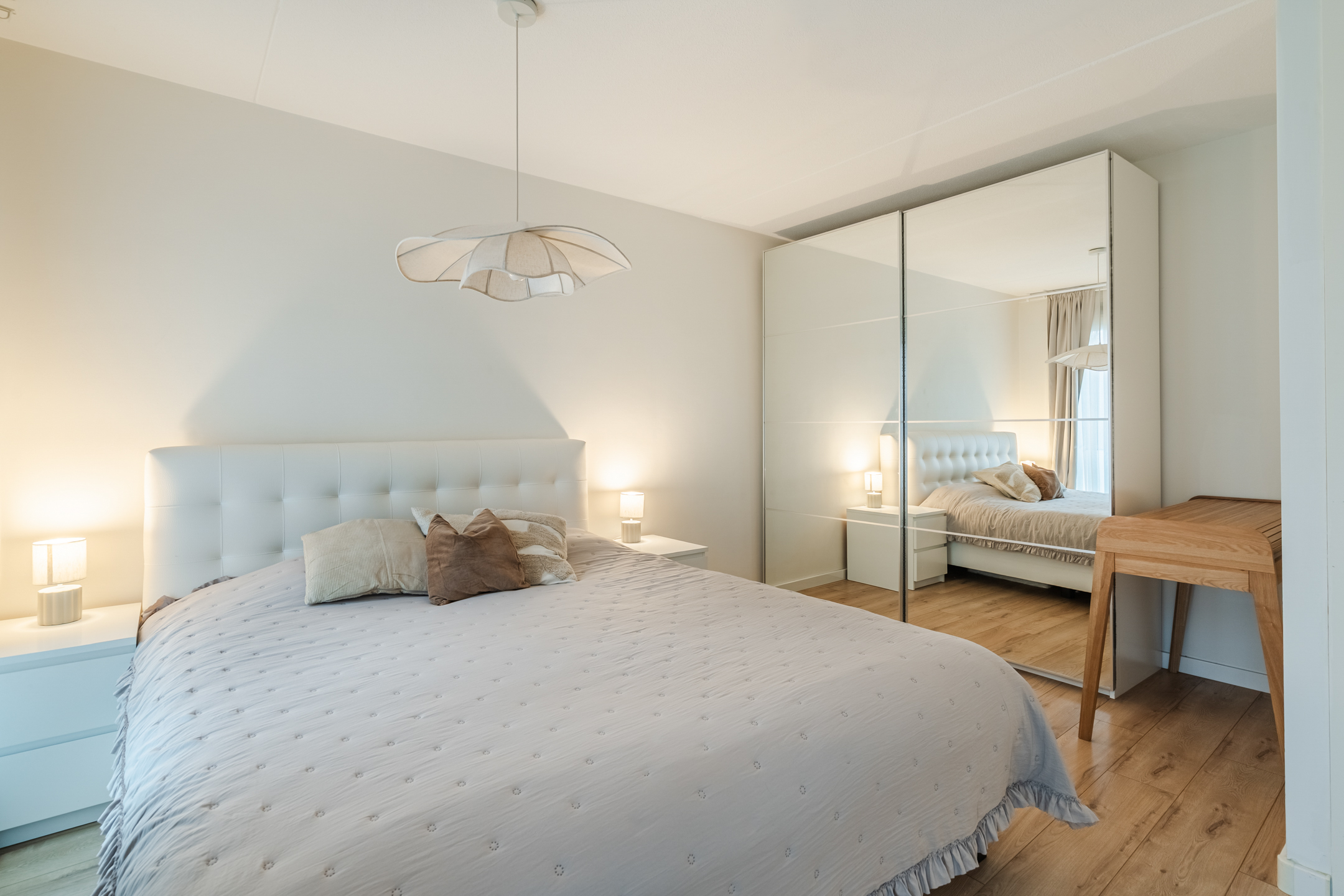 Het gehele appartement is afgewerkt met een sfeervolle laminaatvloer en strakke wandafwerking.