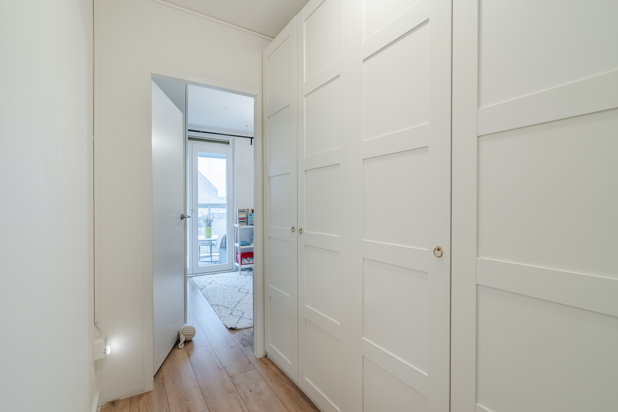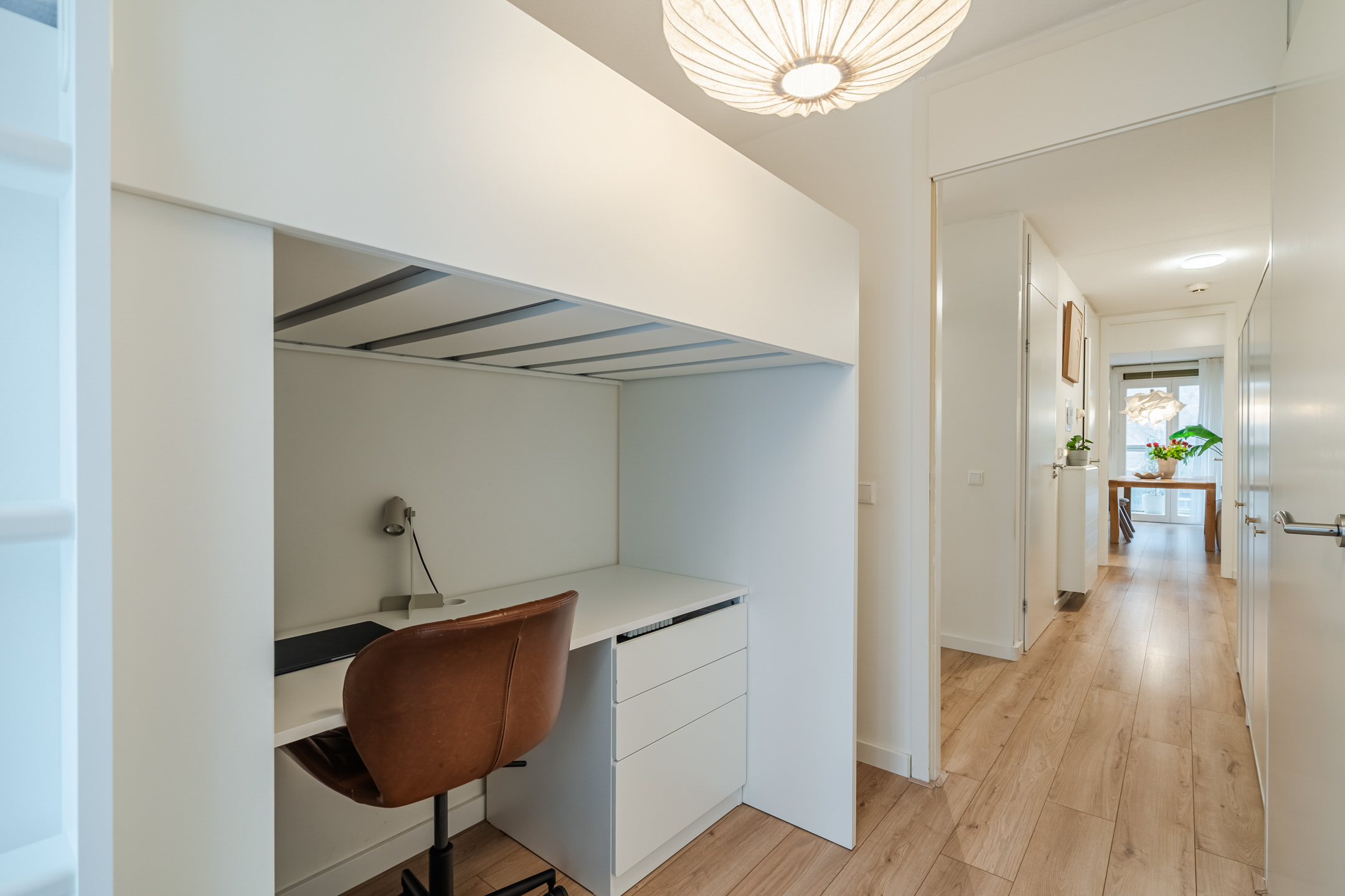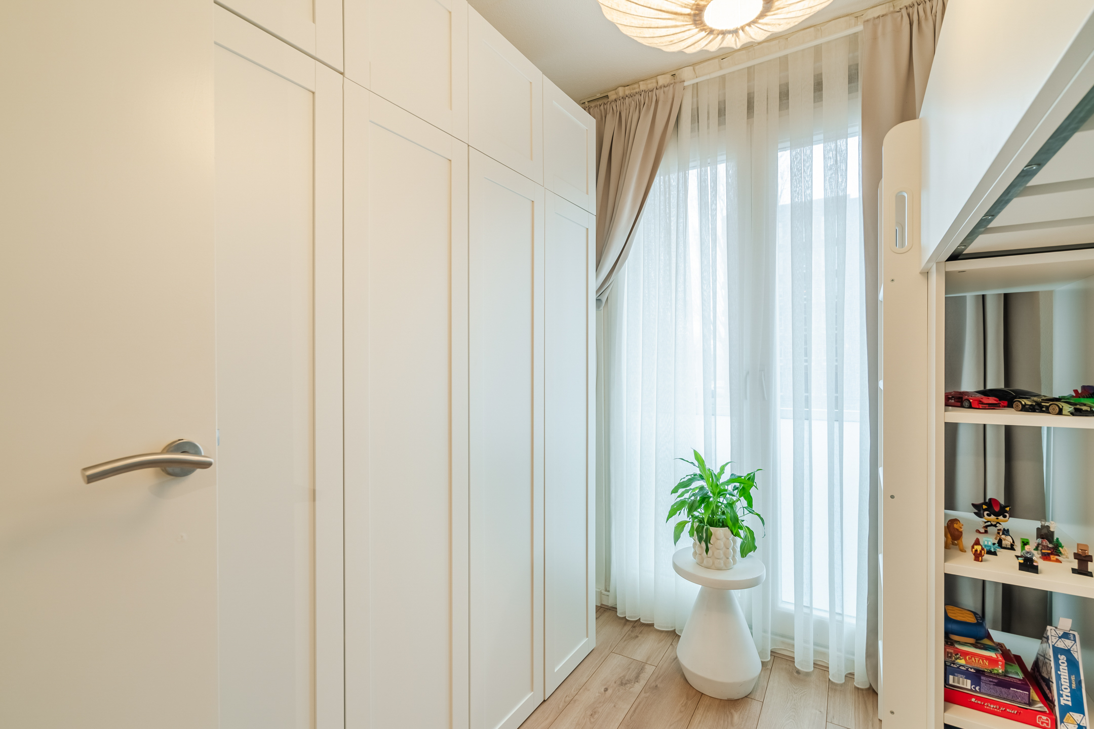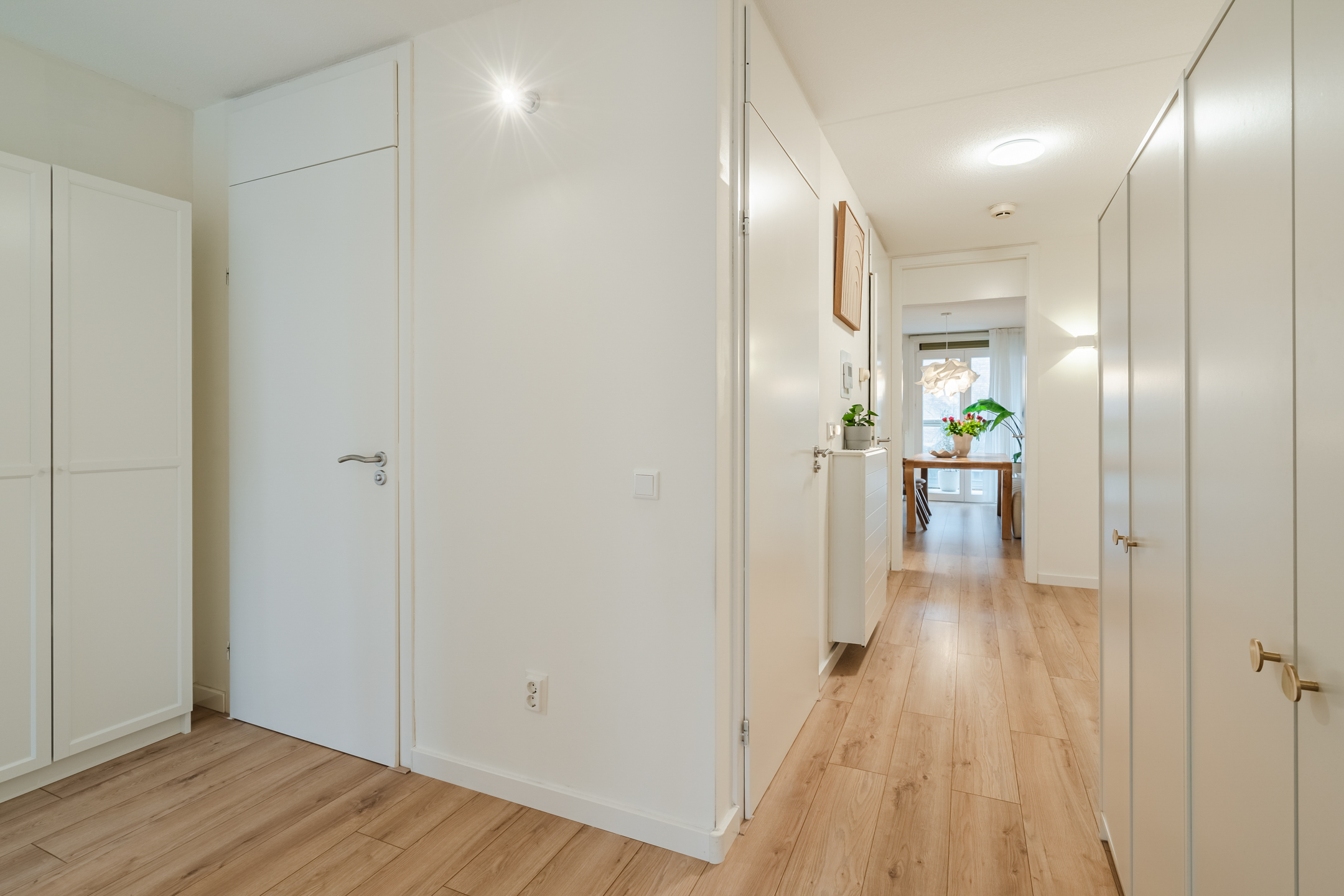 Het gehele appartement is afgewerkt met een sfeervolle laminaatvloer en strakke wandafwerking.