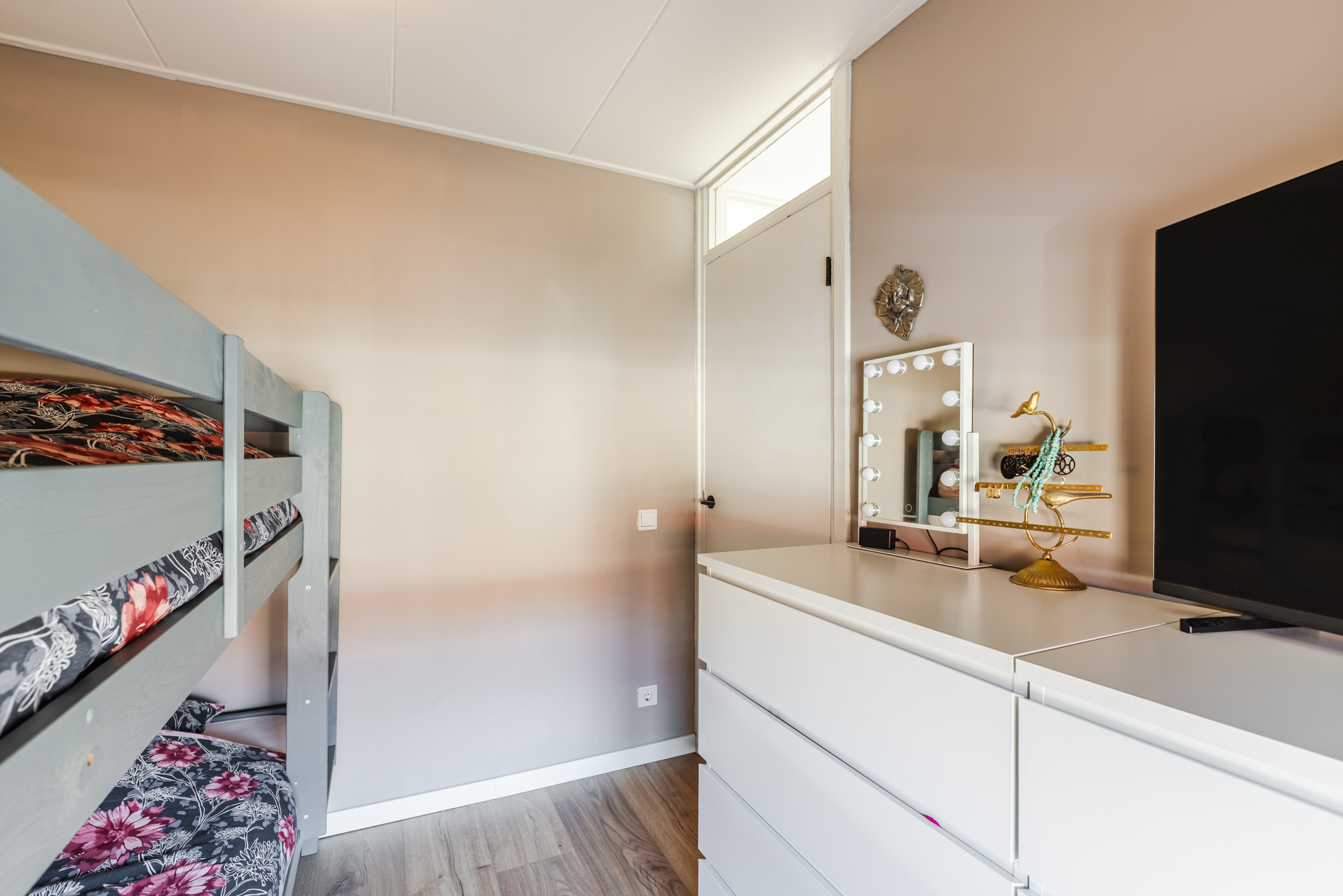 Overloop, toegang tot de badkamer en twee multifunctionele (slaap)kamers.