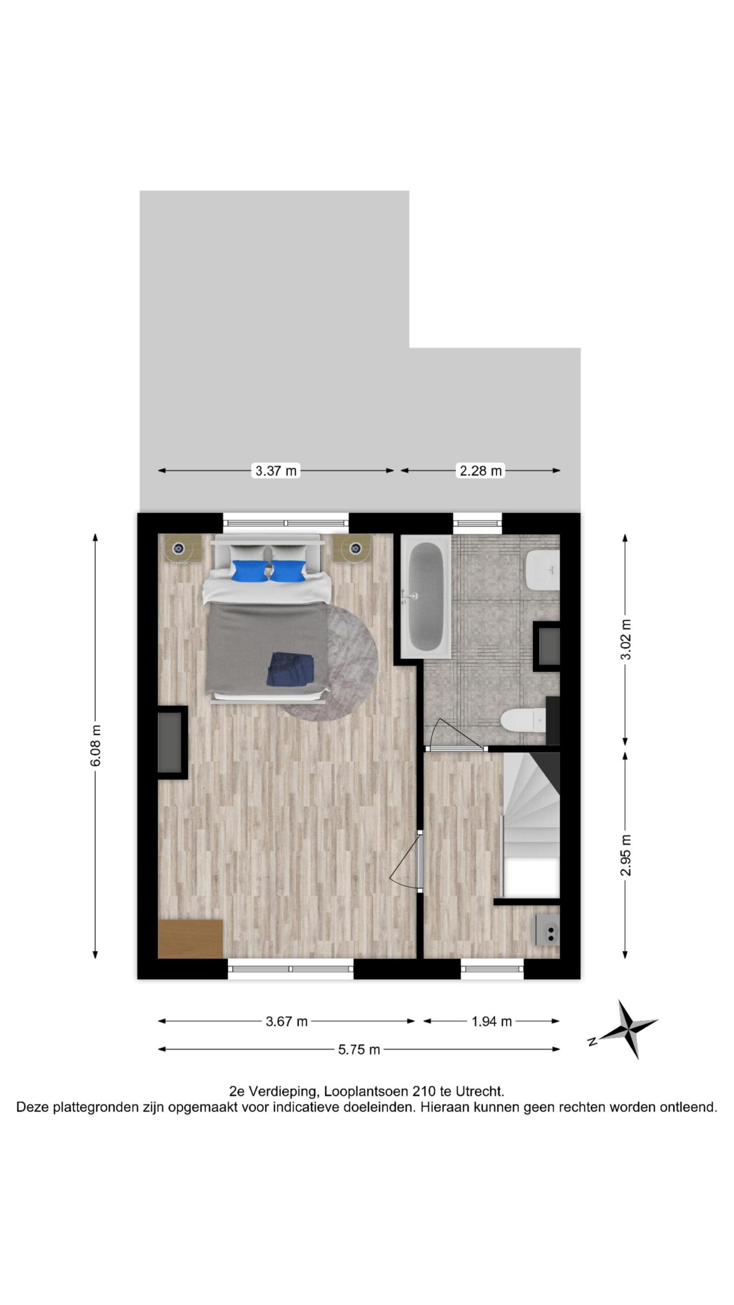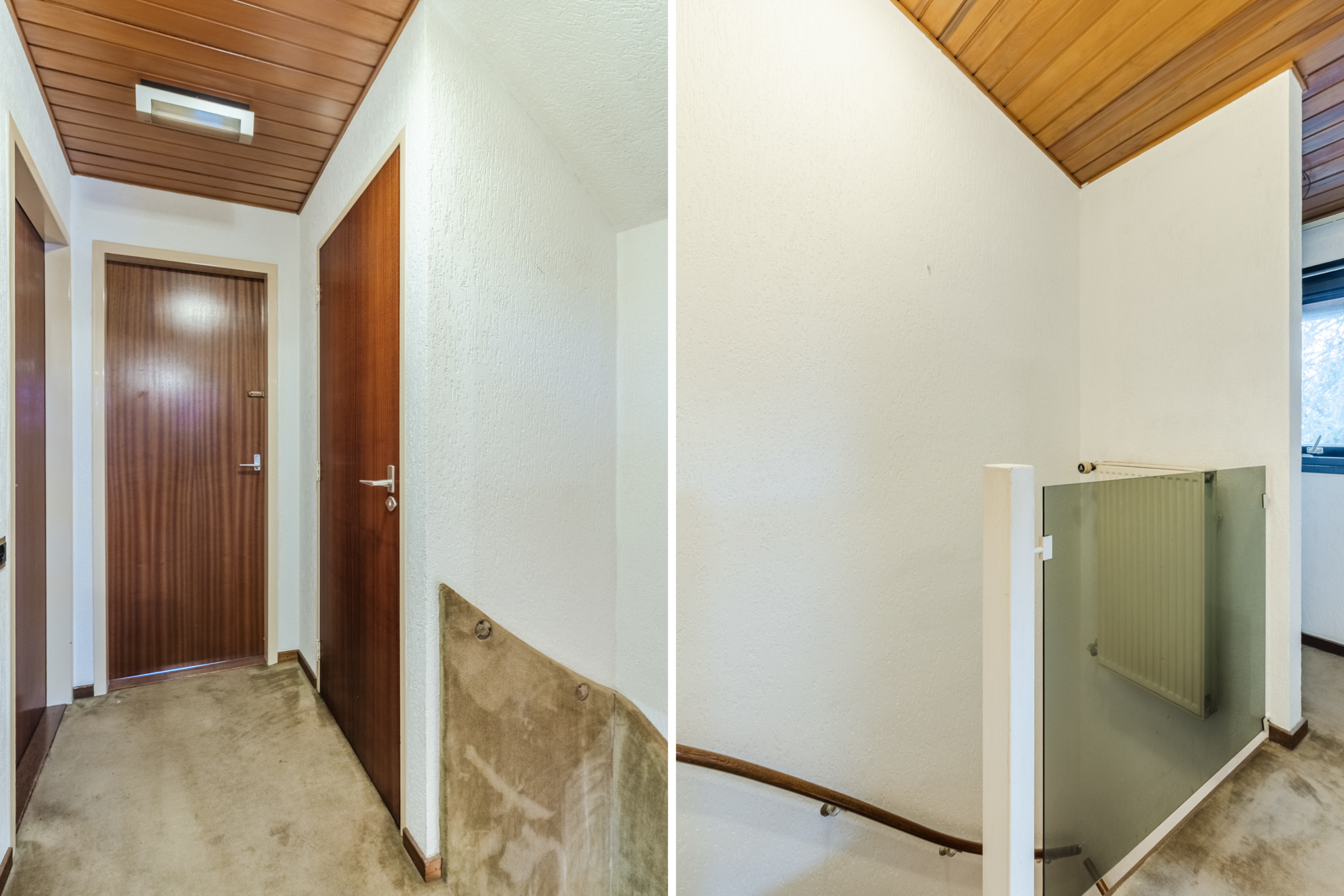 Via een vaste trap bereik je de overloop, met de opstelplaats van de CV-ketel en toegang tot de vierde slaapkamer en de tweede badkamer.