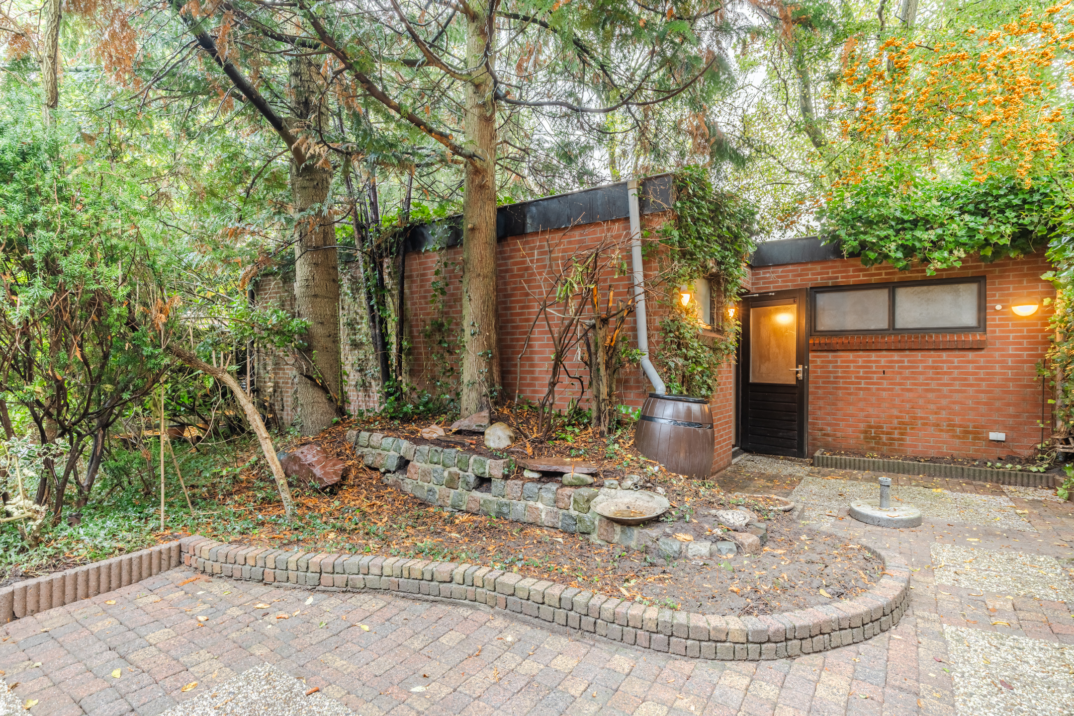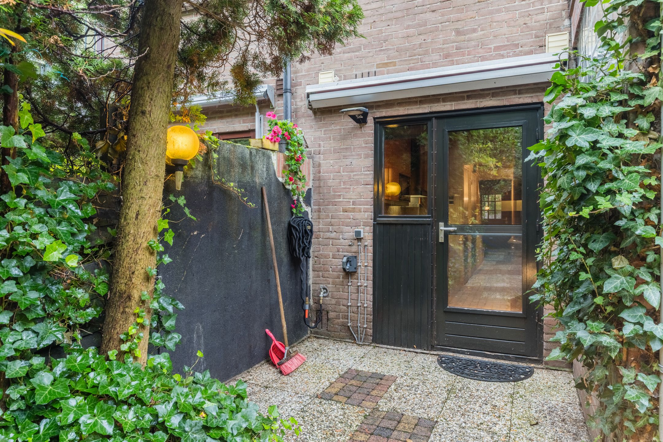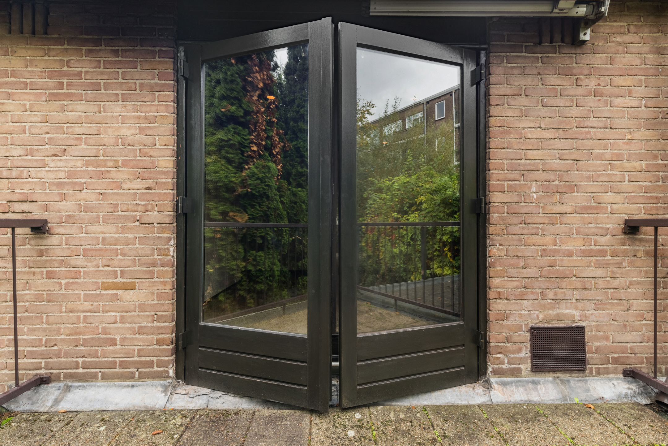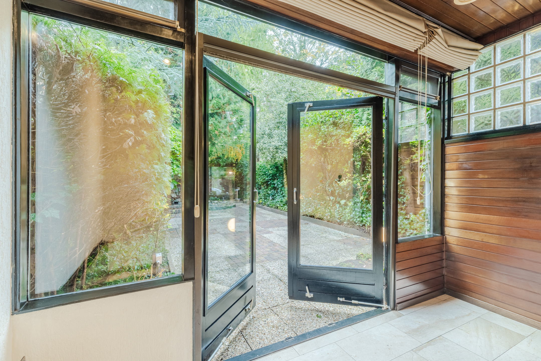 Via de openslaande deuren bereik je de zonnige achtertuin.