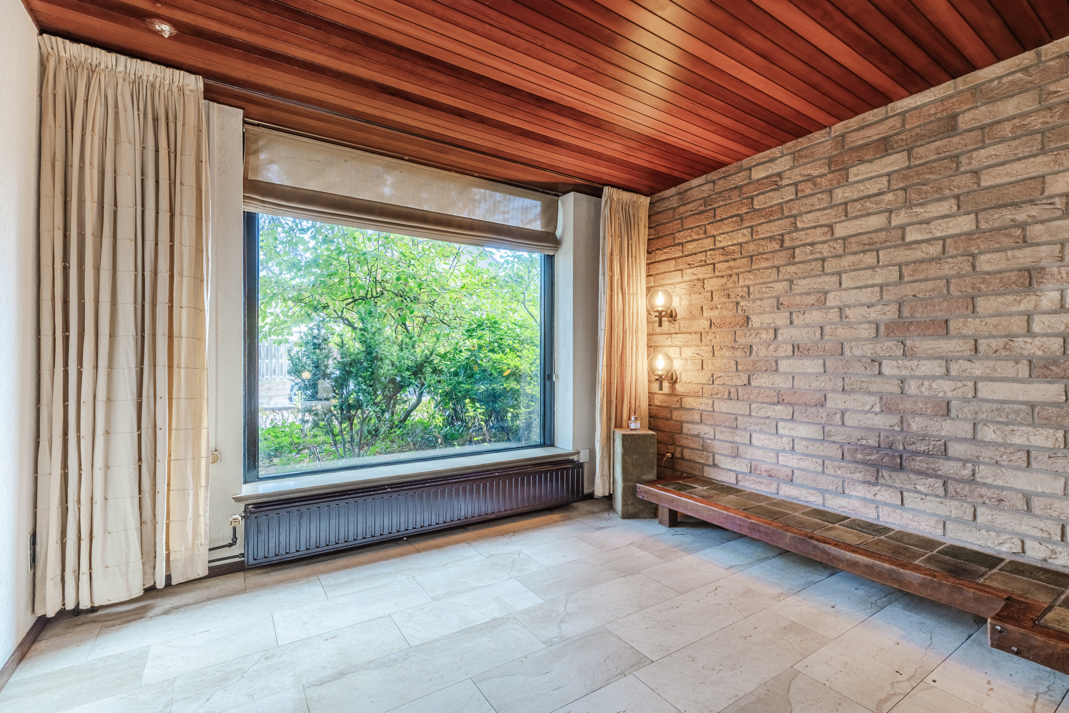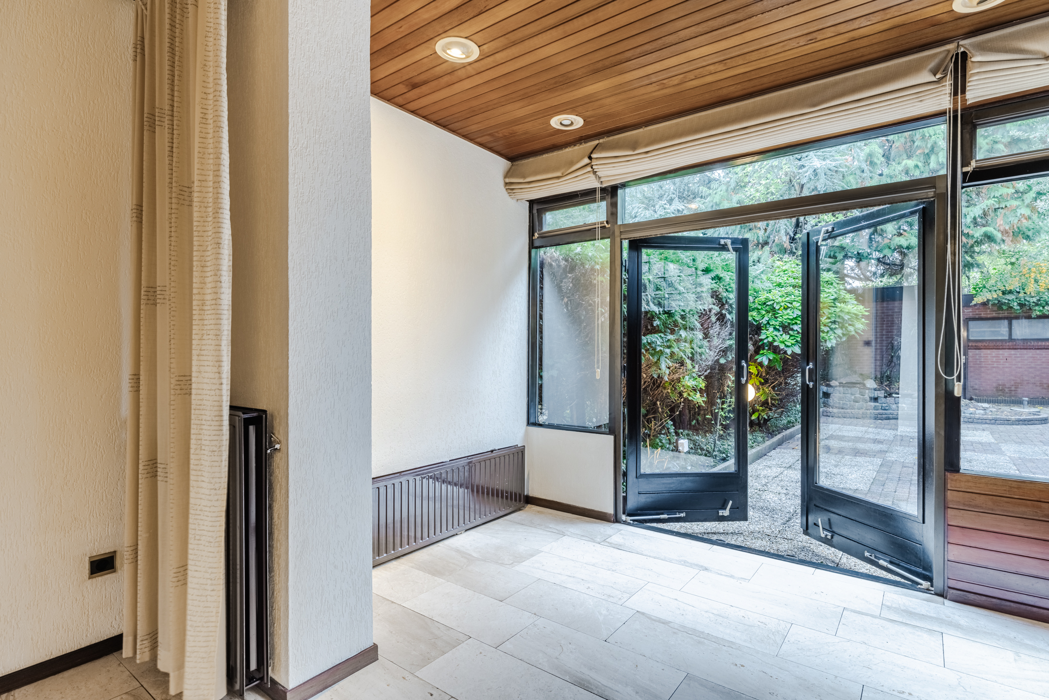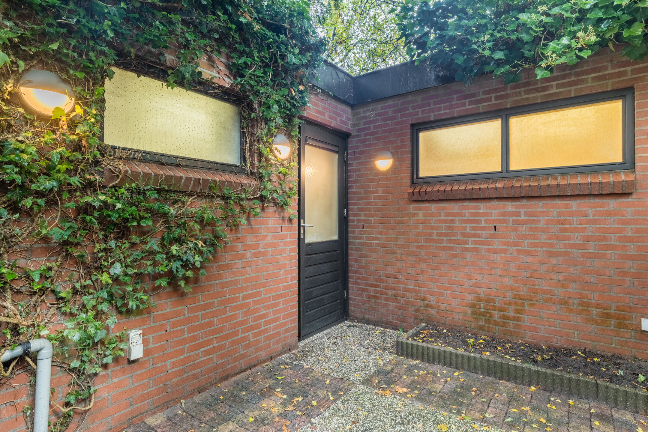 Via de openslaande deuren bereik je de zonnige achtertuin.