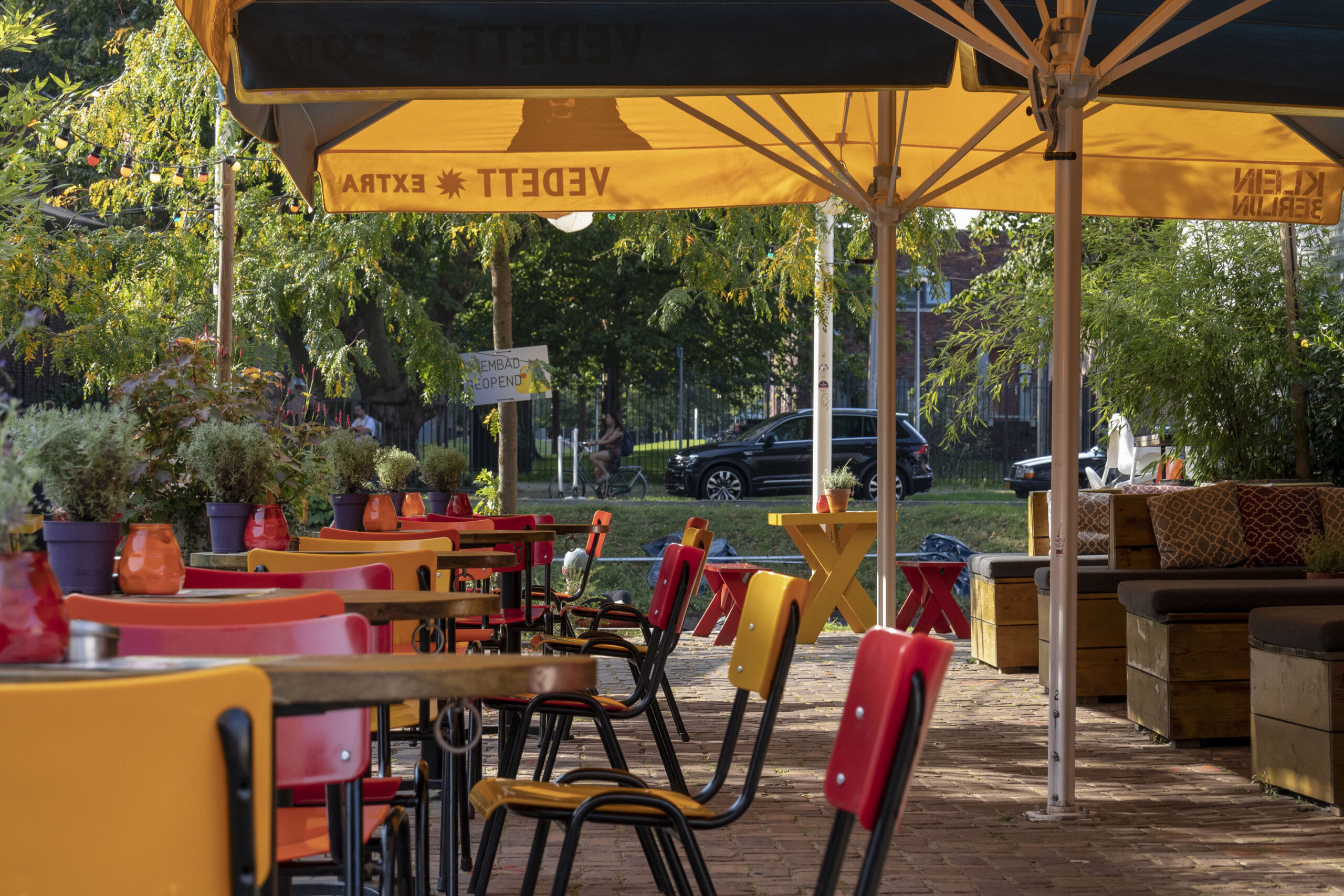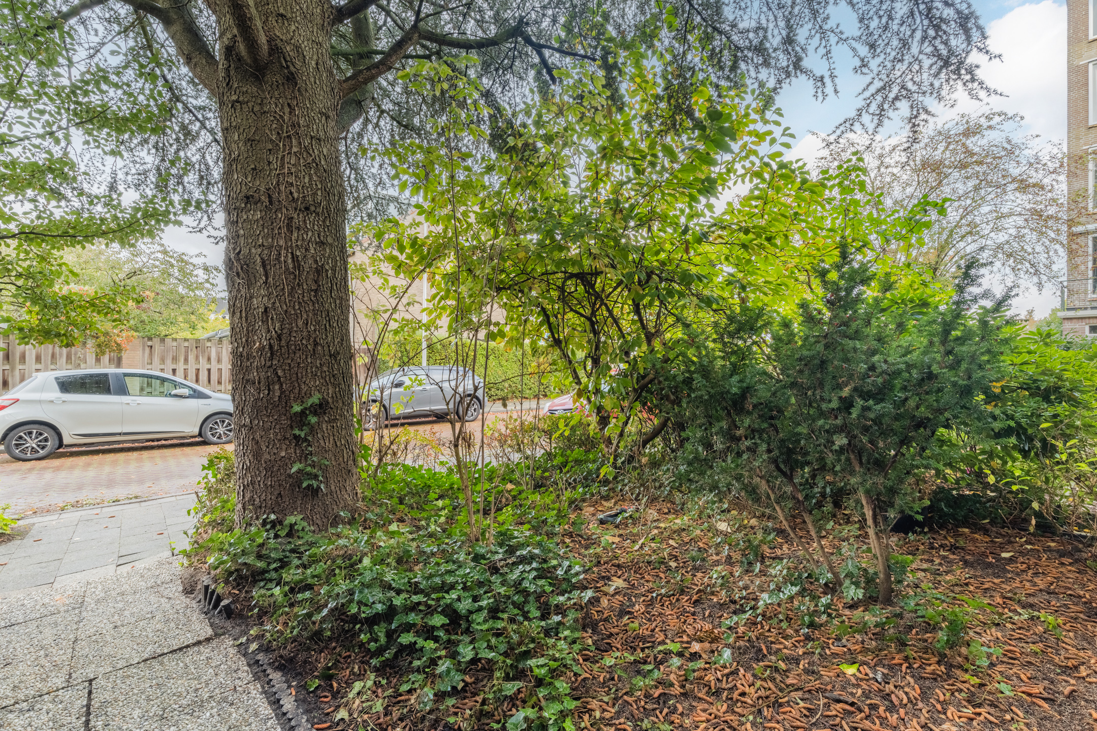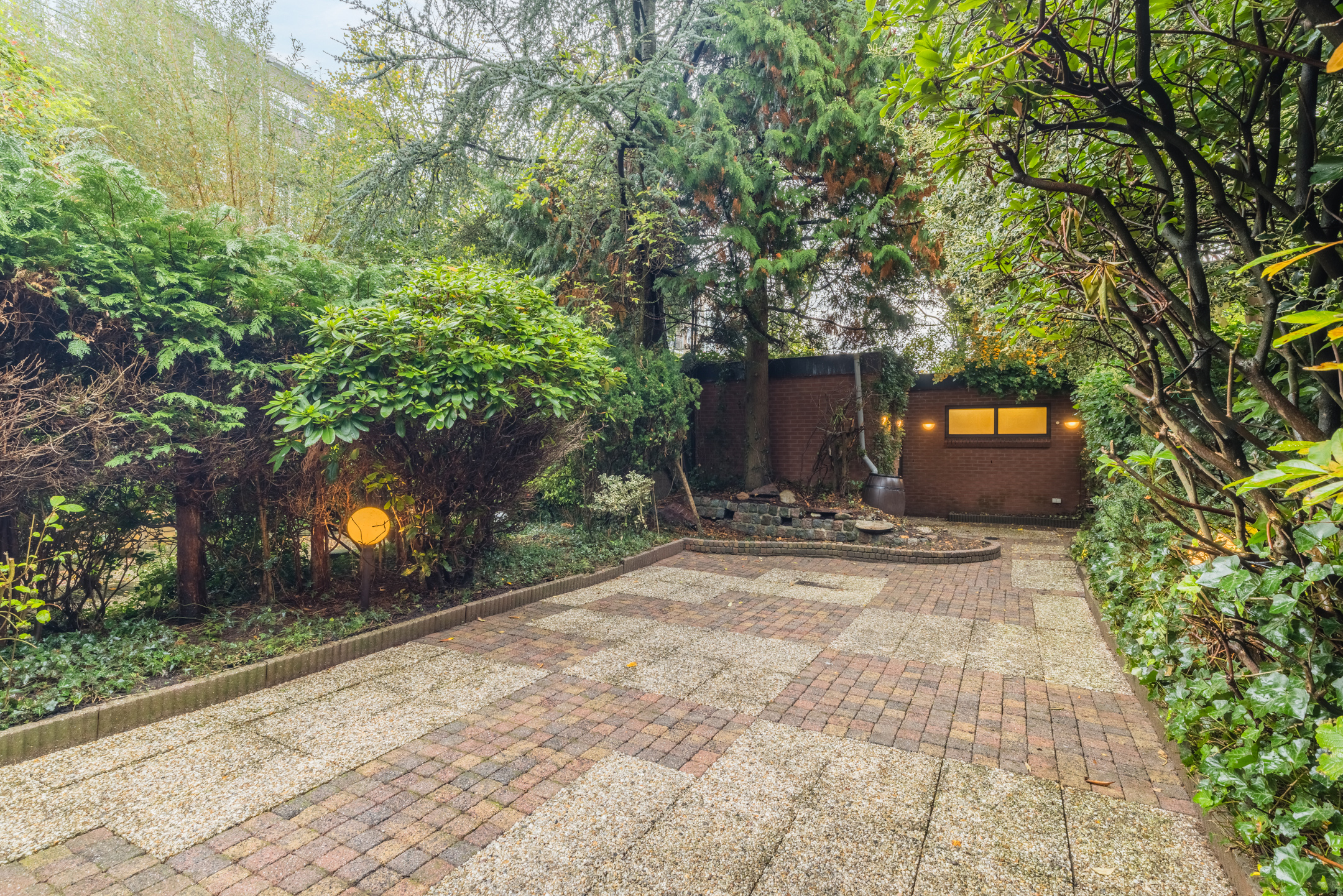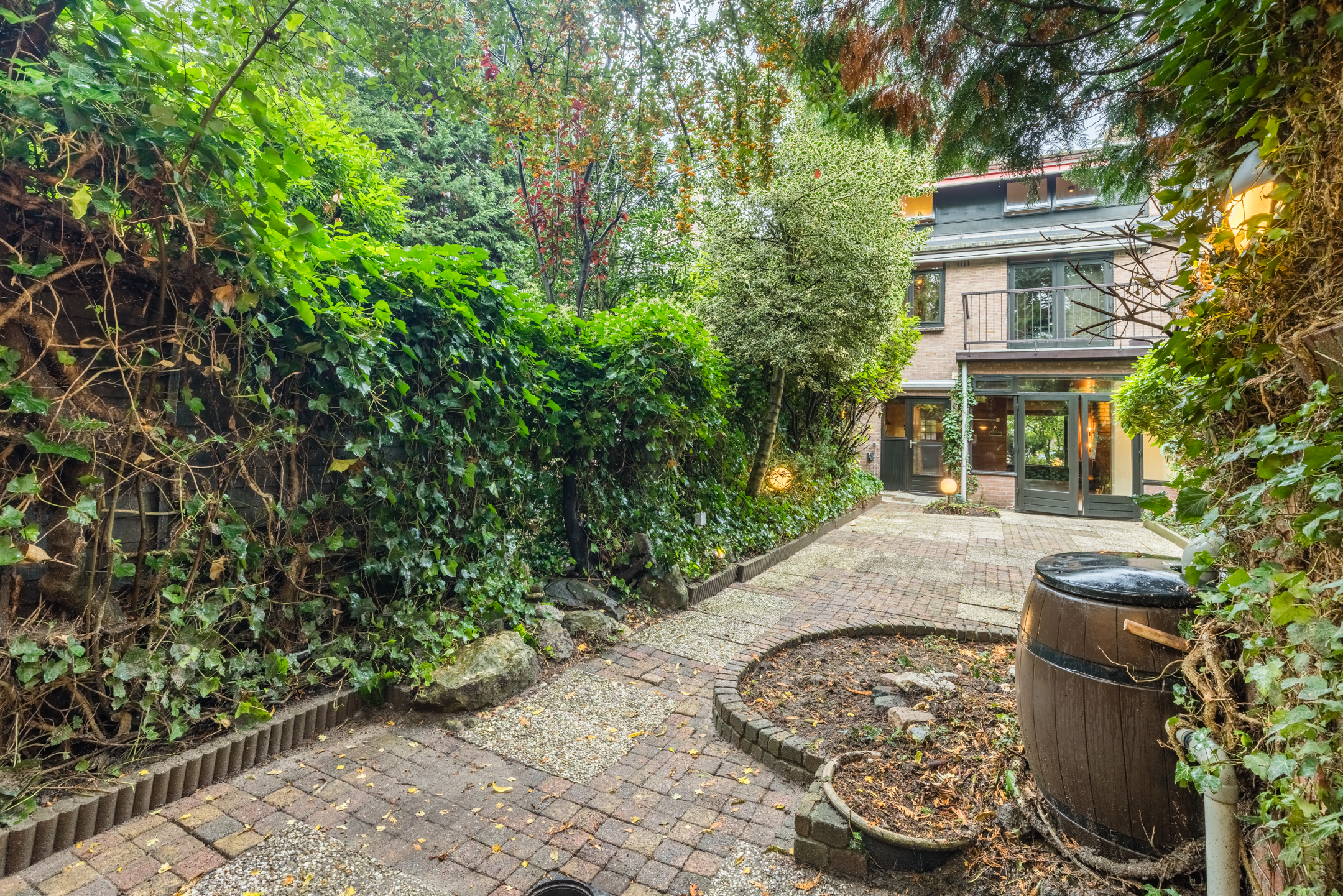 Via de openslaande deuren bereik je de zonnige achtertuin.