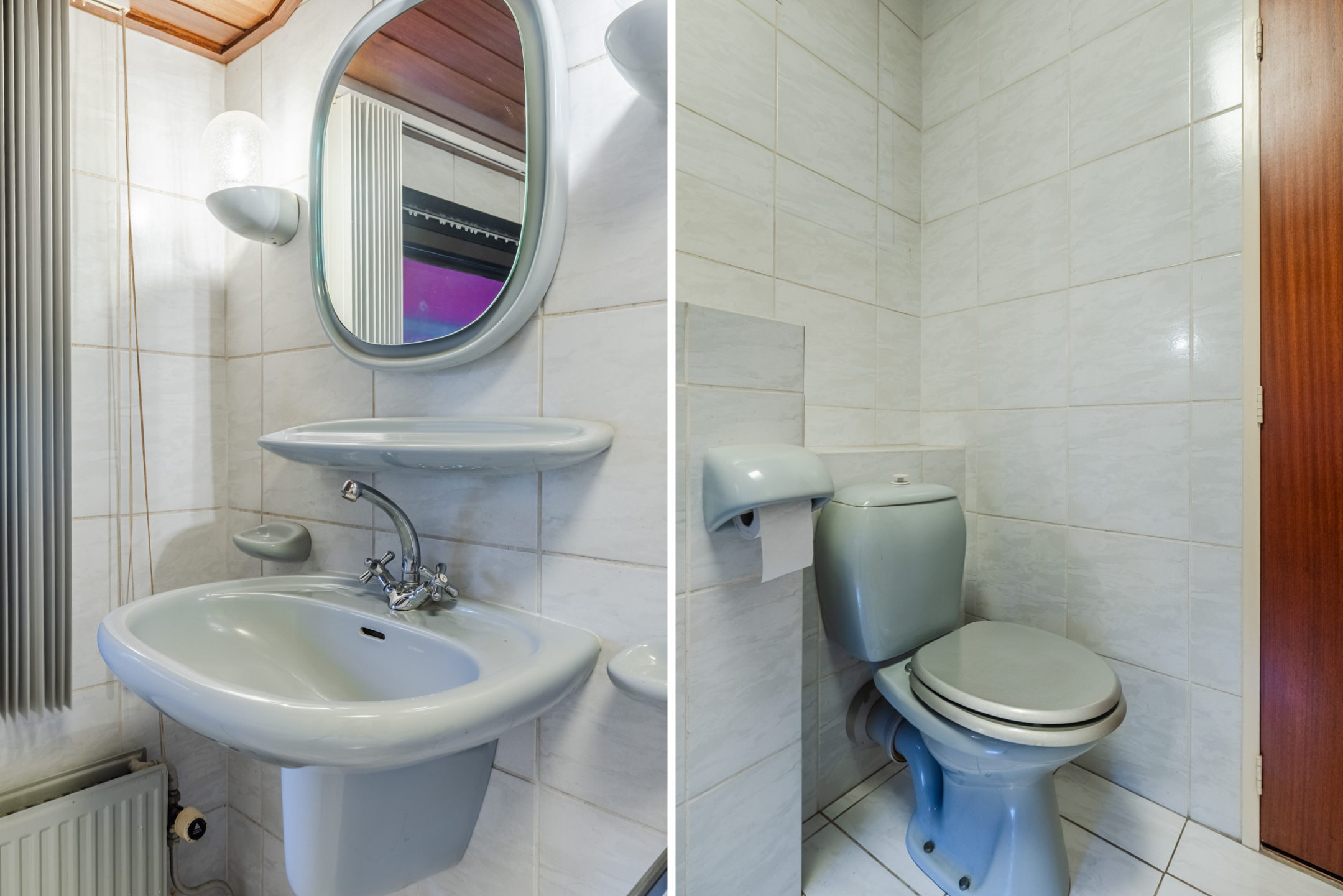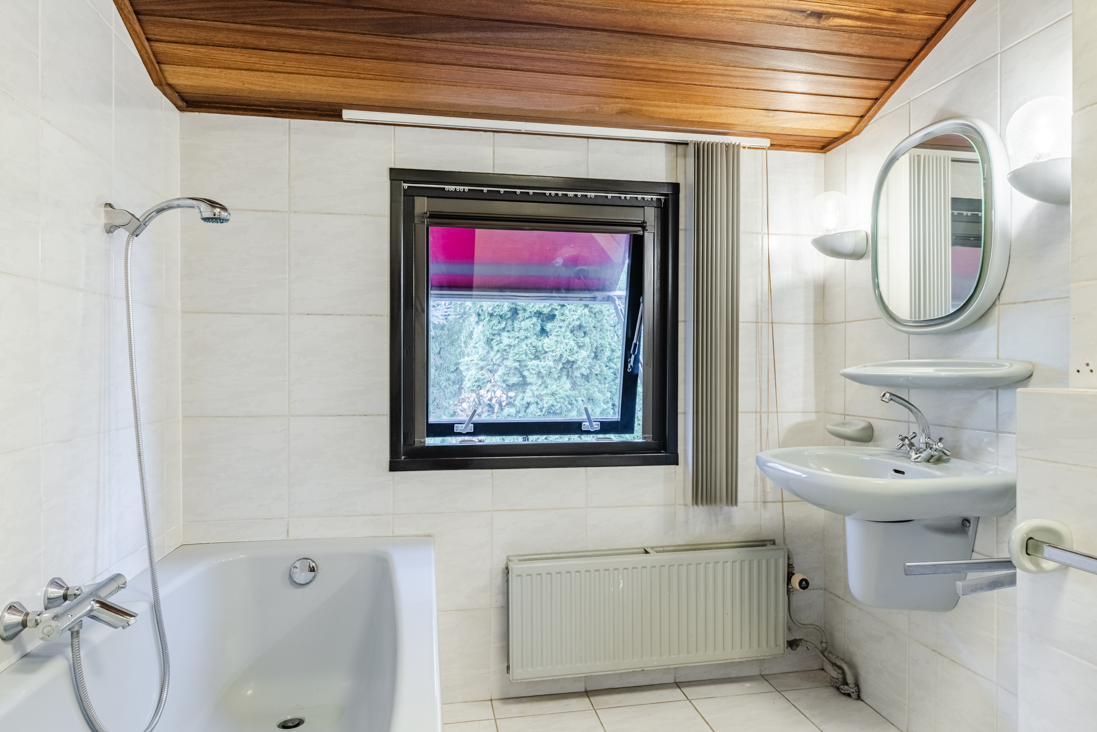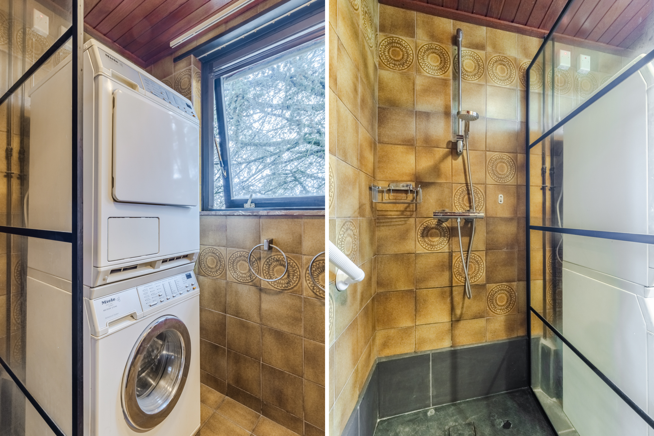 De badkamer is voorzien van een douche (geplaatst in 2023), wastafel en aansluitingen voor de wasmachine en droger. De ruimte is netjes onderhouden, uitgevoerd in een klassieke tegelafwerking en beschikt over een raam voor daglicht en natuurlijke ventilatie.