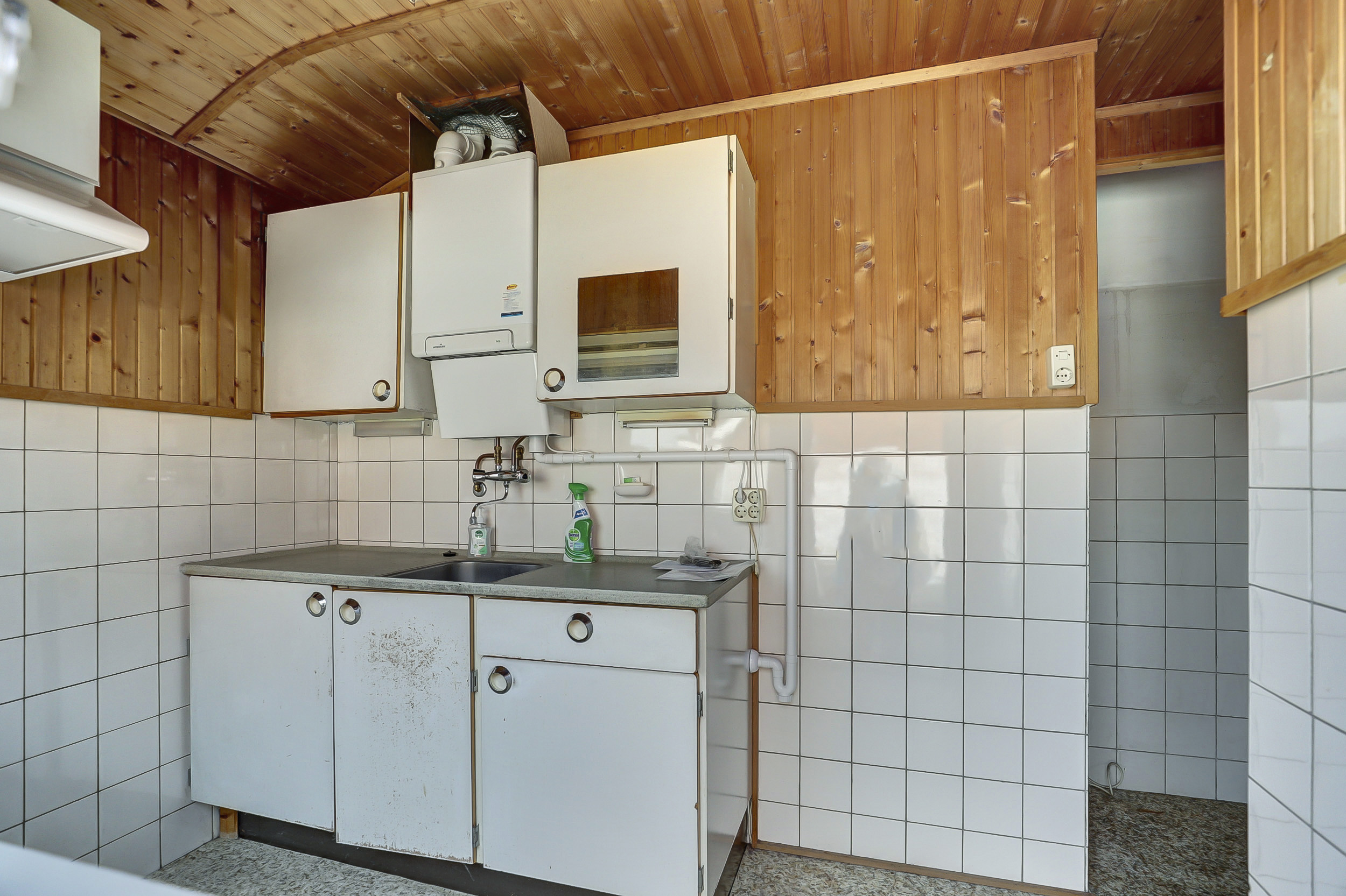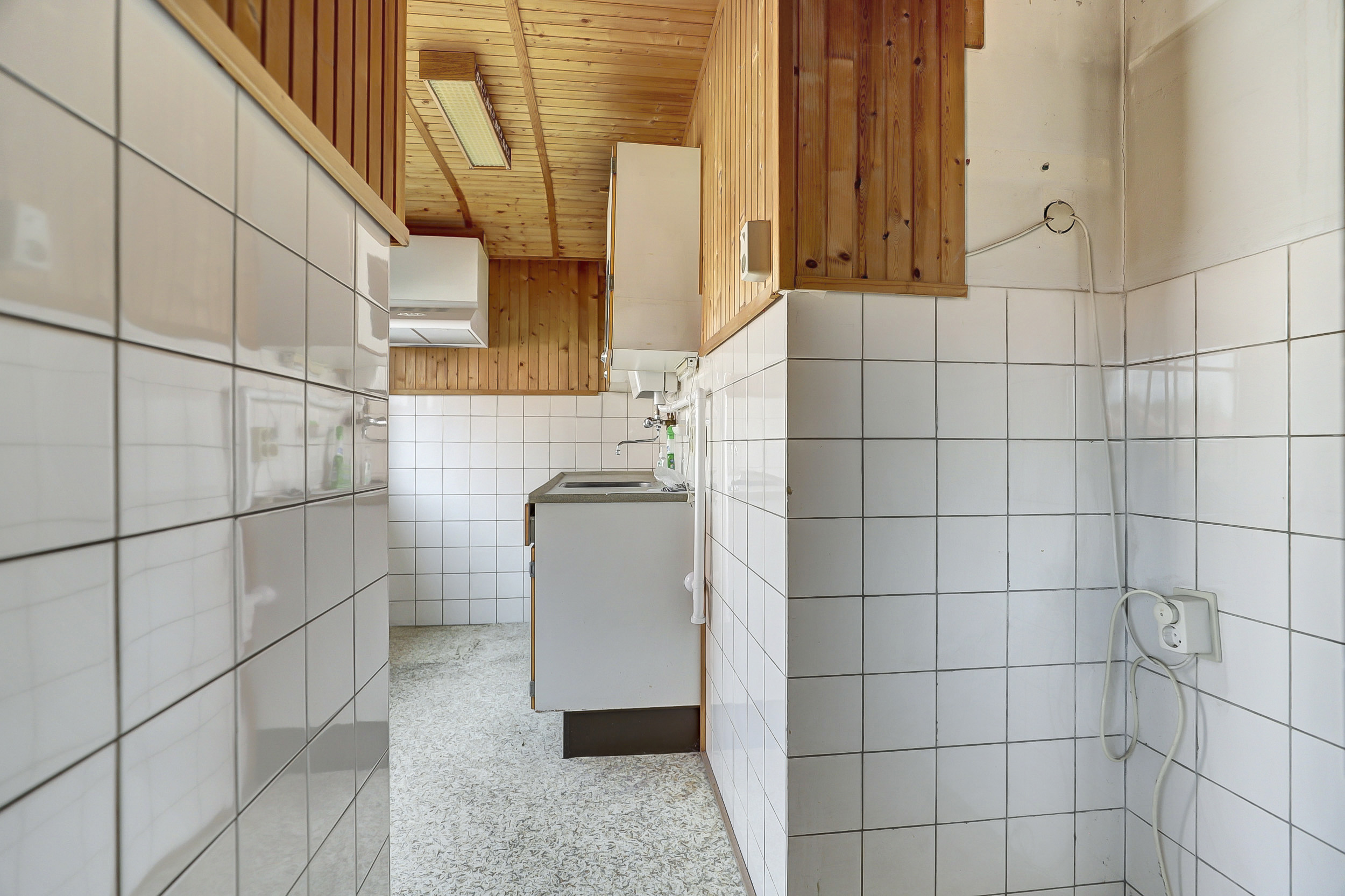 De keuken (ca. 7 m²) bevindt zich aan de achterzijde van de woning en is voorzien van een eenvoudig keukenblok. Vanuit de keuken is er via openslaande deuren toegang tot het royale balkon.
