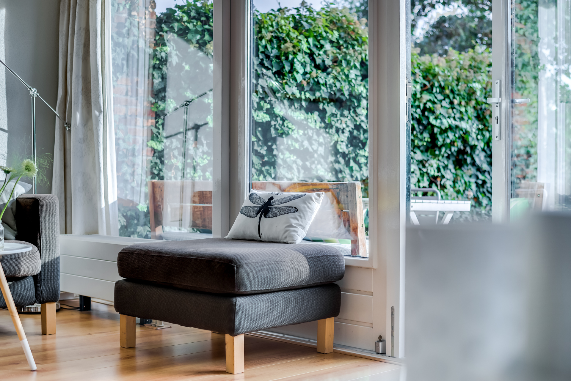 – Schitterend uitzicht vanuit de woonkamer en tuin over het water en het groen;