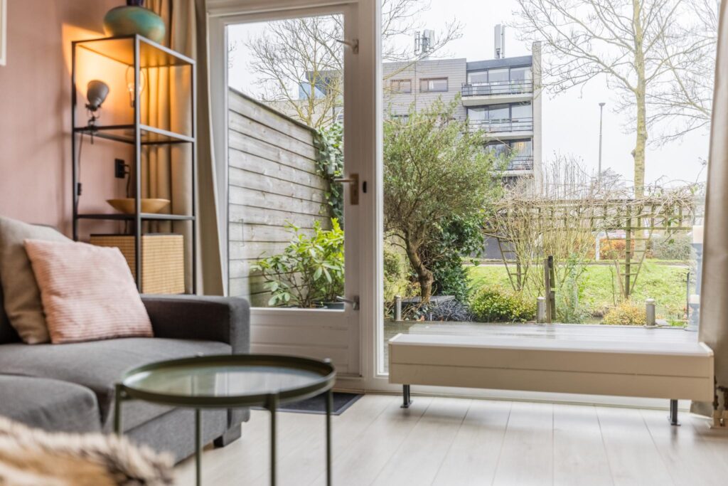 Aan de achterzijde bevindt zich de woningbrede en tuingerichte woonkamer. De woonkamer is heerlijk licht en tuingericht en laat zich eenvoudig indelen in een fijne zit- en eethoek. Door de grote raampartijen aan de voor- en achterzijde van de woning, komt er een flinke hoeveelheid daglicht de woning binnen. Via de loopdeur bereik je de sfeervolle achtertuin.