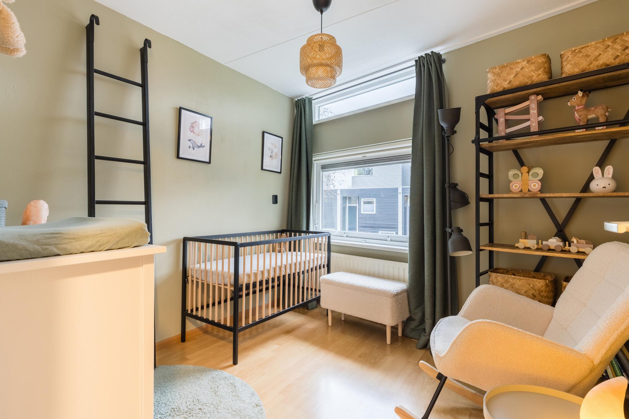 Deze verdieping is voorzien van een nette laminaatvloer en gladde wandafwerking.