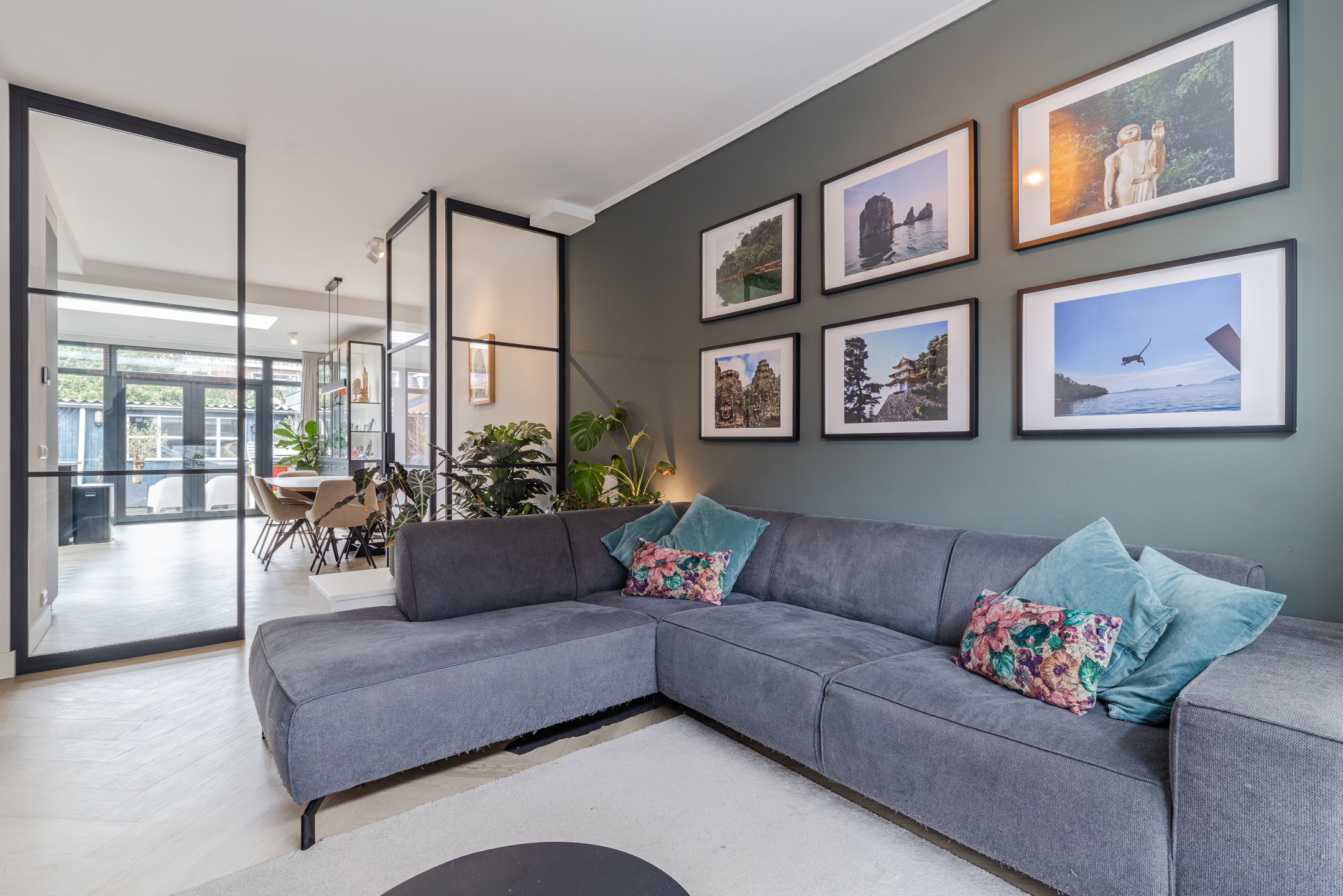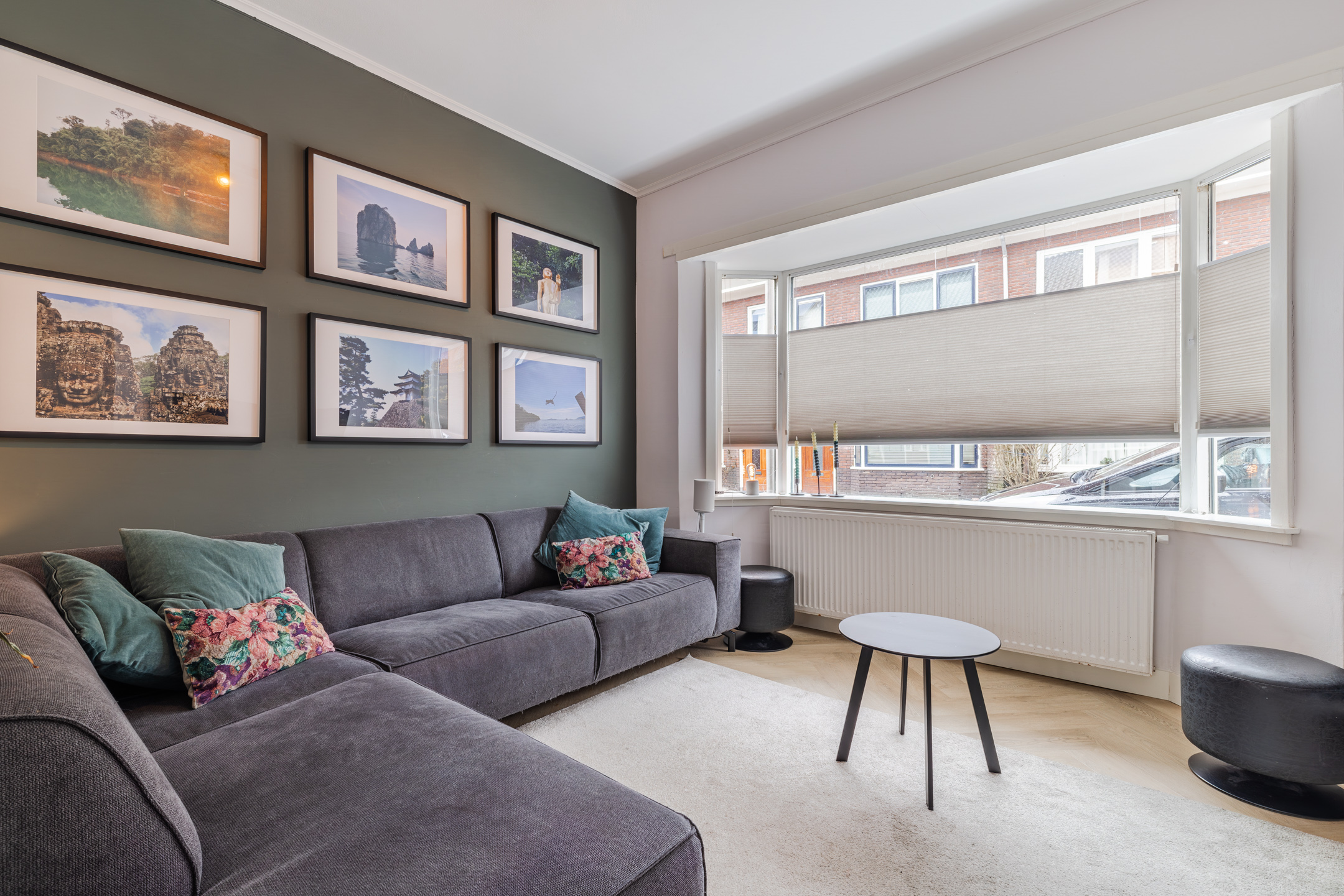 Het eerste dat opvalt wanneer je de woonkamer binnenkomt, is de zee aan ruimte én licht die de begane grond te bieden heeft. De sfeervolle woonkamer bevindt zich aan de voorzijde van de woning. Dankzij de mooie erker valt er aan deze zijde een prettige hoeveelheid daglicht naar binnen. De glazen taatsdeur zorgt voor een stijlvolle afscheiding tussen het zitgedeelte en de woonkeuken, terwijl de open verbinding het ruimtelijke karakter behoudt.