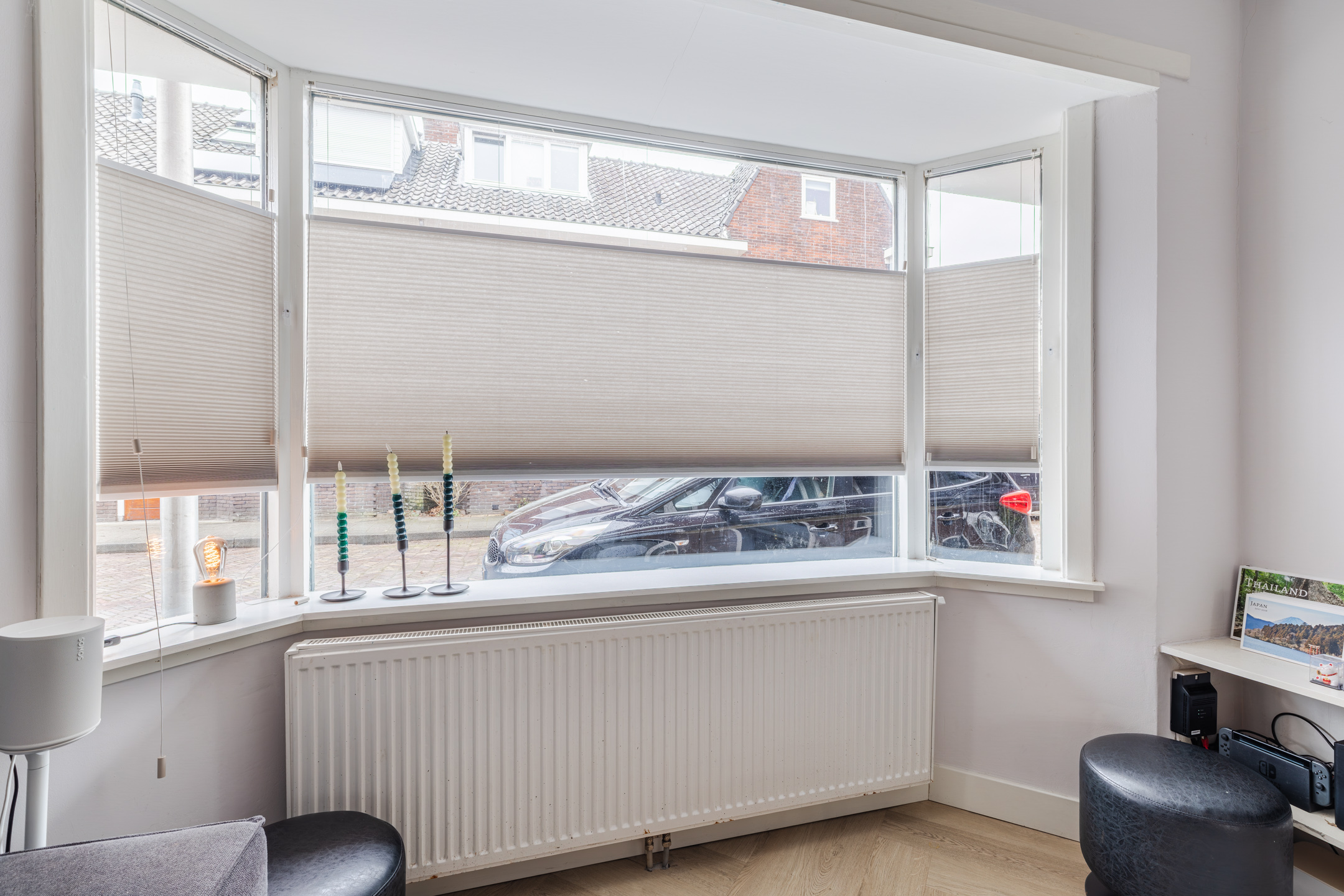 Aan de voorzijde bevinden zich twee volwaardige slaapkamers, die naar wens in te richten zijn als slaapkamer, werk-/ studeerkamer of hobbyruimte. Aan de achterzijde bevindt zich de derde slaapkamer, voorzien van een inbouwkast, kunststof kozijnen en airconditioning. Ideaal voor de warme zomermaanden!