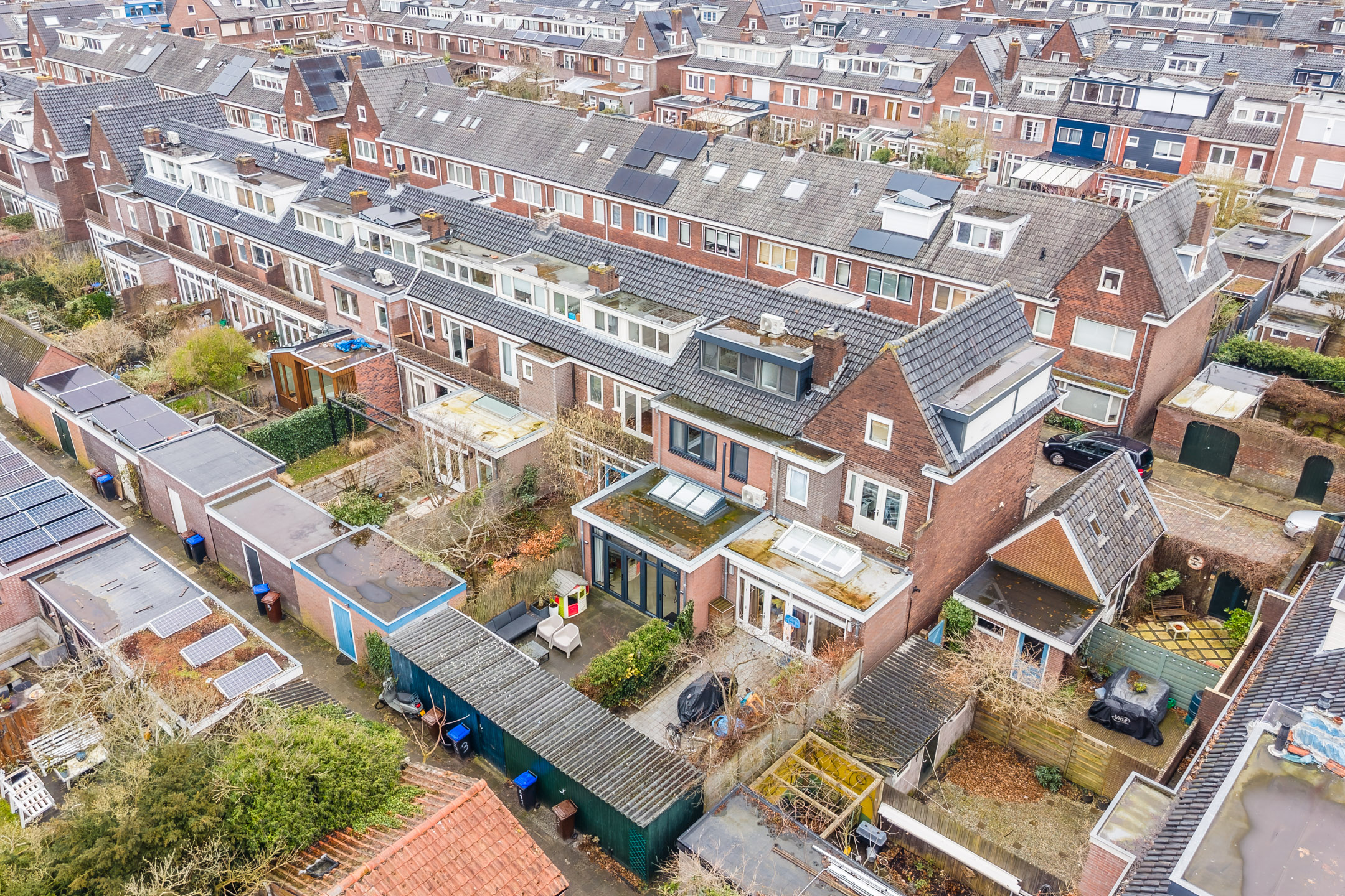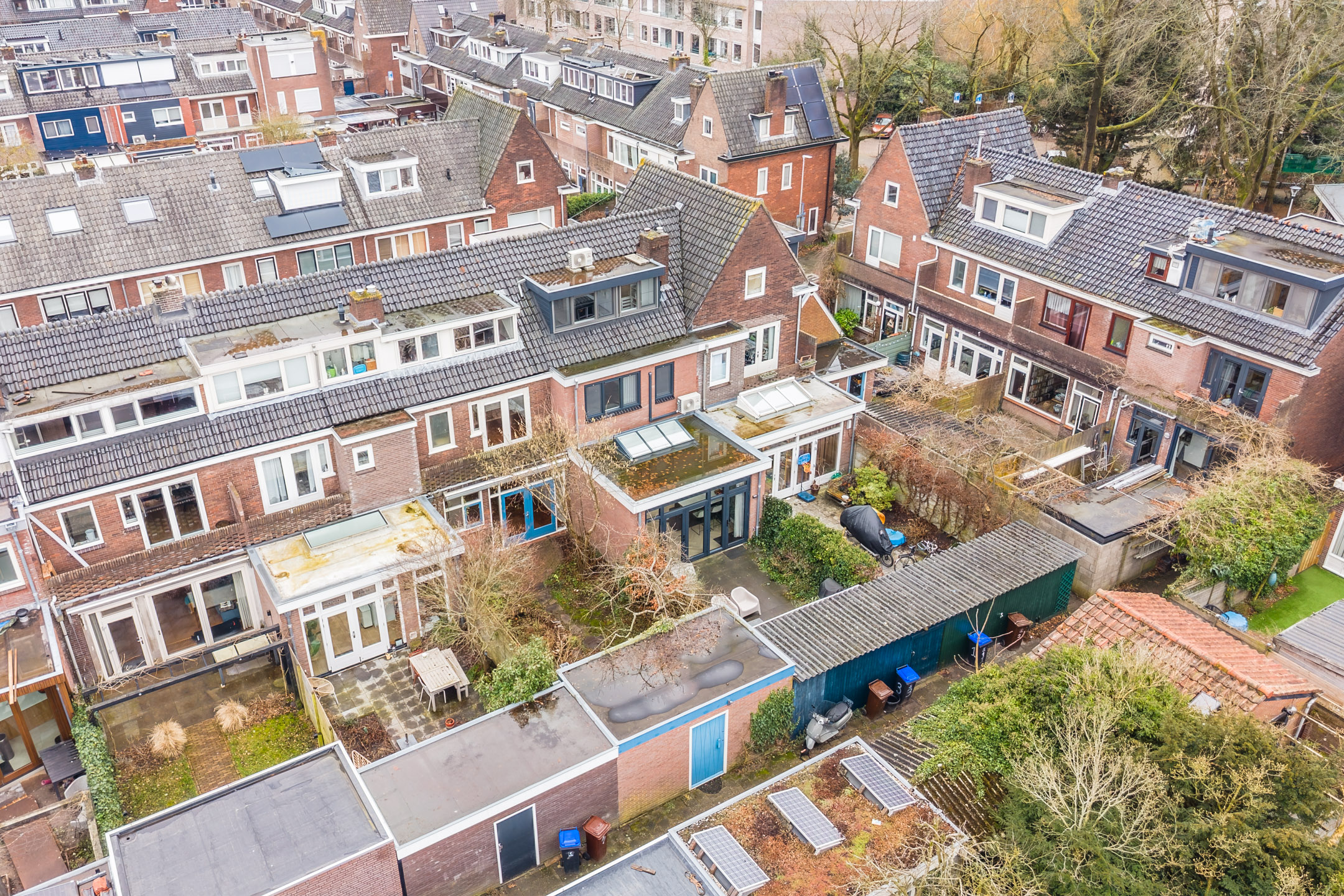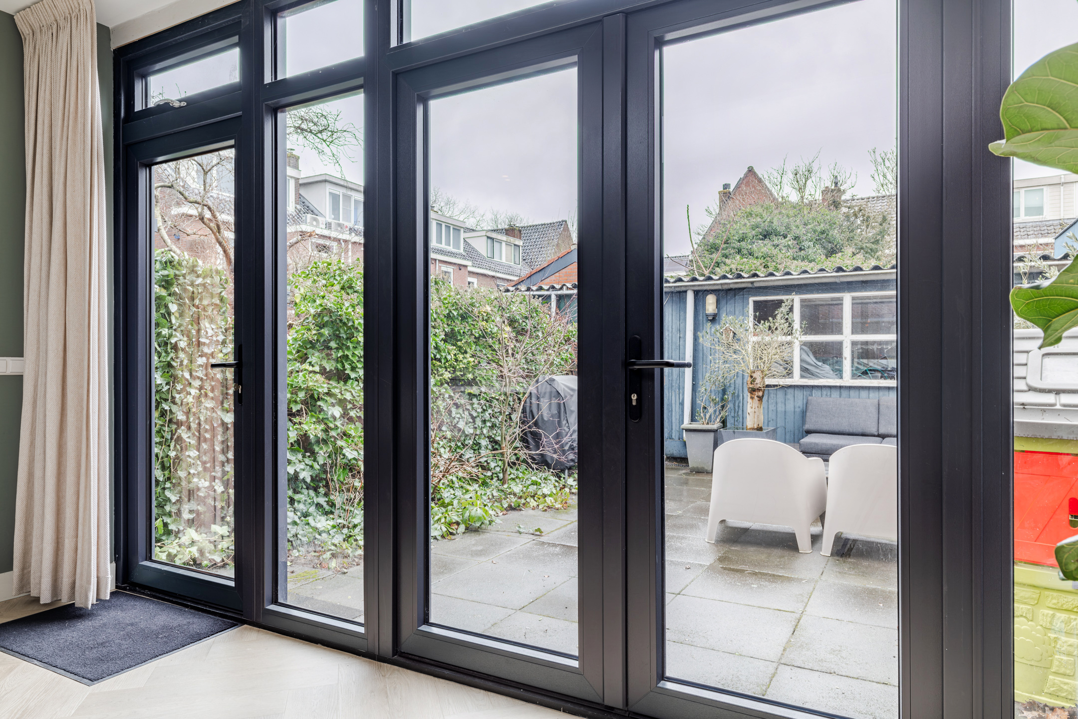 De achtertuin is gelegen op het noordwesten en is bereikbaar via openslaande deuren en een loopdeur. De tuin is een aangename buitenruimte met ruimte voor zowel zon als schaduw. Met een vrijstaande houten berging achterin en een handige achterom is het geheel bovendien praktisch ingericht. Een fijne plek om te ontspannen of gezellig te tafelen.