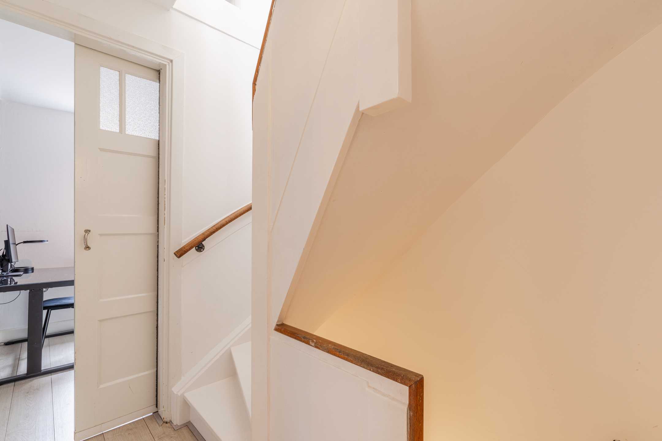 De gehele eerste verdieping is voorzien van een lichte houten laminaatvloer en deels gestucte wanden en plafonds.