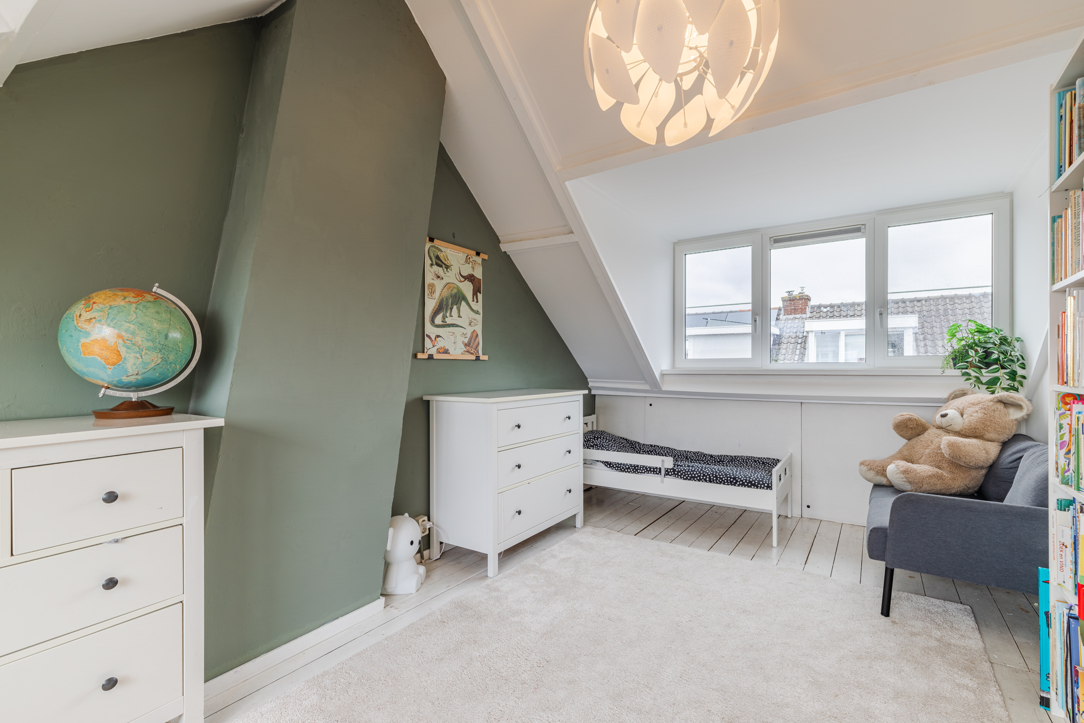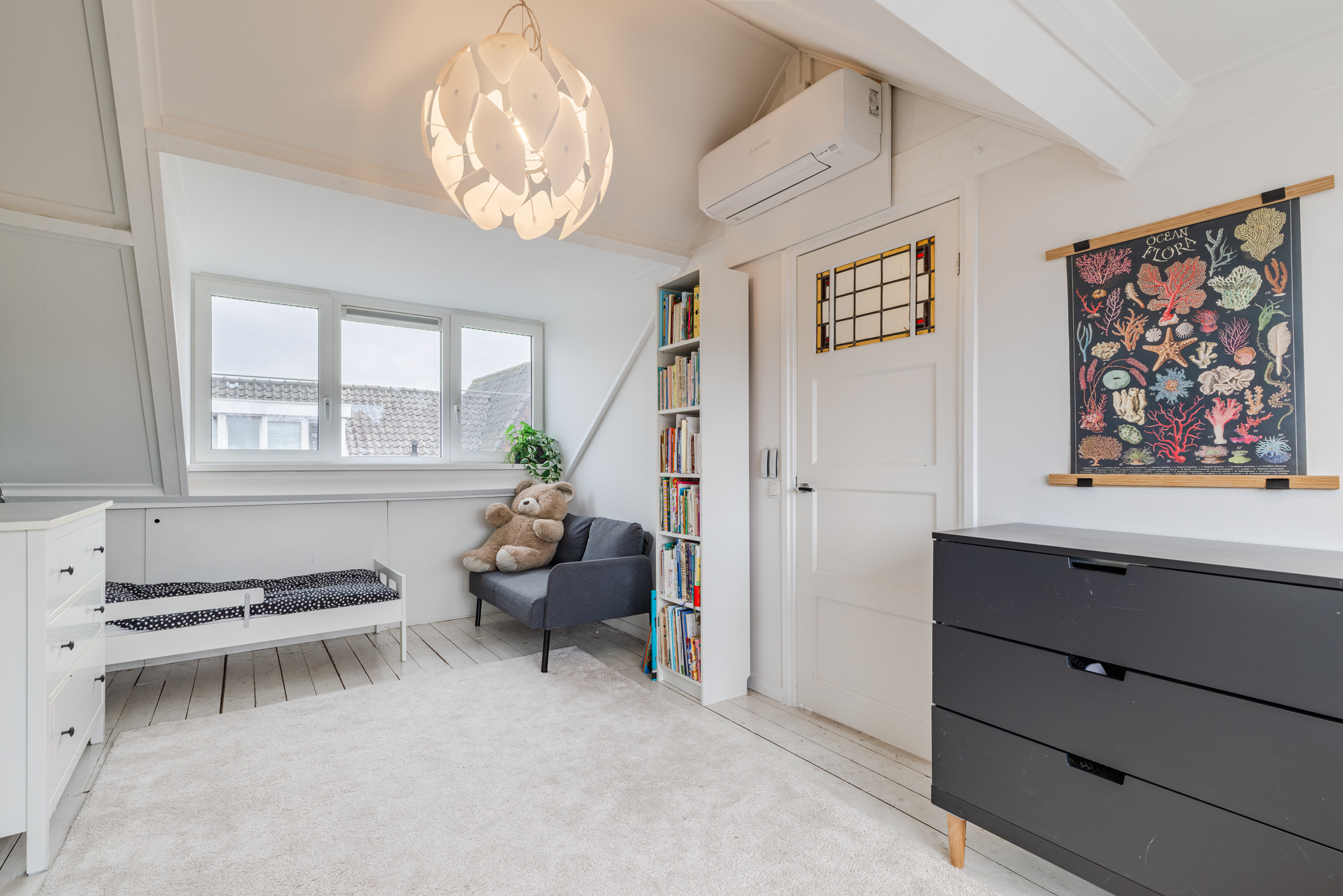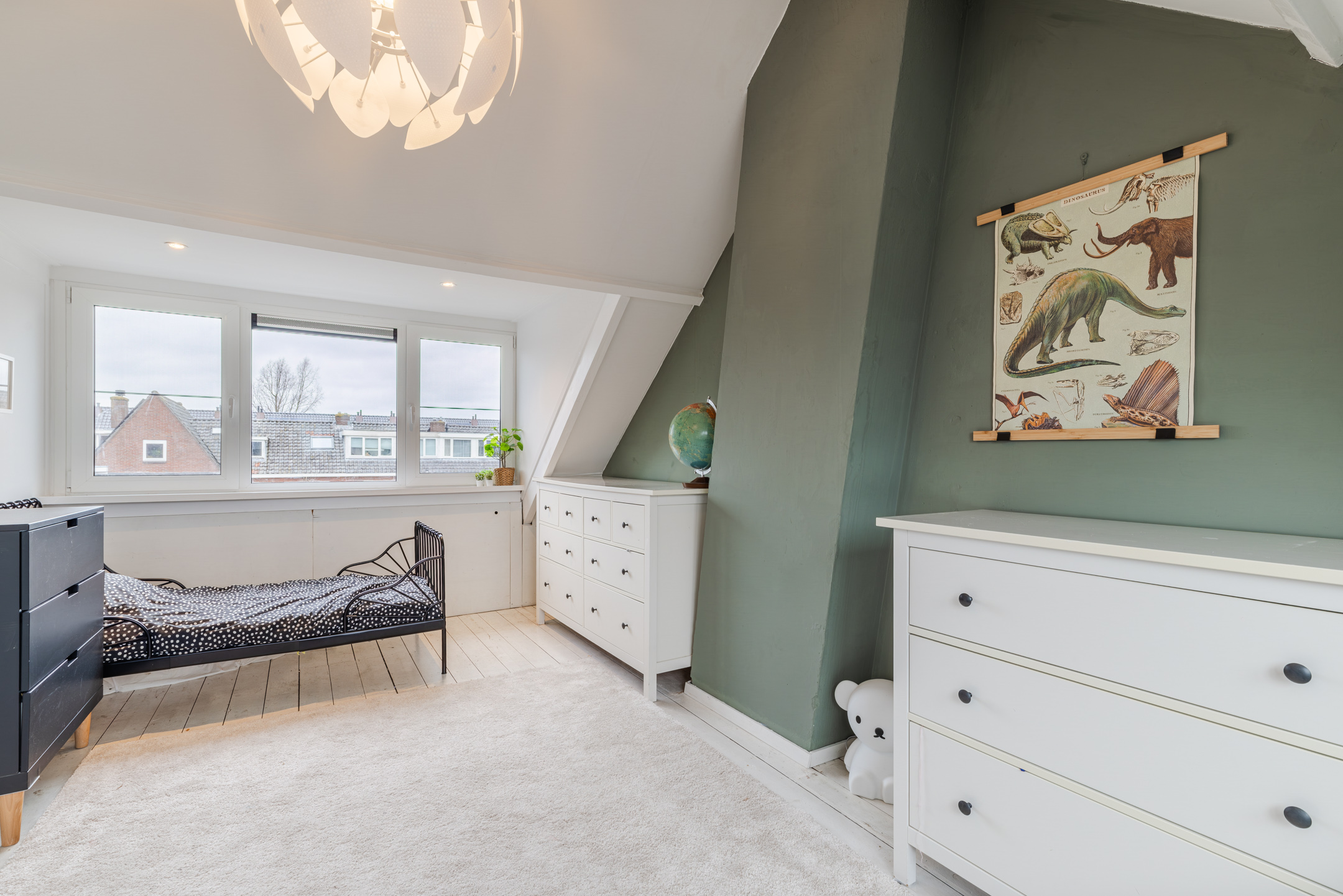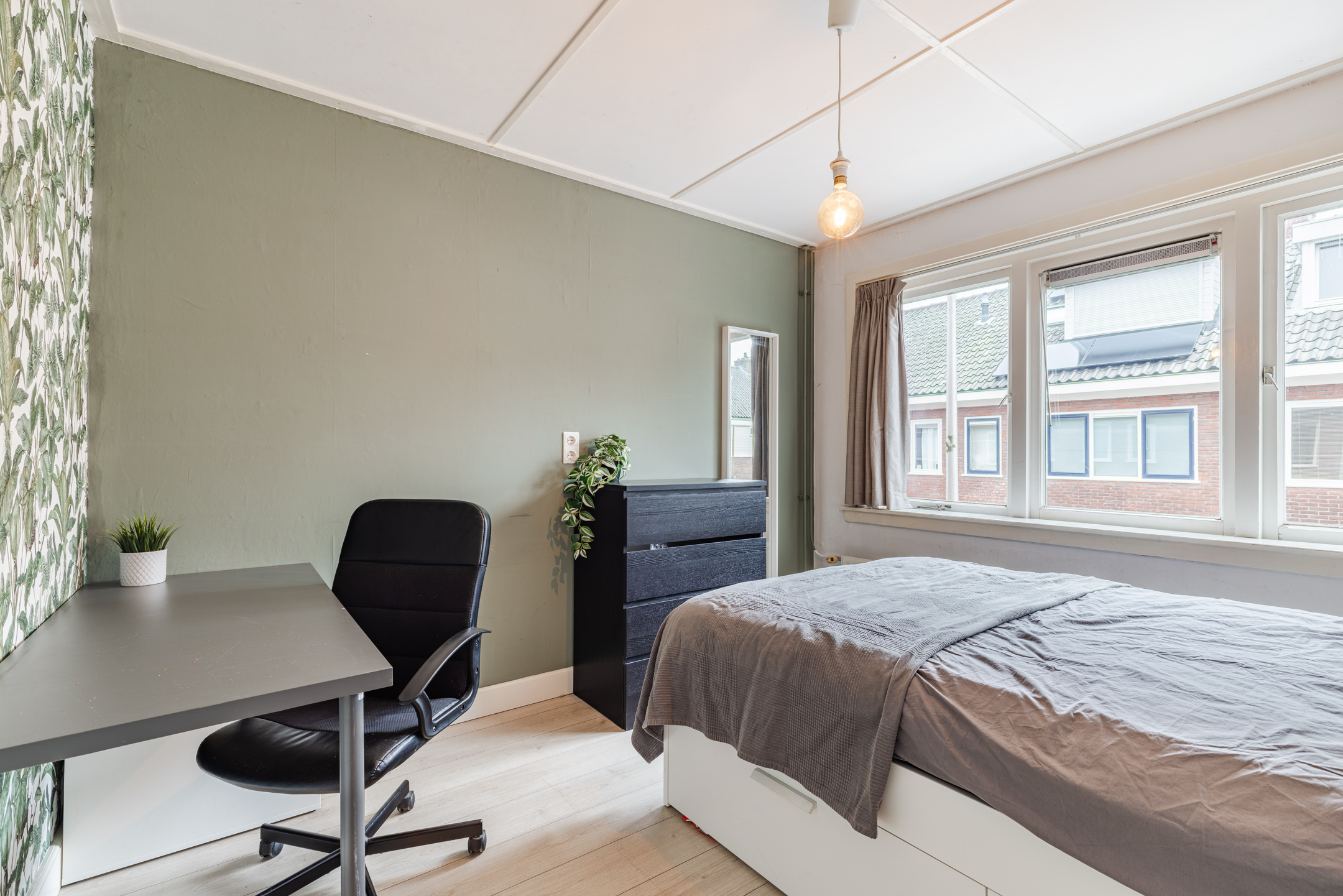 De slaapkamer is gelegen over de gehele diepte van de woning. Dankzij de twee dakkapellen, één aan de voorzijde (geplaatst medio 2024) en één aan de achterzijde van de woning, ontstaat hier een prettige en lichte ruimte. Beide dakkapellen zijn voorzien van kunststof kozijnen en elektrische rolluiken.