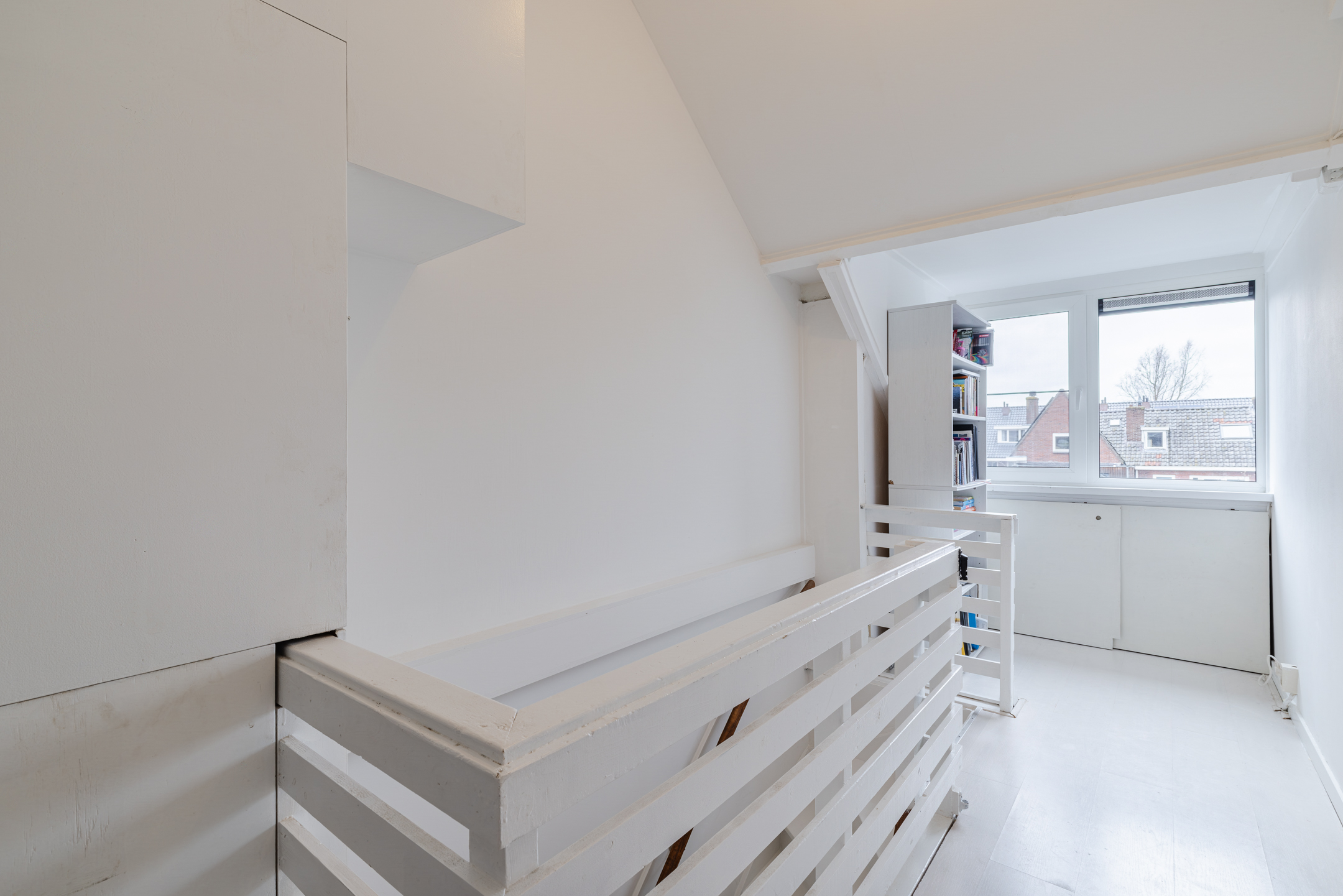 Overloop, toegang tot de badkamer en drie multifunctionele (slaap)kamers.