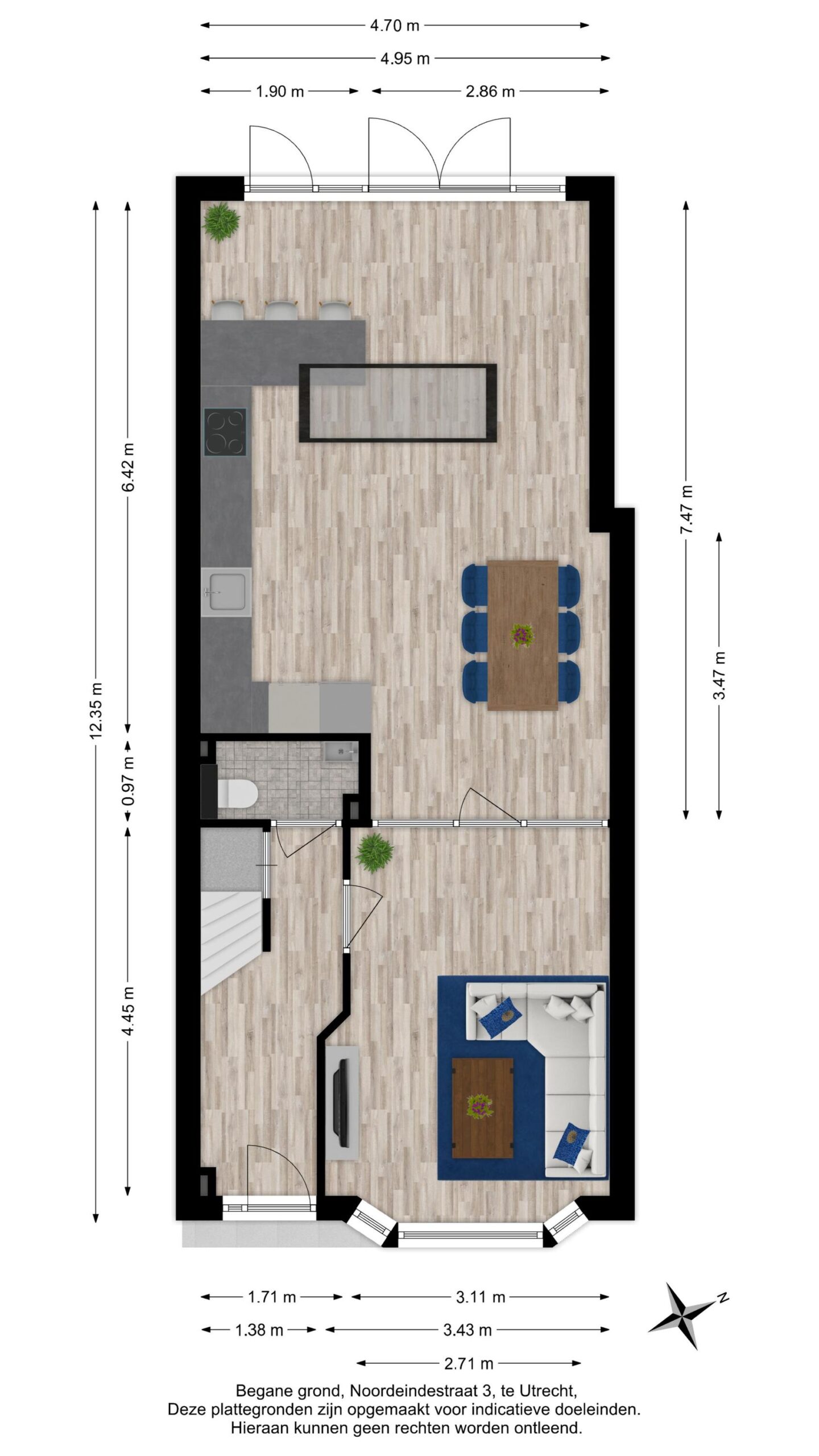 – De begane grond is stijlvol afgewerkt met een visgraat PVC-vloer met vloerverwarming;
