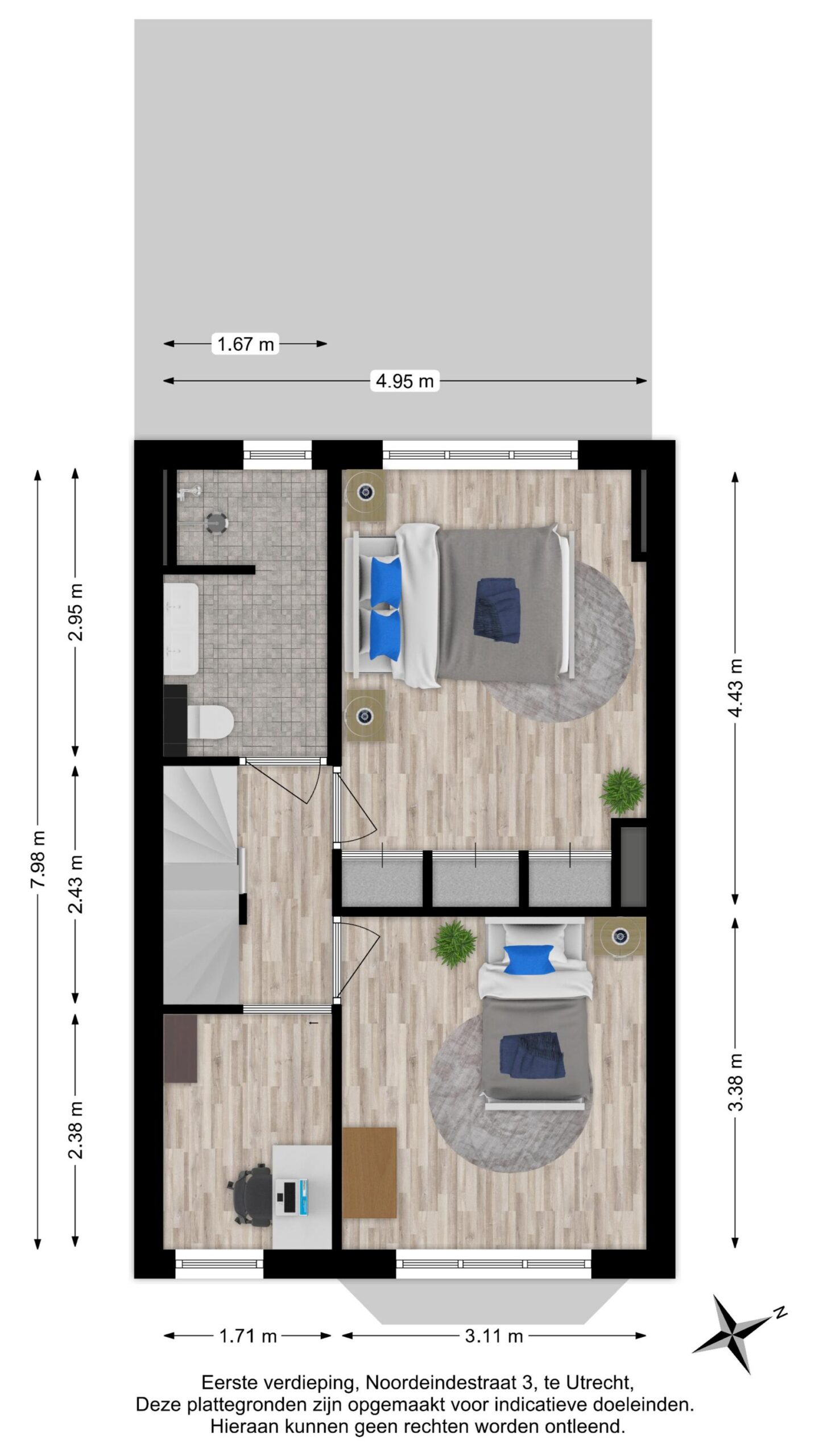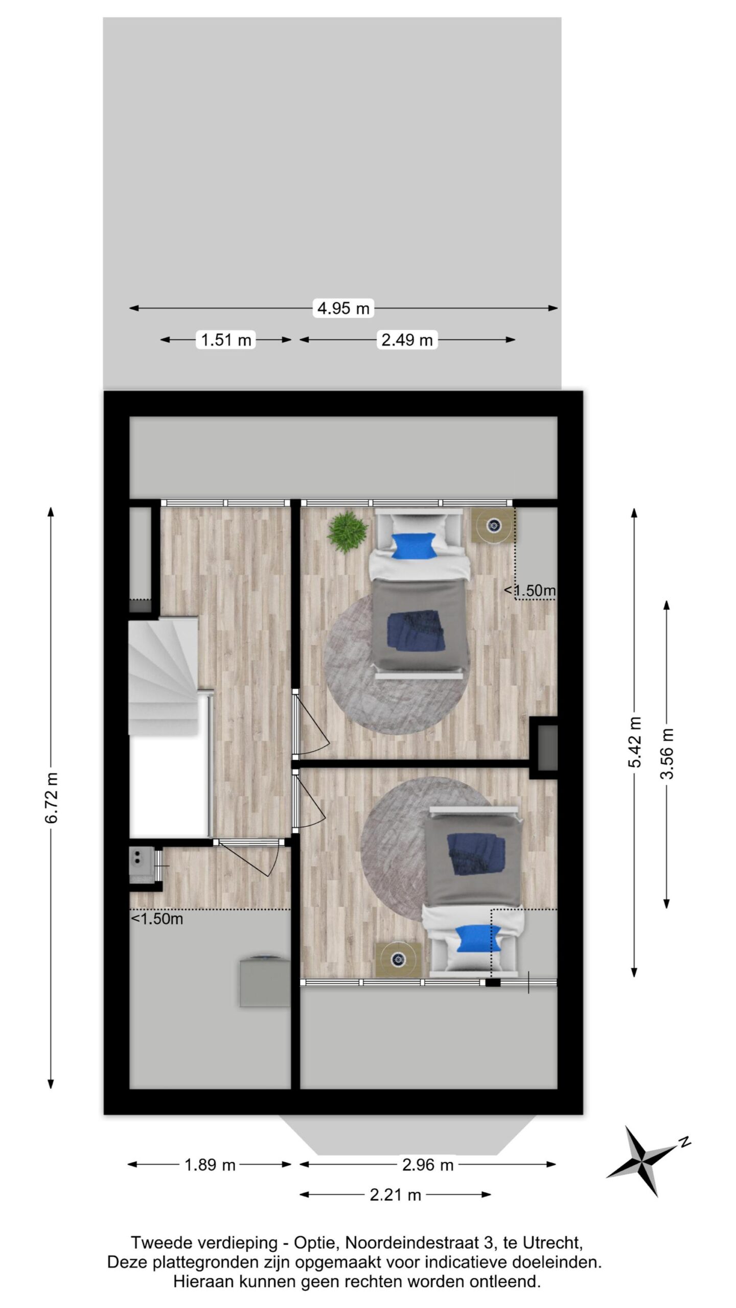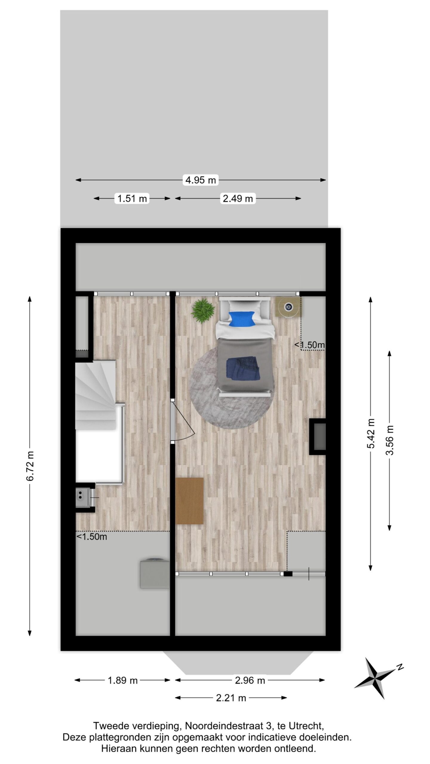 Door middel van een relatief kleine ingreep is het mogelijk om op deze verdieping een extra (5e) multifunctionele (slaap)kamer te creëren.