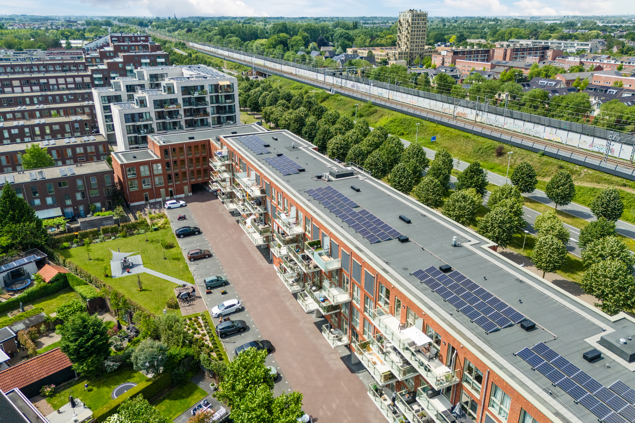 Strak afgewerkt, instapklaar en praktisch ingedeeld 3-kamer appartement (ca. 97m2 woonoppervlakte / bouwjaar medio 2022) gelegen op de 3de woonlaag van een modern en duurzaam appartementencomplex (super A++ energielabel!). Deze lichte woning beschikt over een eigen overdekte parkeerplaats op het achtergelegen privéterrein en een berging in de onderbouw. Het heerlijke, zonnige balkon op het zuiden ligt aan de rustige achterzijde van het complex en kijkt uit over het groen in de omgeving en de gemeenschappelijke tuin. Een heerlijke plek om vanaf het voorjaar lekker buiten te zitten met een hapje en een drankje. En wat dacht je van de gemeenschappelijke groentetuin! Een eigen stukje natuur dicht bij de grote stad!