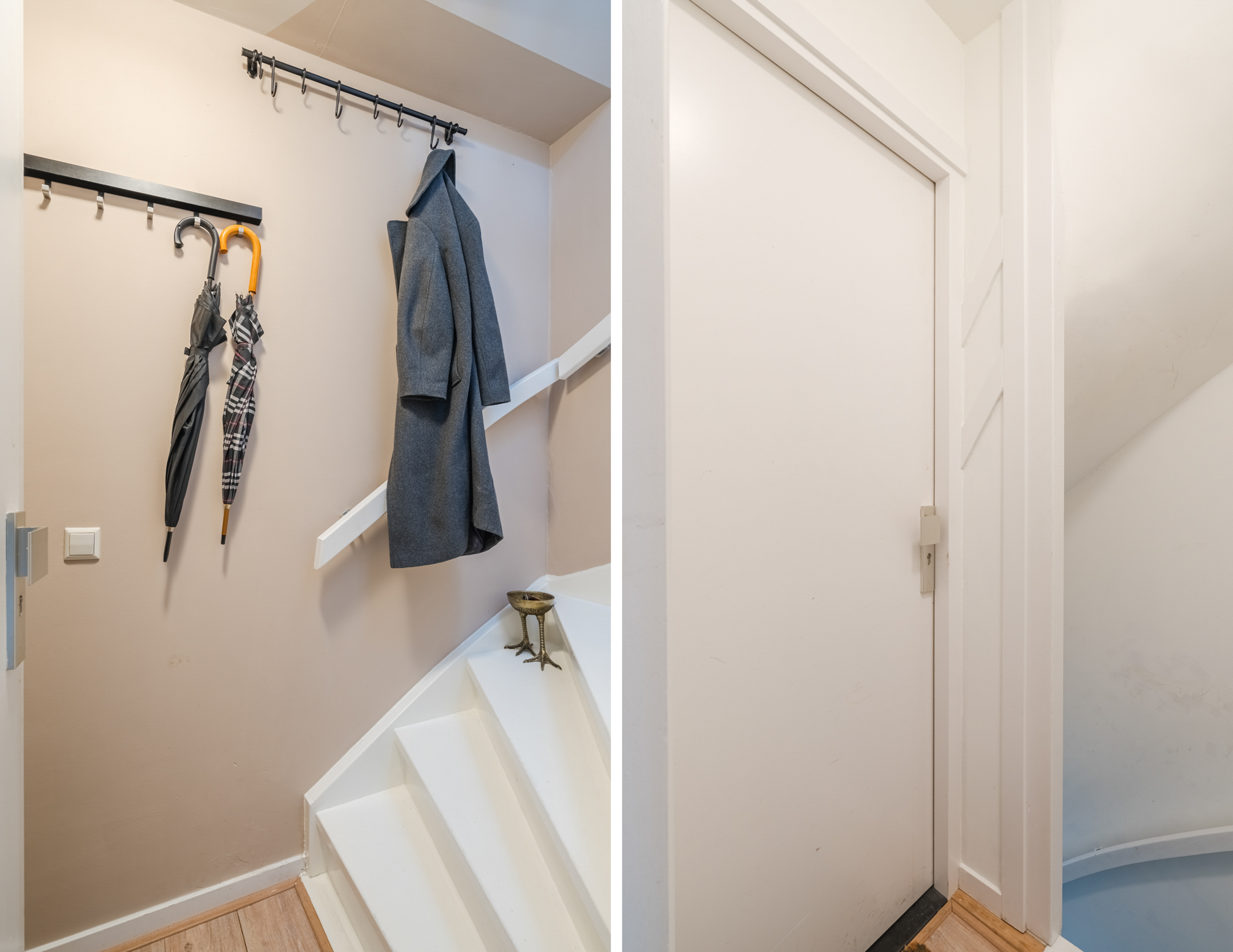 Gezamenlijk entree en hal voor de beneden- en bovenwoningen. Eigen entree met trap naar boven.
