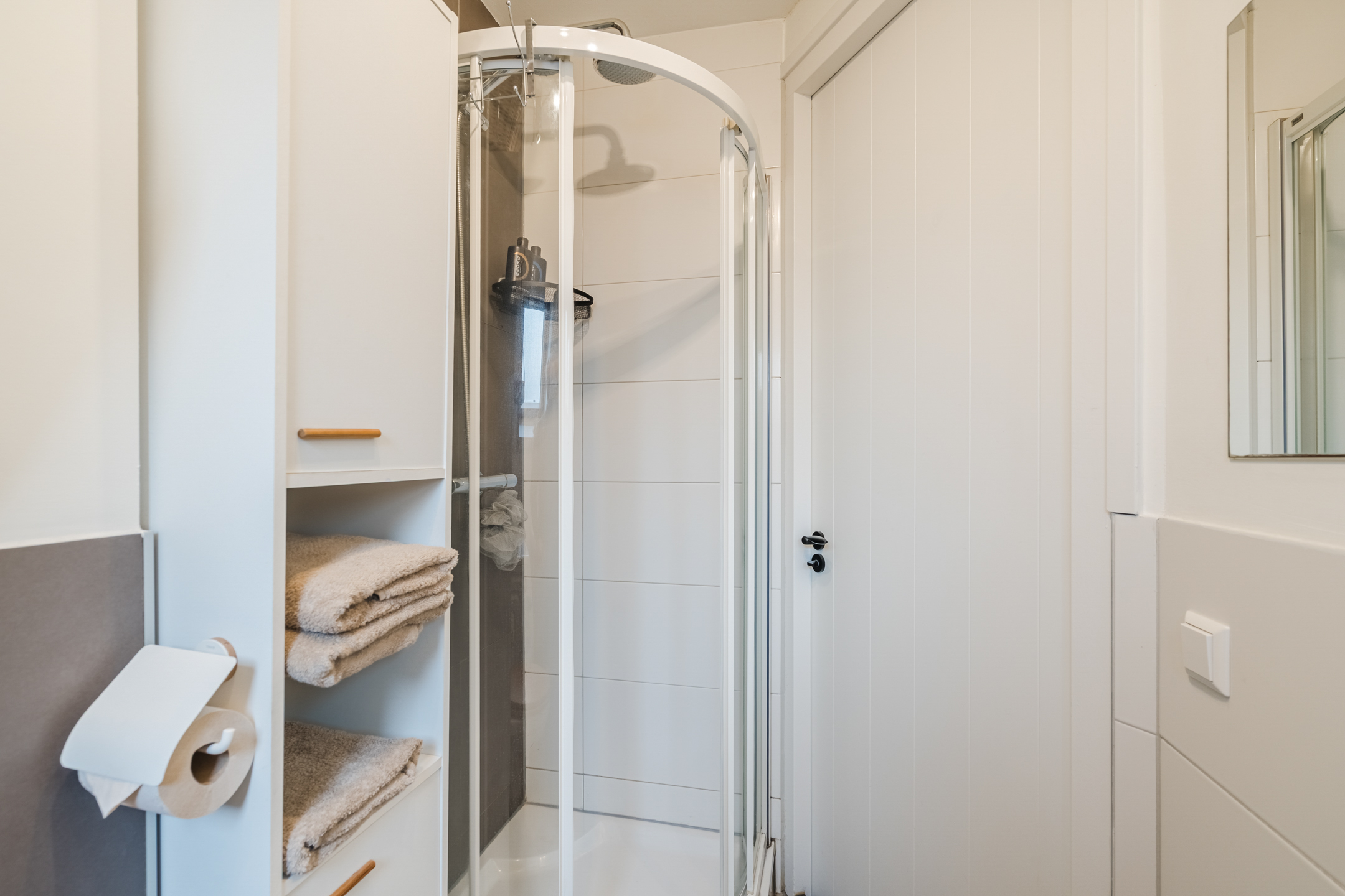 De verdieping is voorzien van een nette lichte laminaatvloer en een strakke wand- en plafondafwerking. De woonruimte is voorzien van een airconditioning. Ideaal voor elektrisch verwarmen in de winter en verkoelen in de warme zomermaanden!