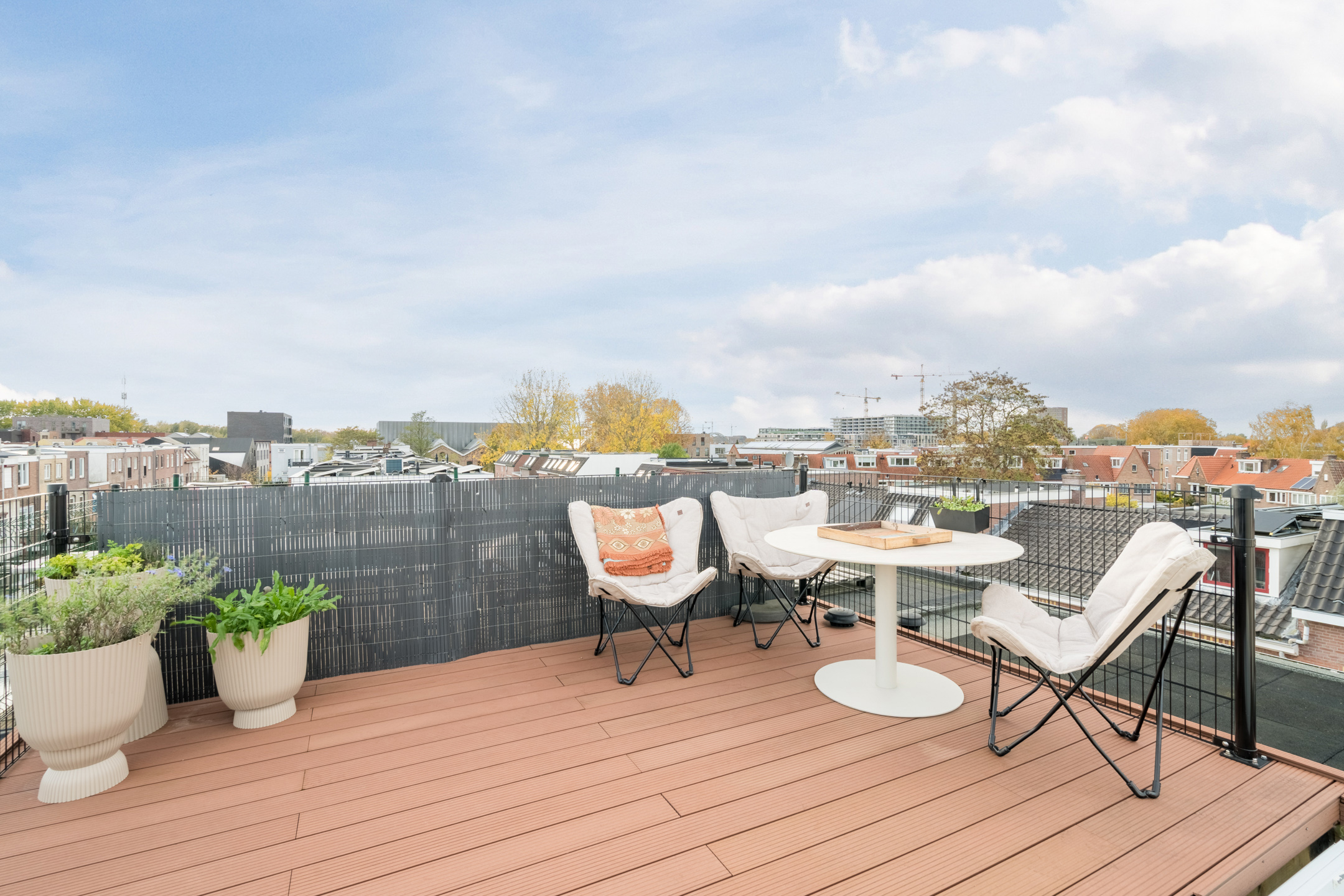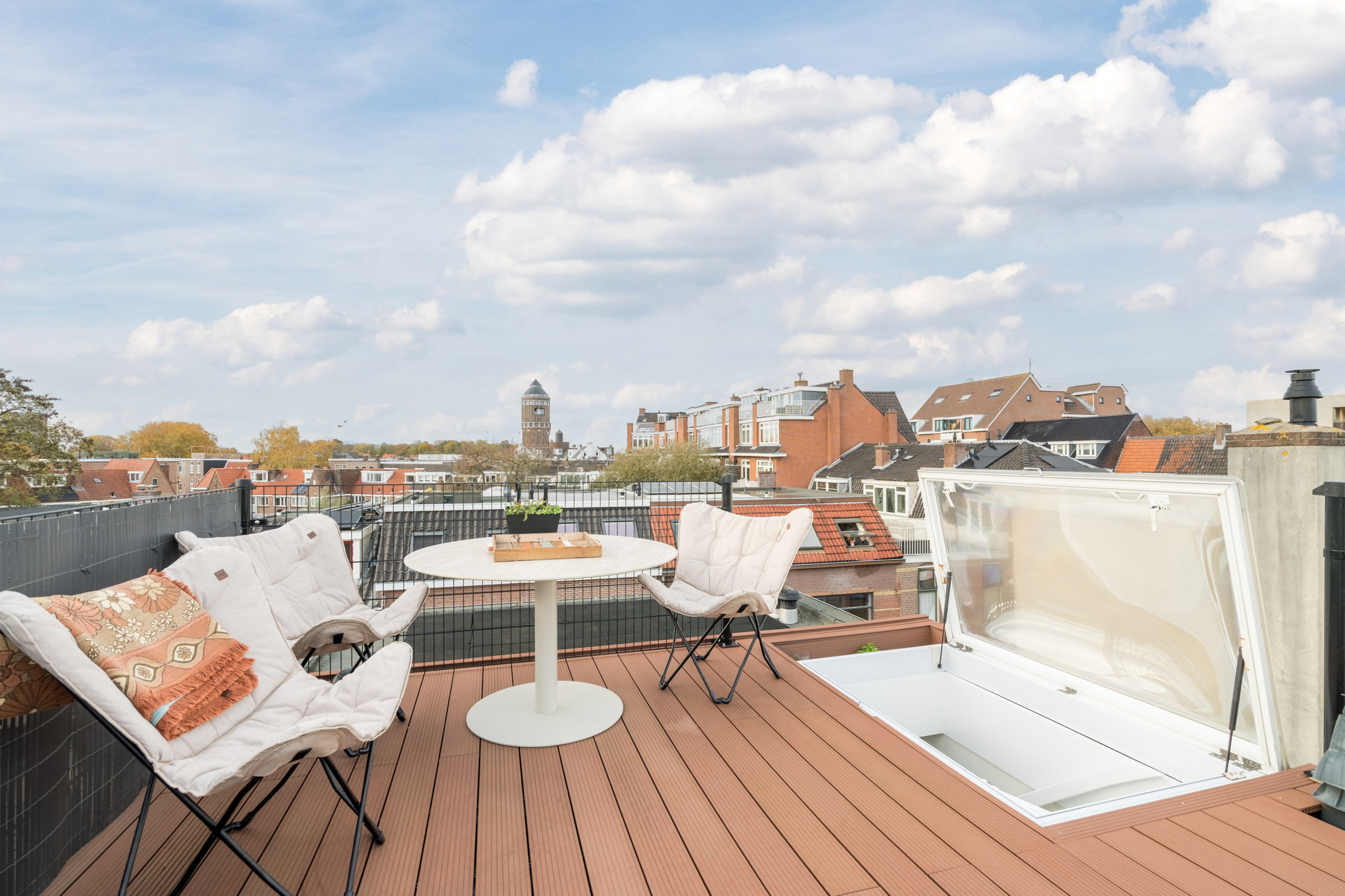 This cozy and well-kept upper apartment combines a practical layout with characteristic charm and a prime location. Highlights of this lovely apartment include the bright and efficiently laid-out living room with a French balcony and sliding doors, the fully equipped open kitchen, and the stunning rooftop terrace (approx. 17 m²) offering beautiful views over Utrecht.