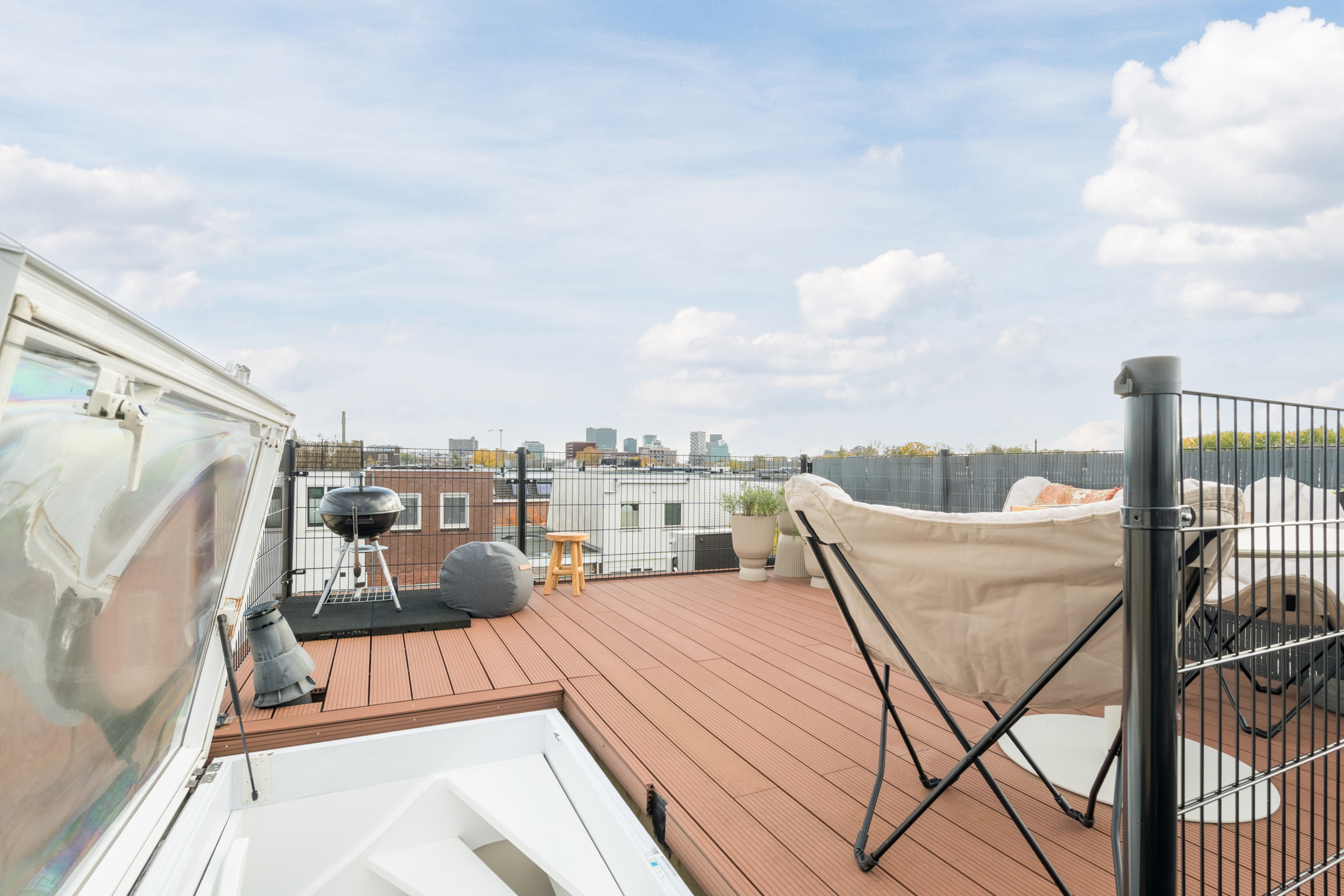 The apartment boasts a beautiful and especially sunny rooftop terrace (approx. 4.09 x 4.05 m) with a truly iconic Utrecht view. From here, you can enjoy sights including the Dom Tower! The terrace was built with a permit, is accessible via a fixed staircase, and finished with wooden decking and sturdy railings. There is plenty of space for a cozy lounge set and a barbecue, making it the perfect spot to enjoy long summer evenings with friends. As soon as spring arrives, this is the first place to soak up the sun!