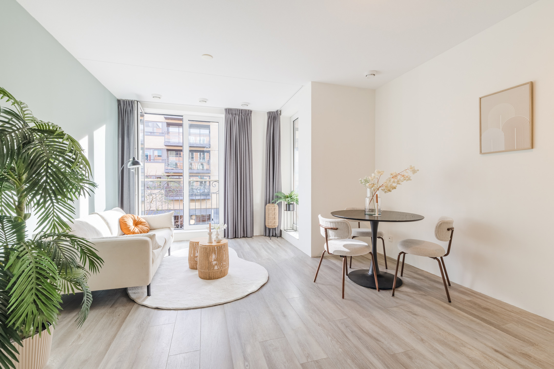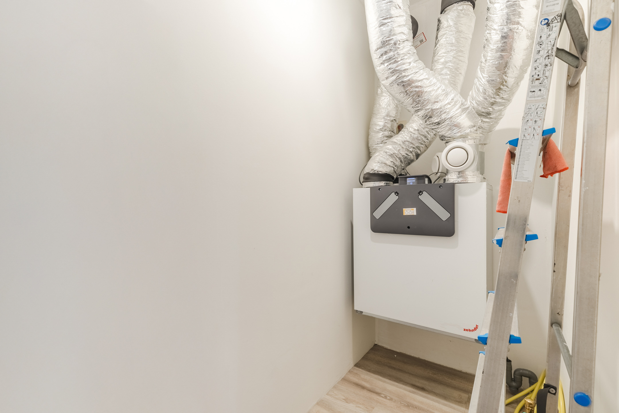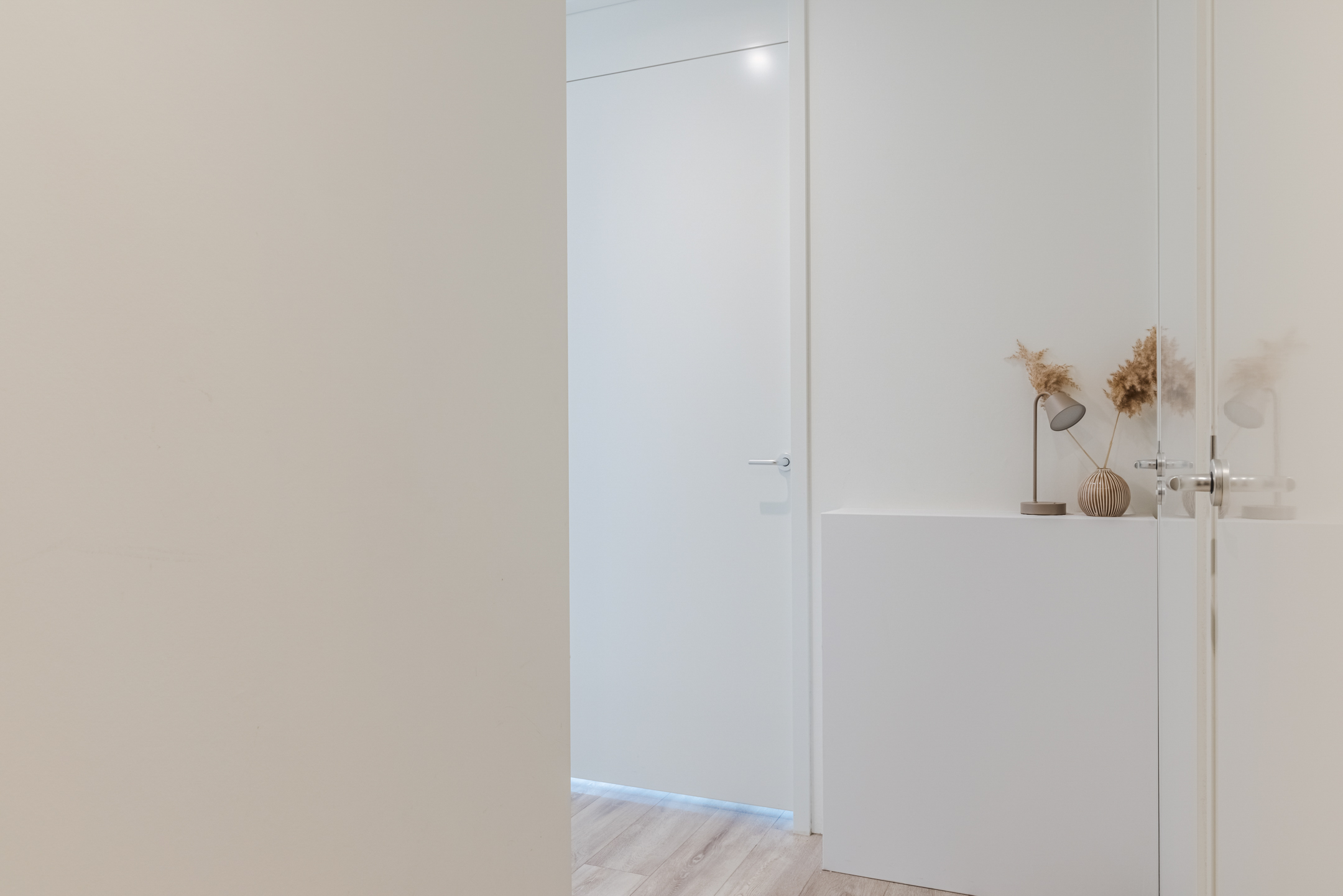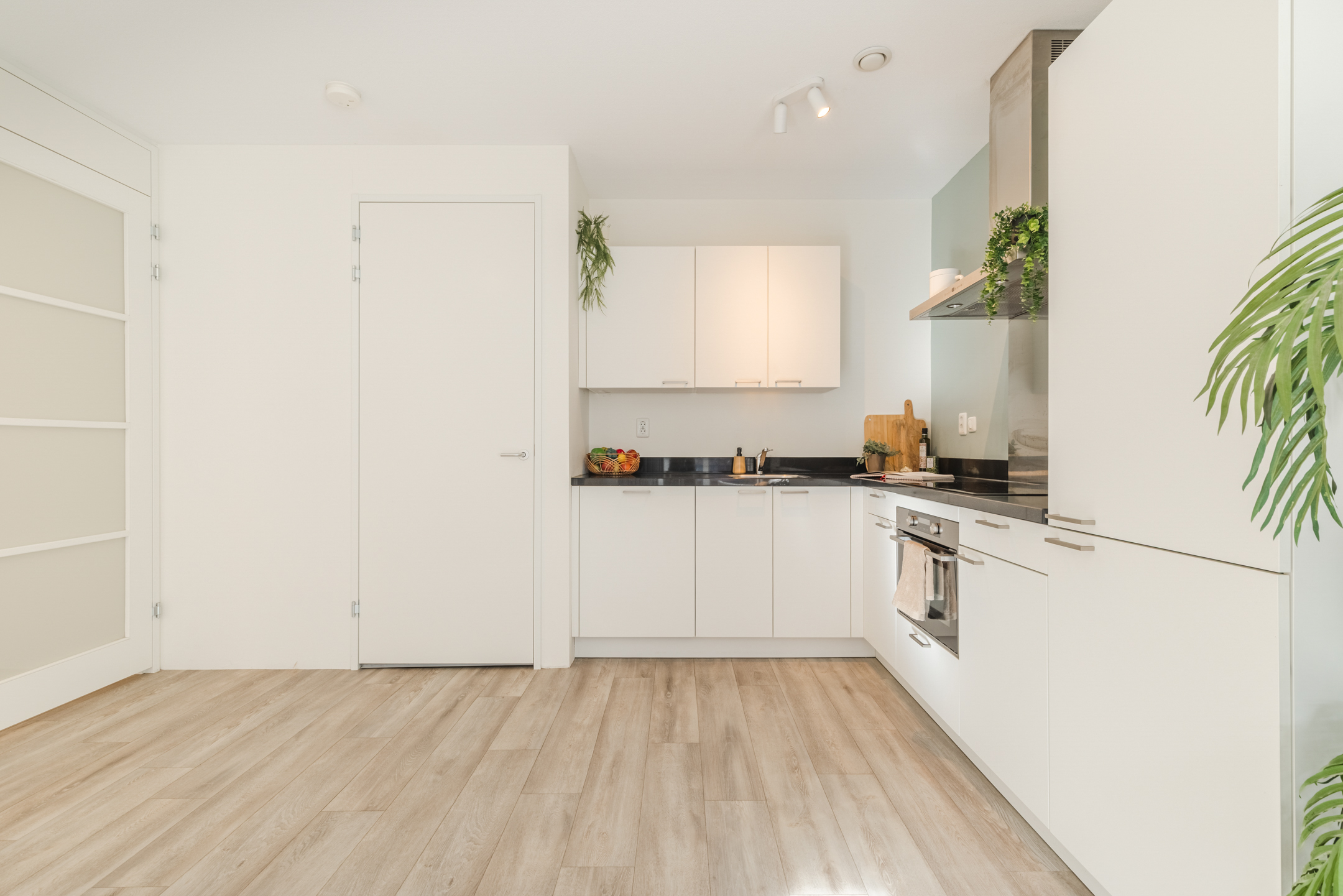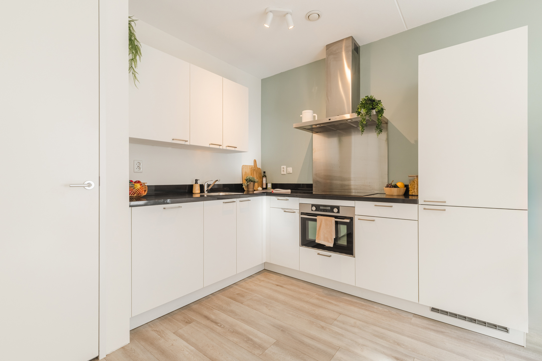 Het gehele appartement is voorzien van een lichte, strakke wandafwerking en een warme laminaatvloer voorzien van vloerverwarming én vloerkoeling. Ideaal voor de warme zomermaanden!