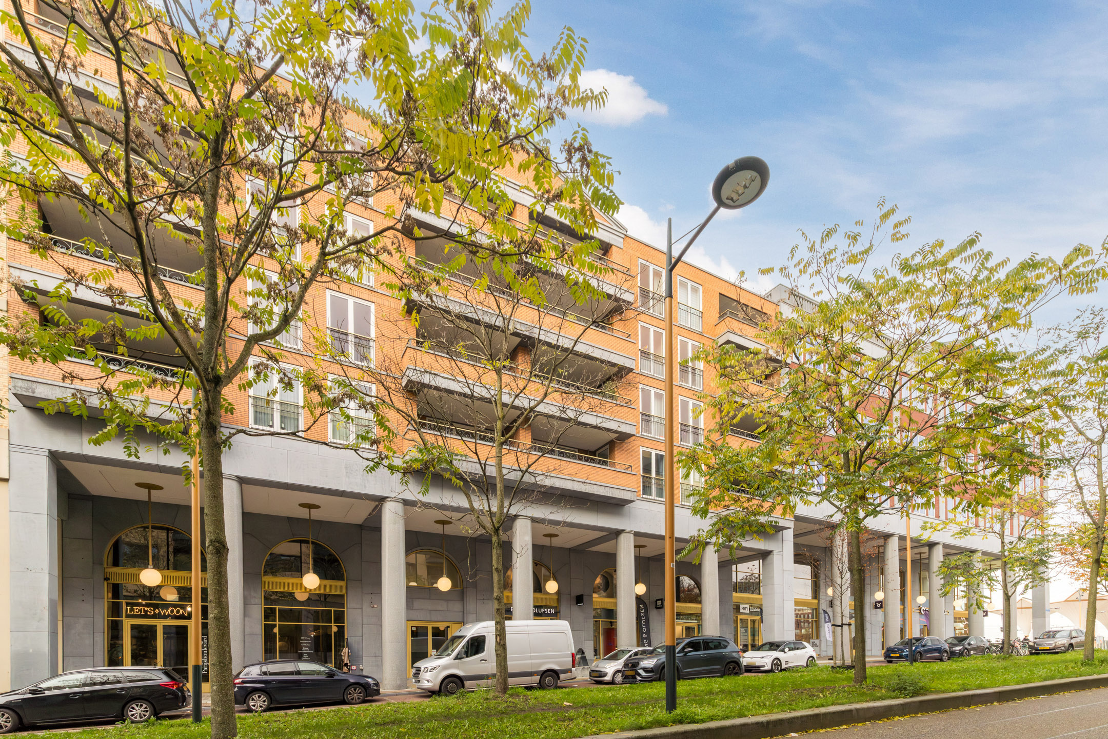 De zeer lichte woonkamer (ca. 27 m2) laat zich eenvoudig indelen en biedt plaats voor een relaxte zithoek en een gezellige eettafelopstelling. Vanuit de woonkamer bereik je het ruime en grotendeels overdekte balkon gelegen op het zuiden. Dit is de voorzijde van het appartement complex waardoor je fraai uitzicht hebt op de gezellige Parijsboulevard.