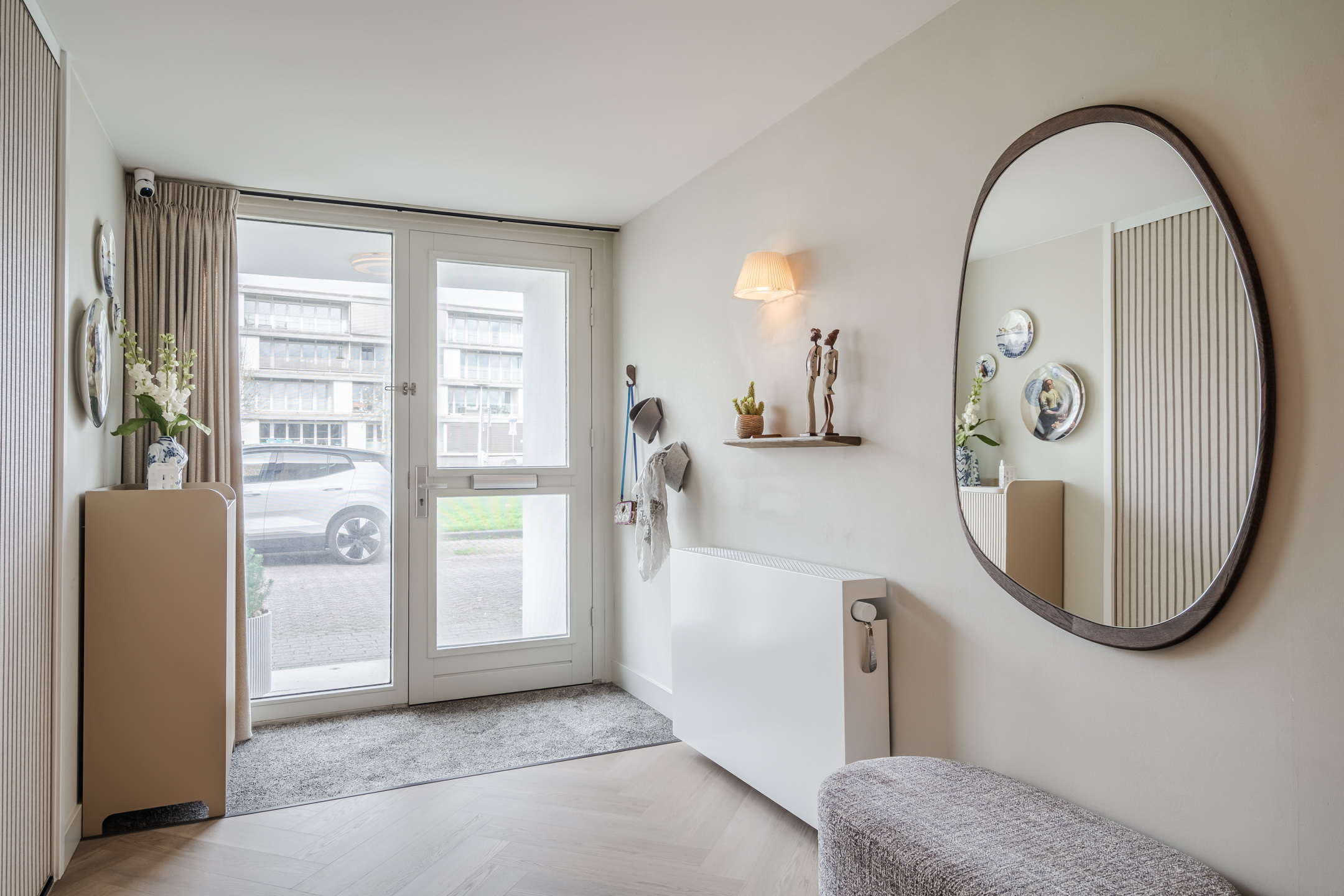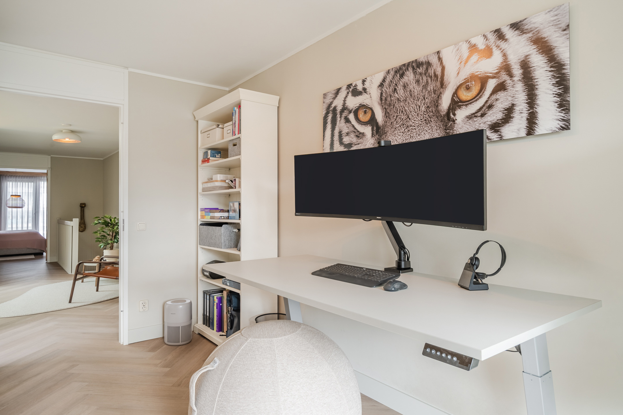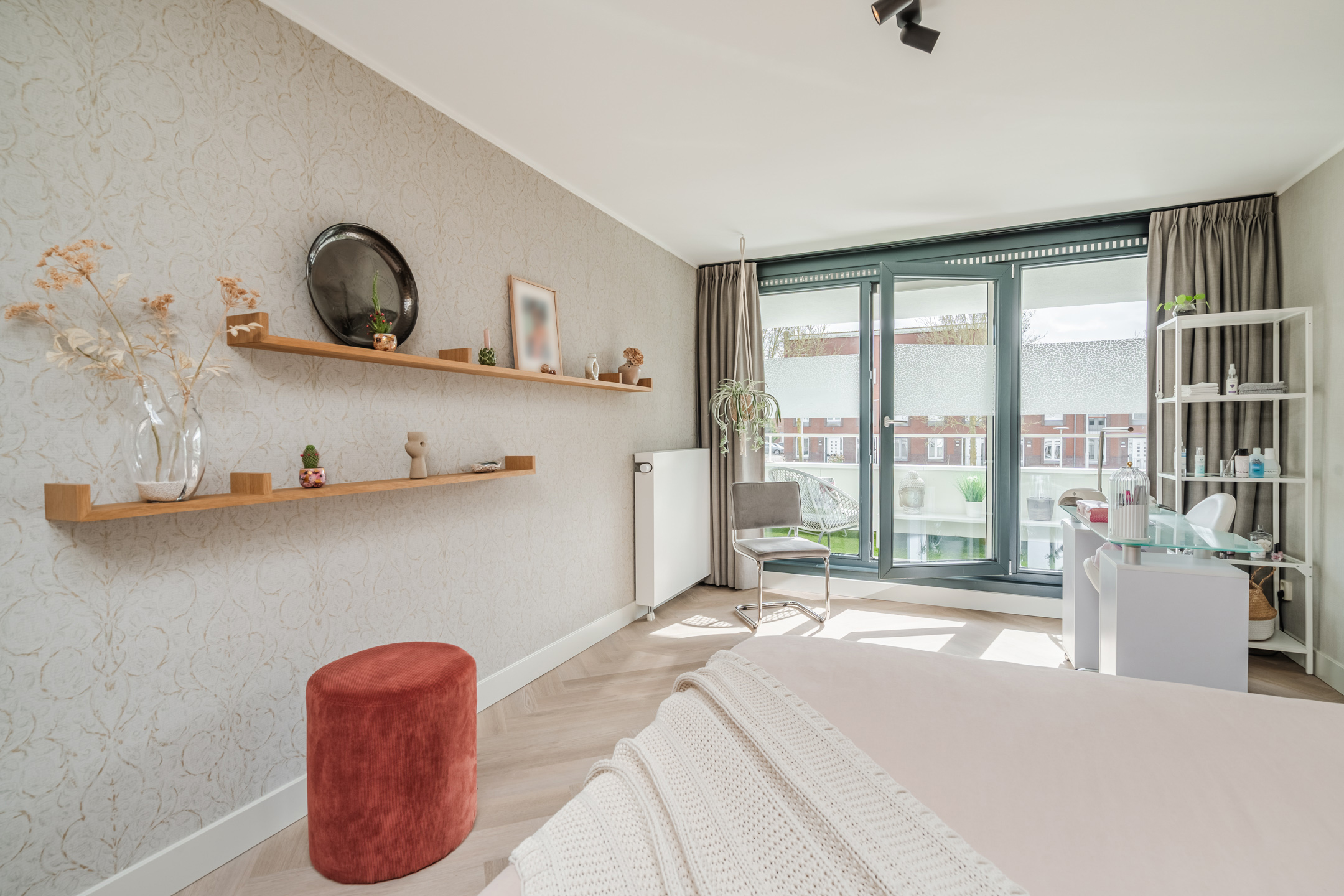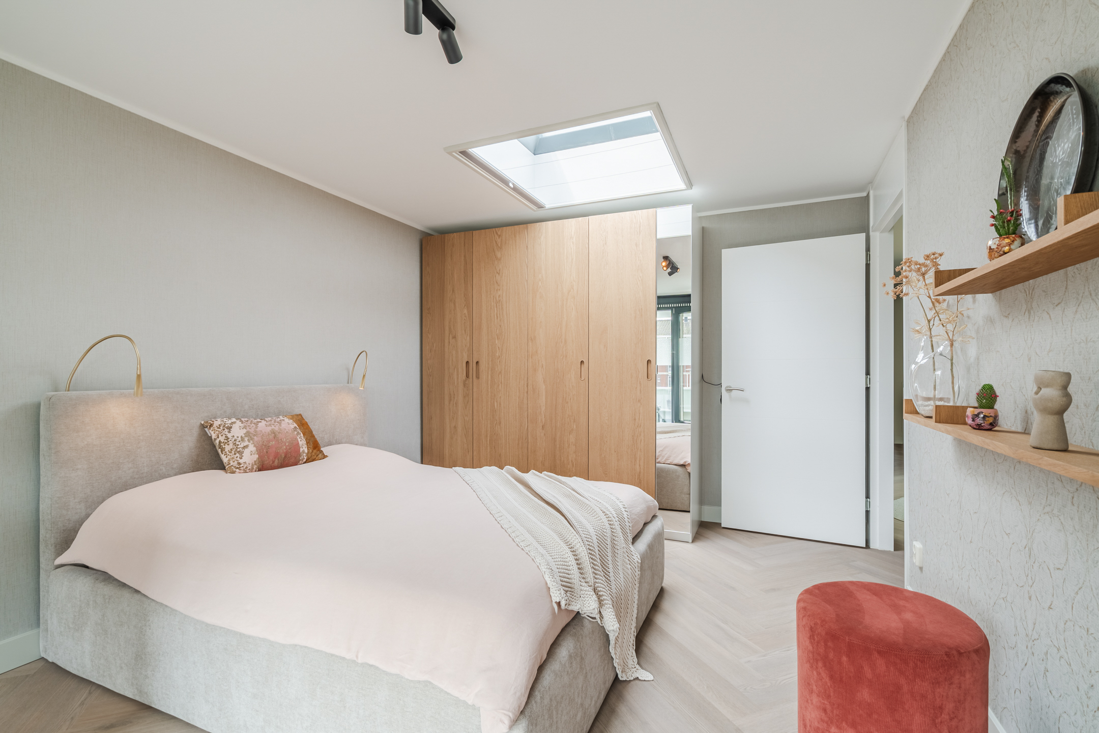 – Hoogwaardige afwerking: extra matte Therdex PVC visgraatvloer (2025), strak stucwerk, akoestische panelen (GewoonGers);