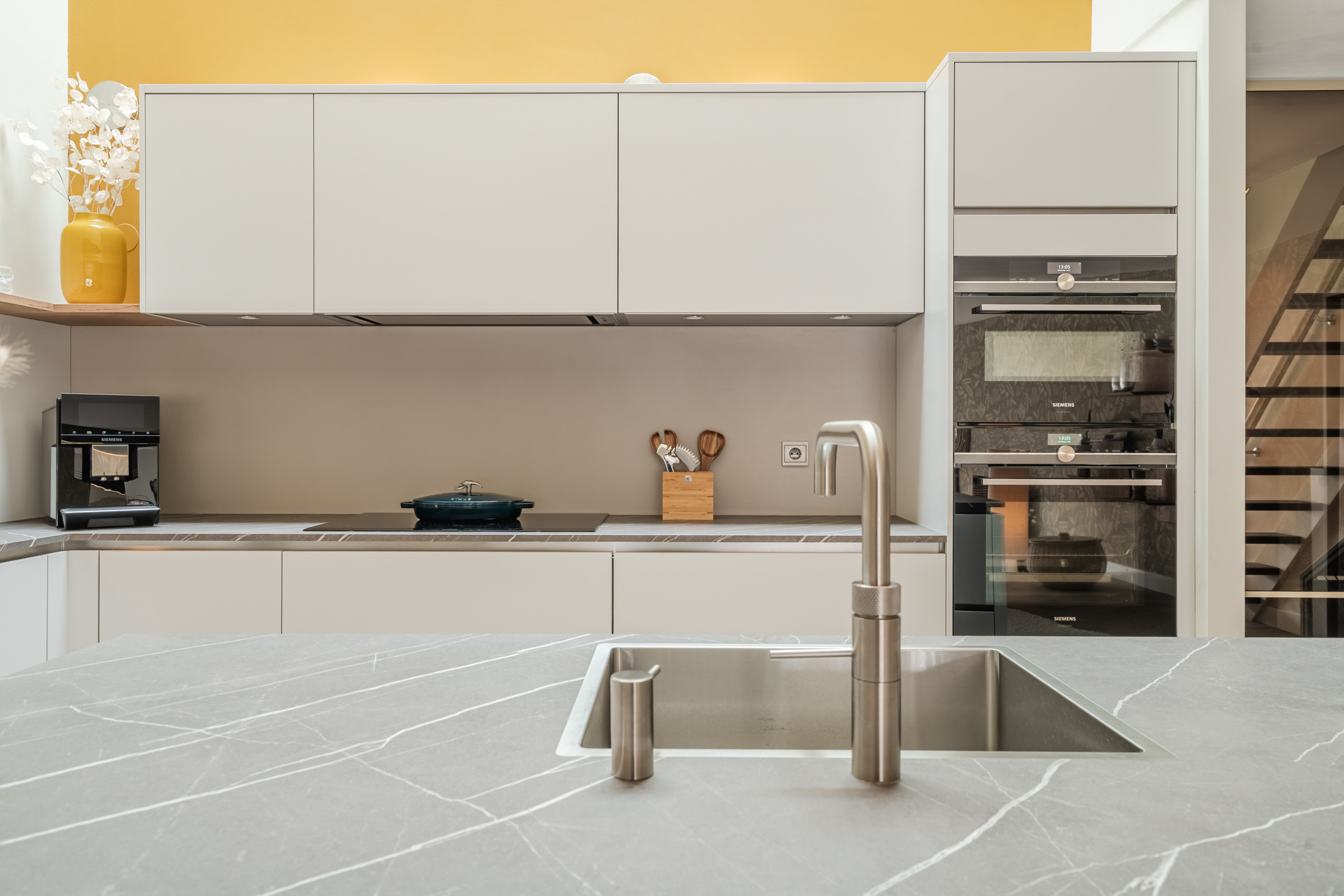 – Keuken voorzien van Dekker Top Core 10mm werkblad, inbouwapparatuur van Siemens StudioLine, afzuiginstallatie van Novy;