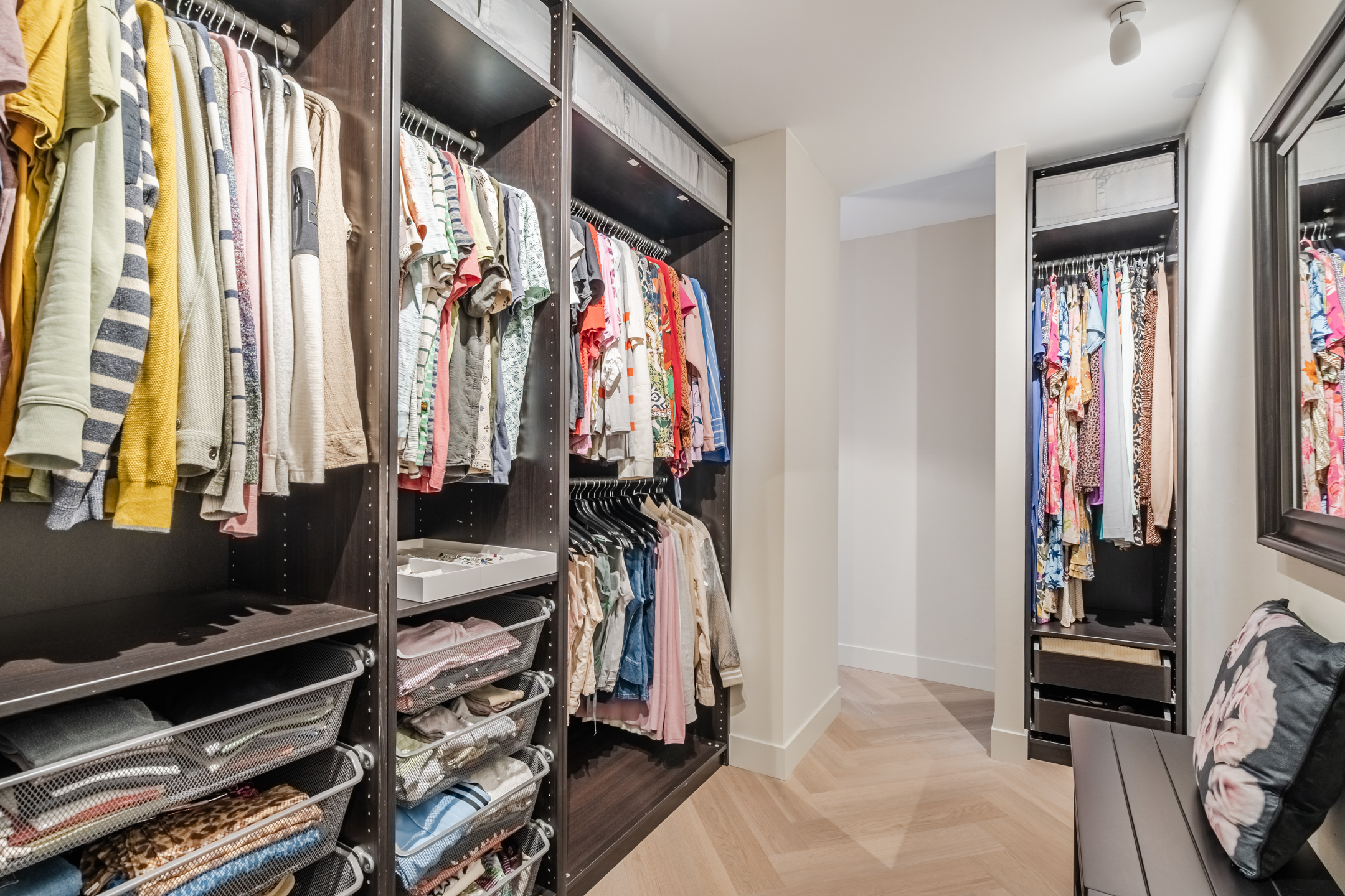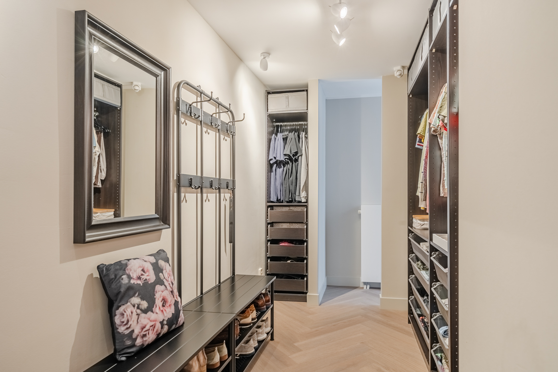 Aan de voorzijde ligt een bijzonder ruime slaapkamer (ca. 30 m²), voorzien van een grote inloopkast en een boudoir — een elegante en efficiënt ingedeelde ruimte.